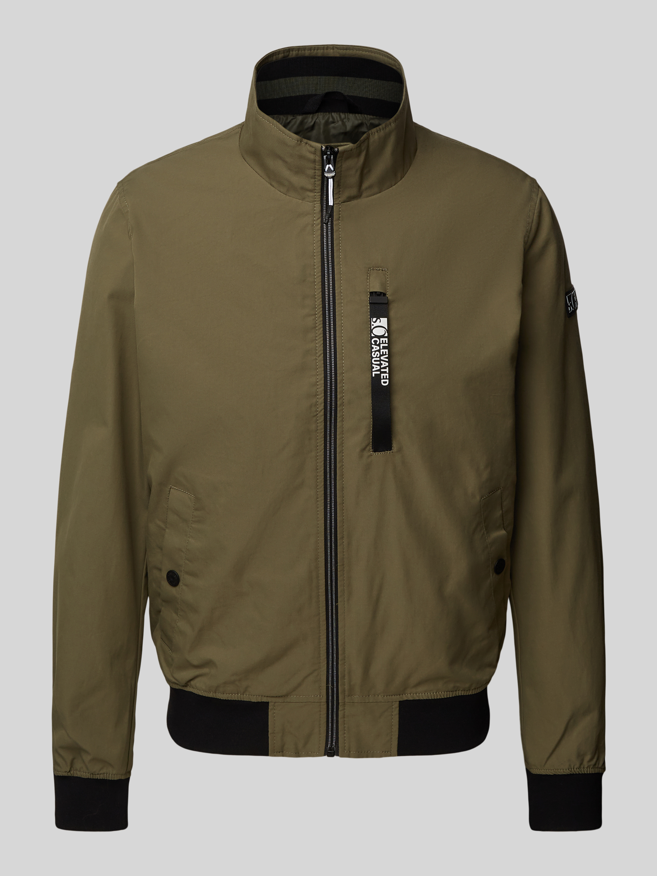 Regular fit outdoorjack met opstaande kraag en contrasterende details in olijfgroen