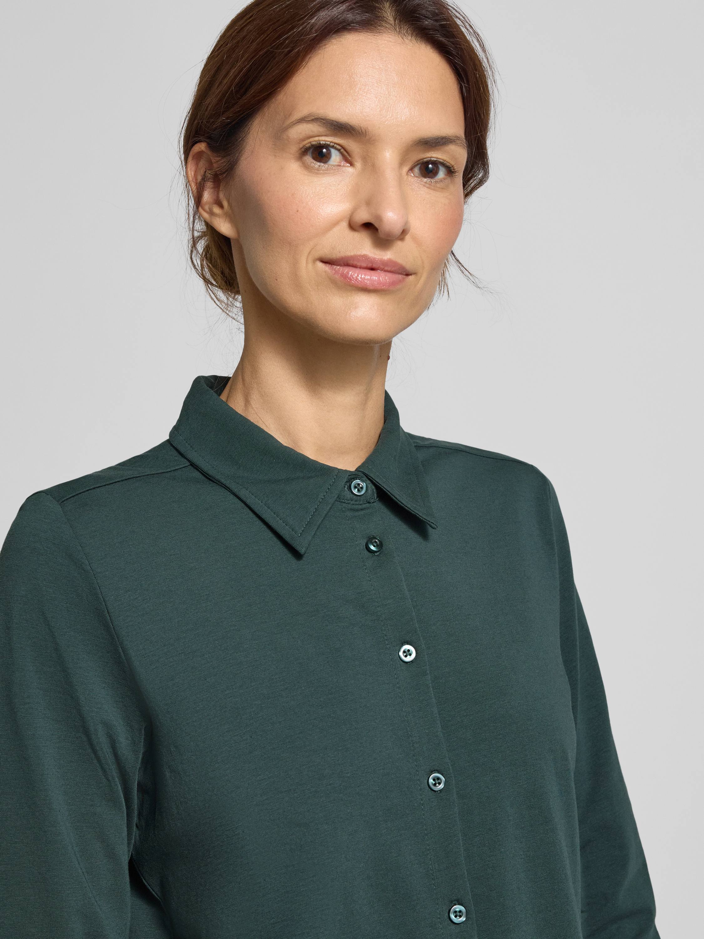 Regular fit overhemdblouse van katoenmix in donkergroen