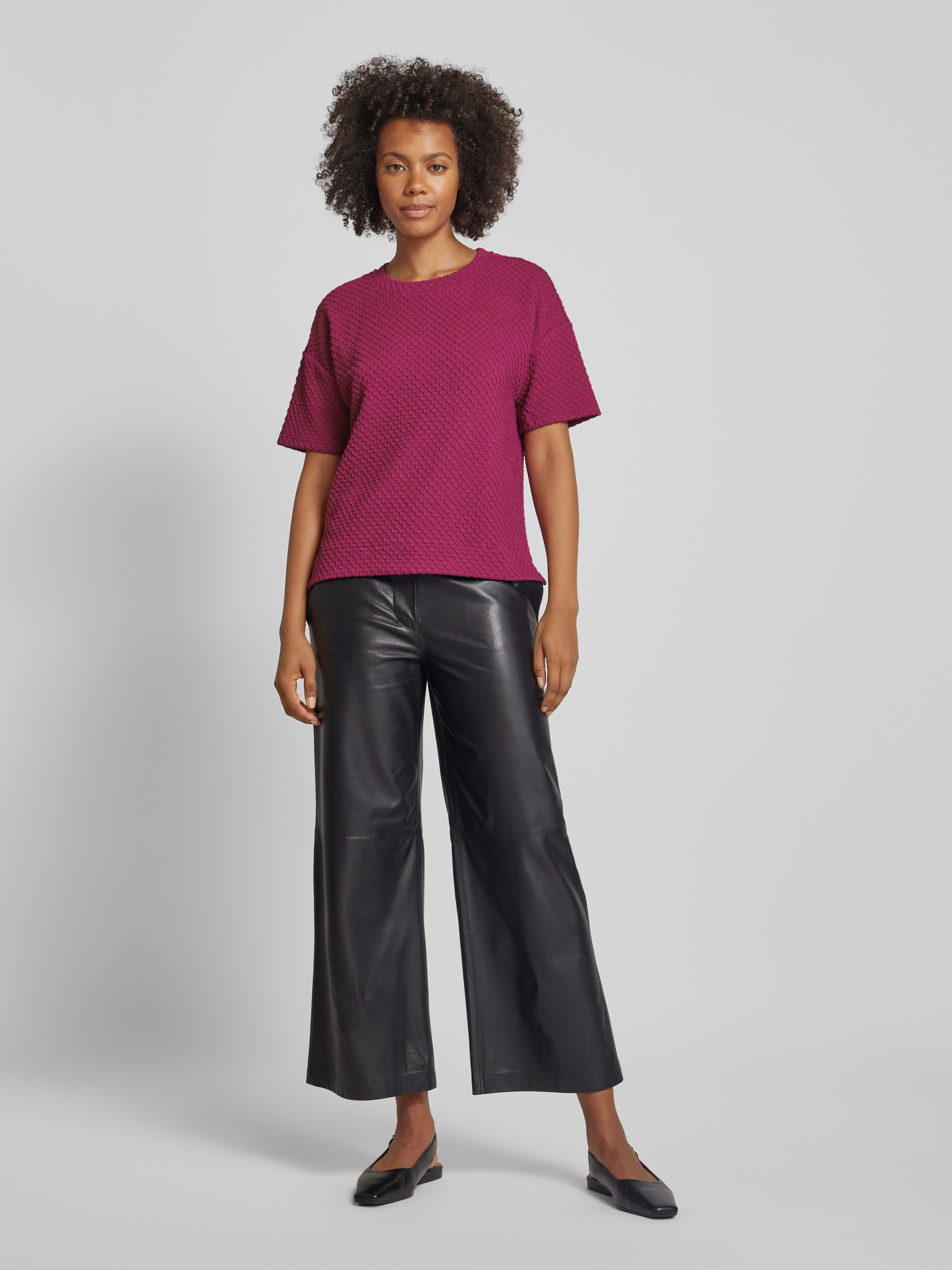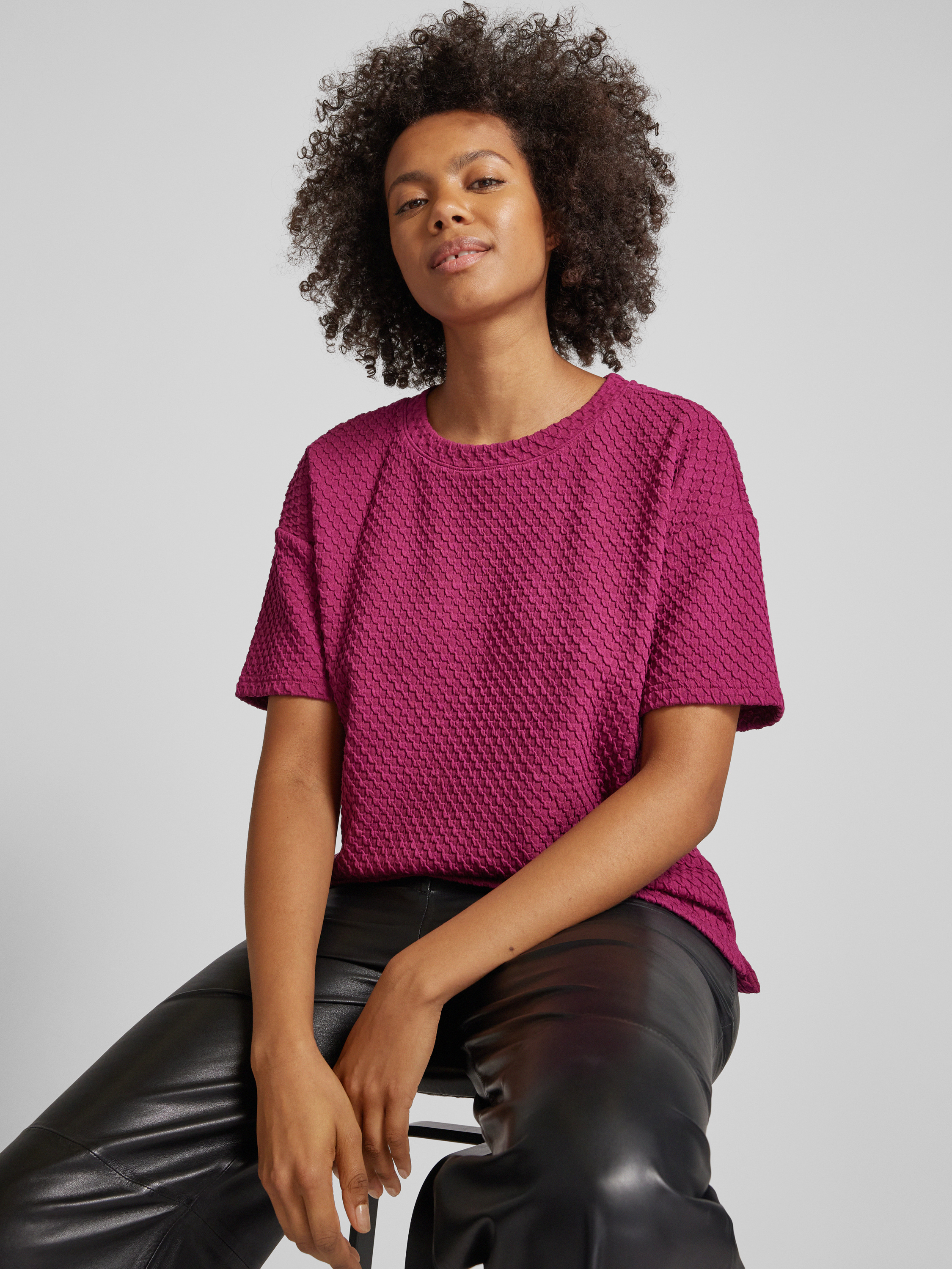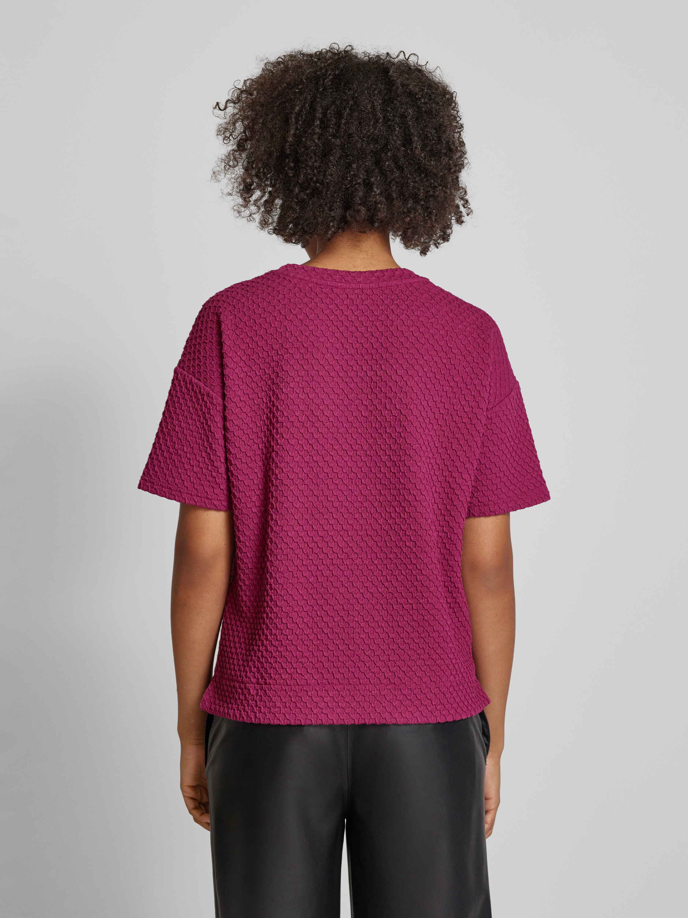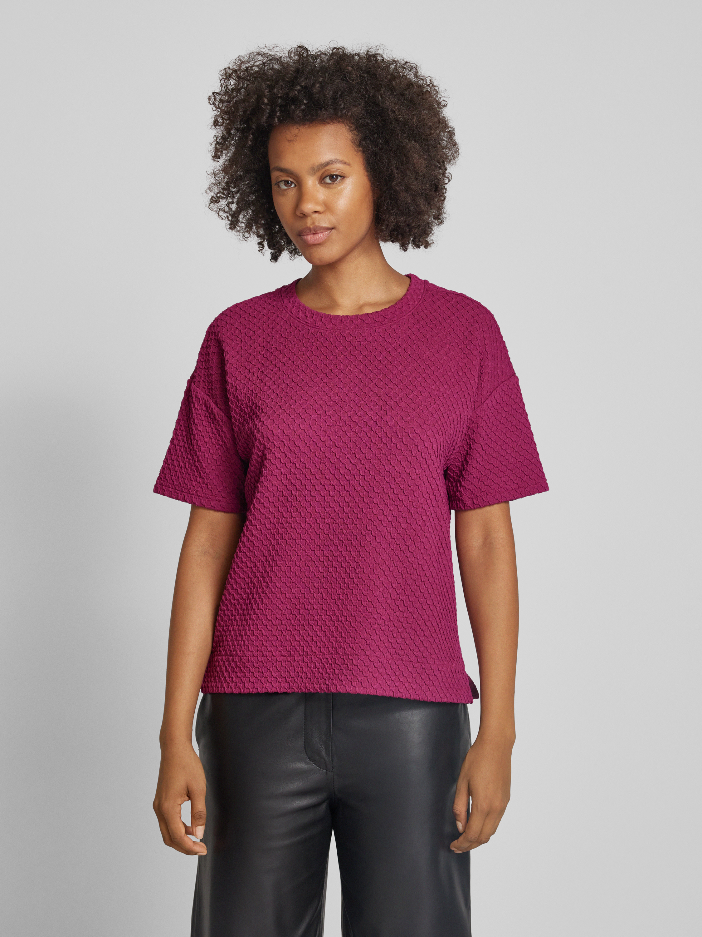 Regular fit T-shirt met gestructureerd oppervlak in bordeaux