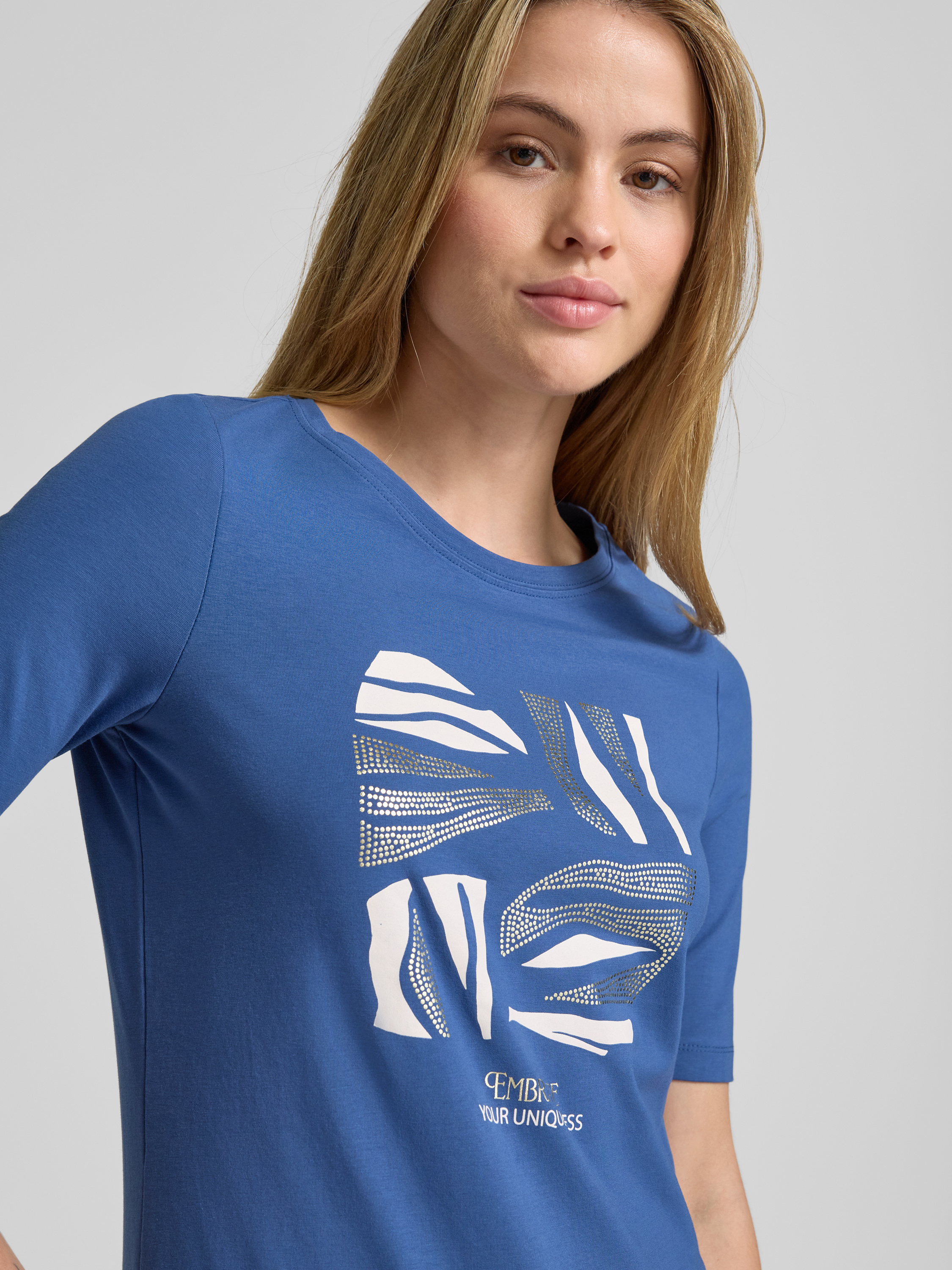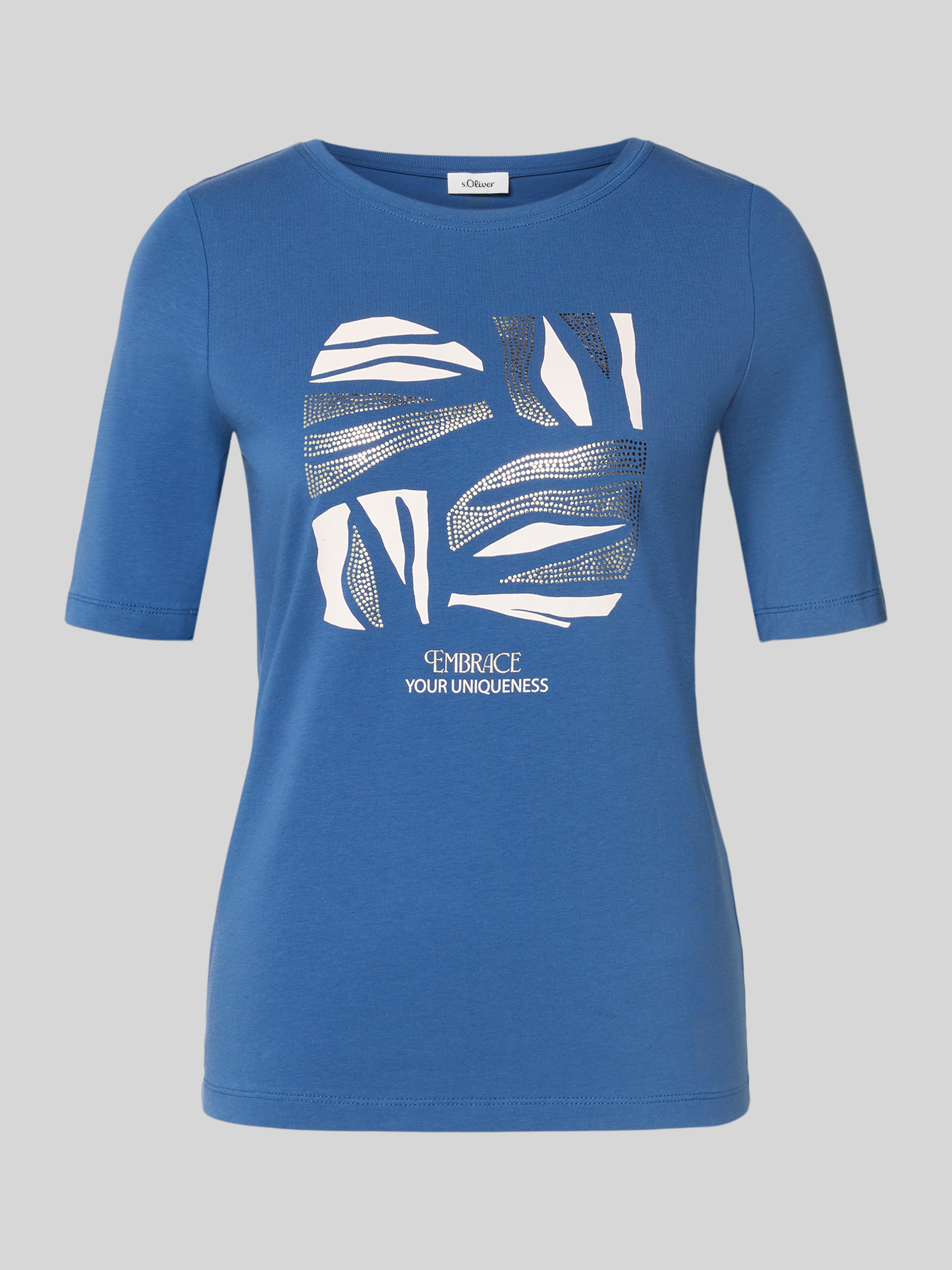 Regular fit T-shirt van katoenmix in oceaanblauw