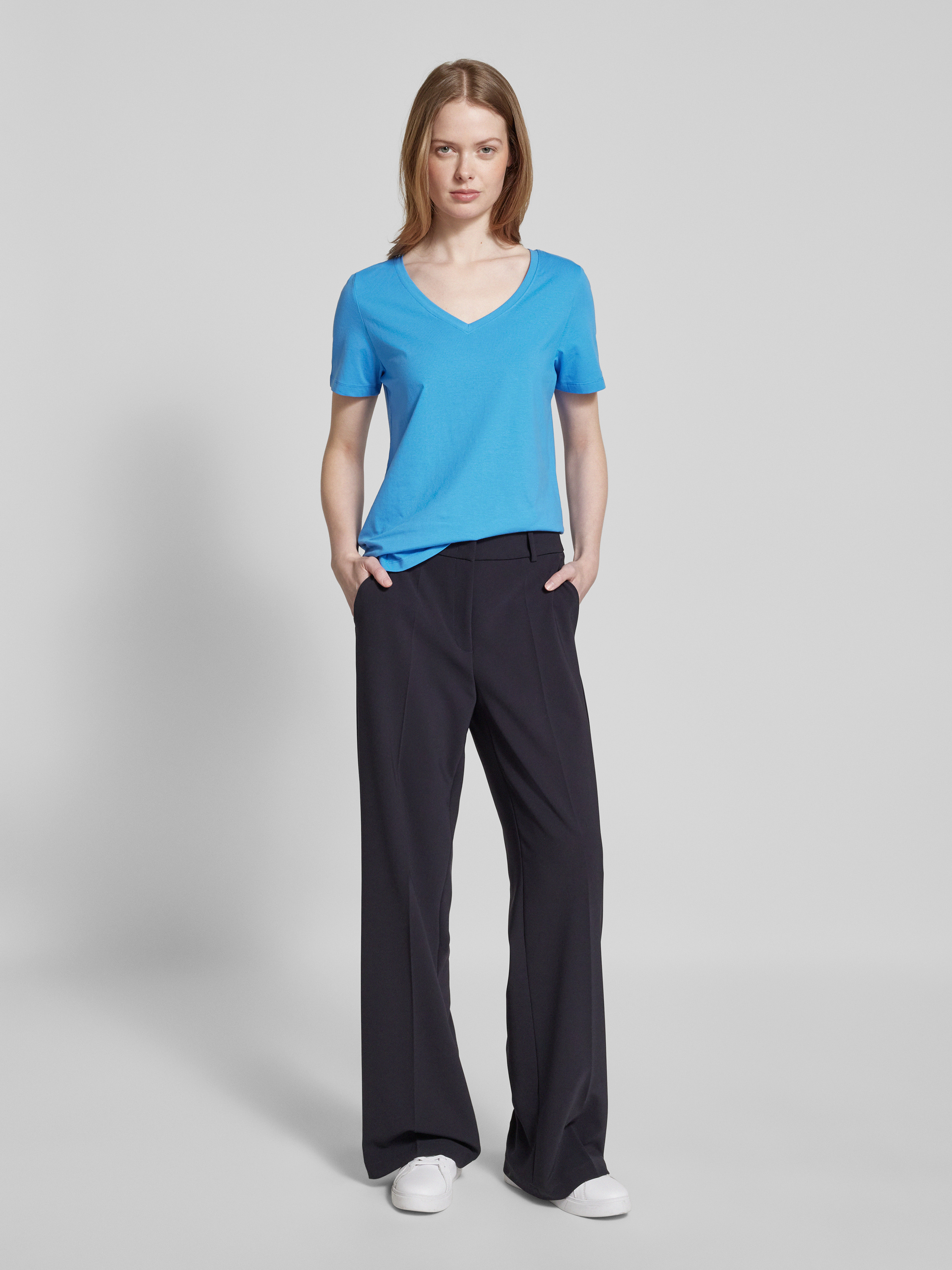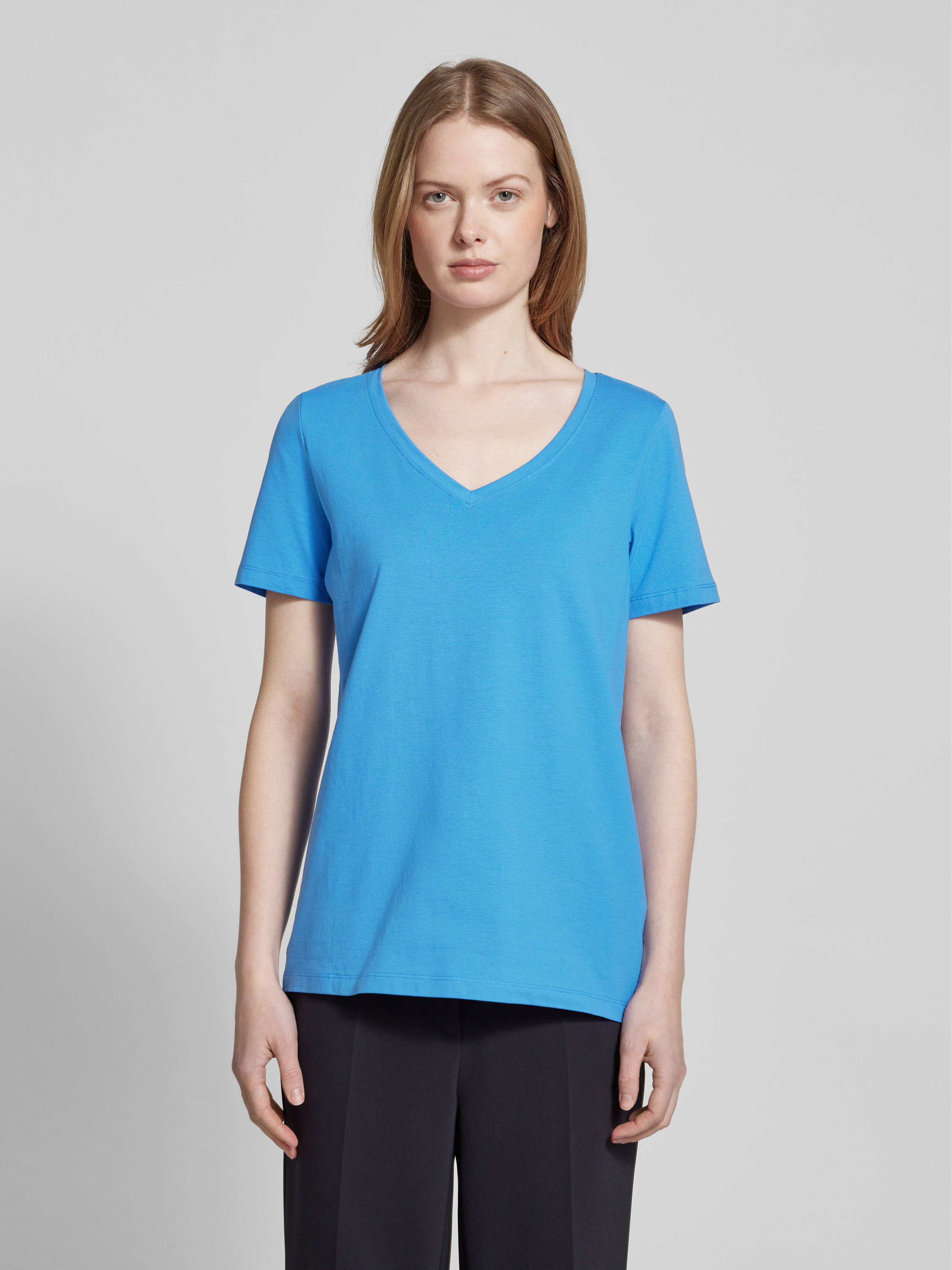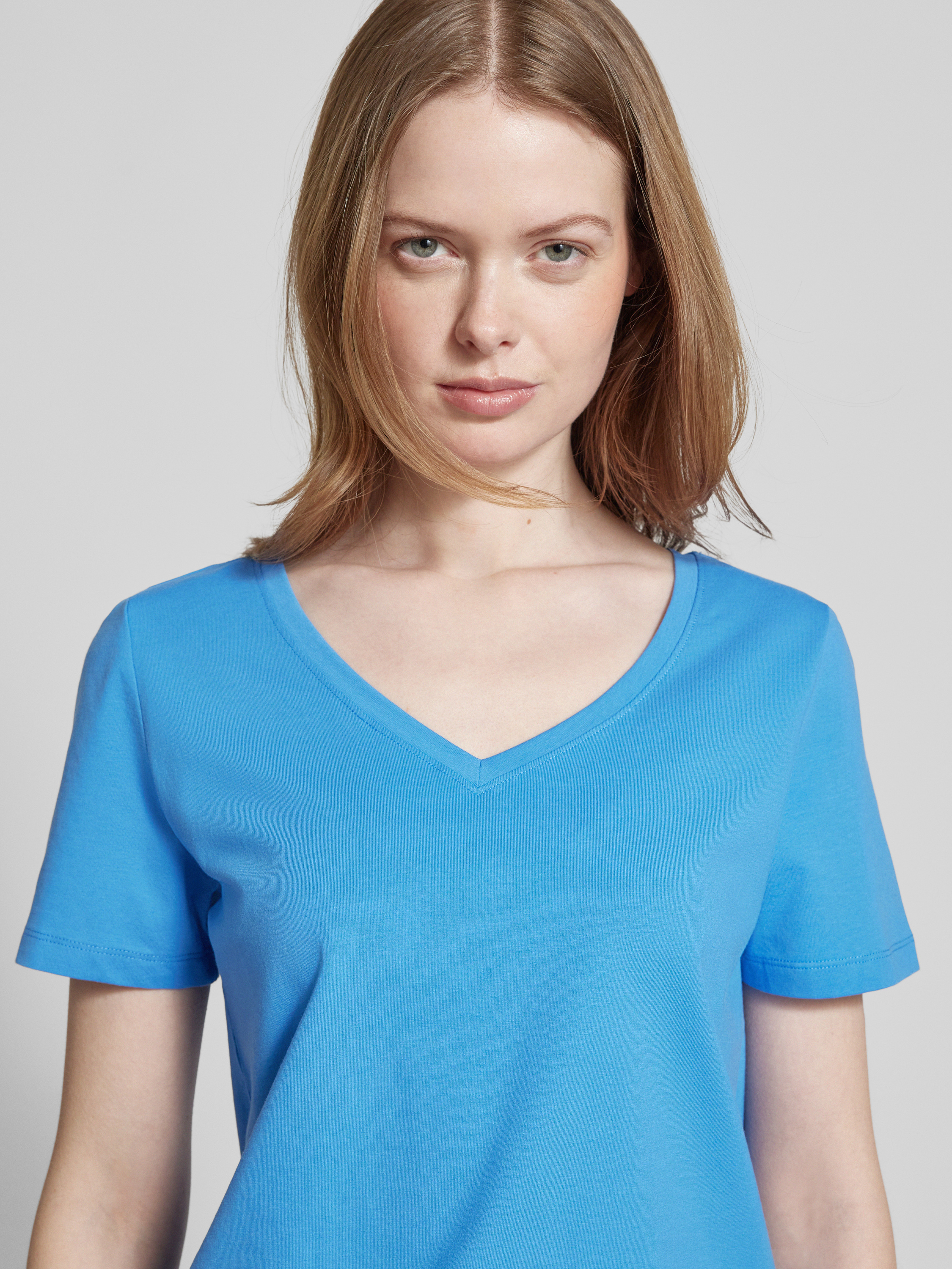 Regular fit T-shirt van mix van katoen en elastaan in blauw