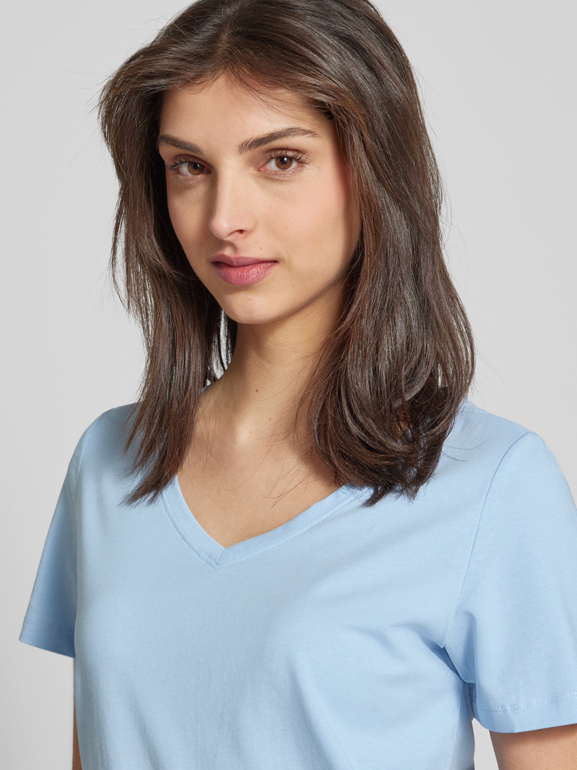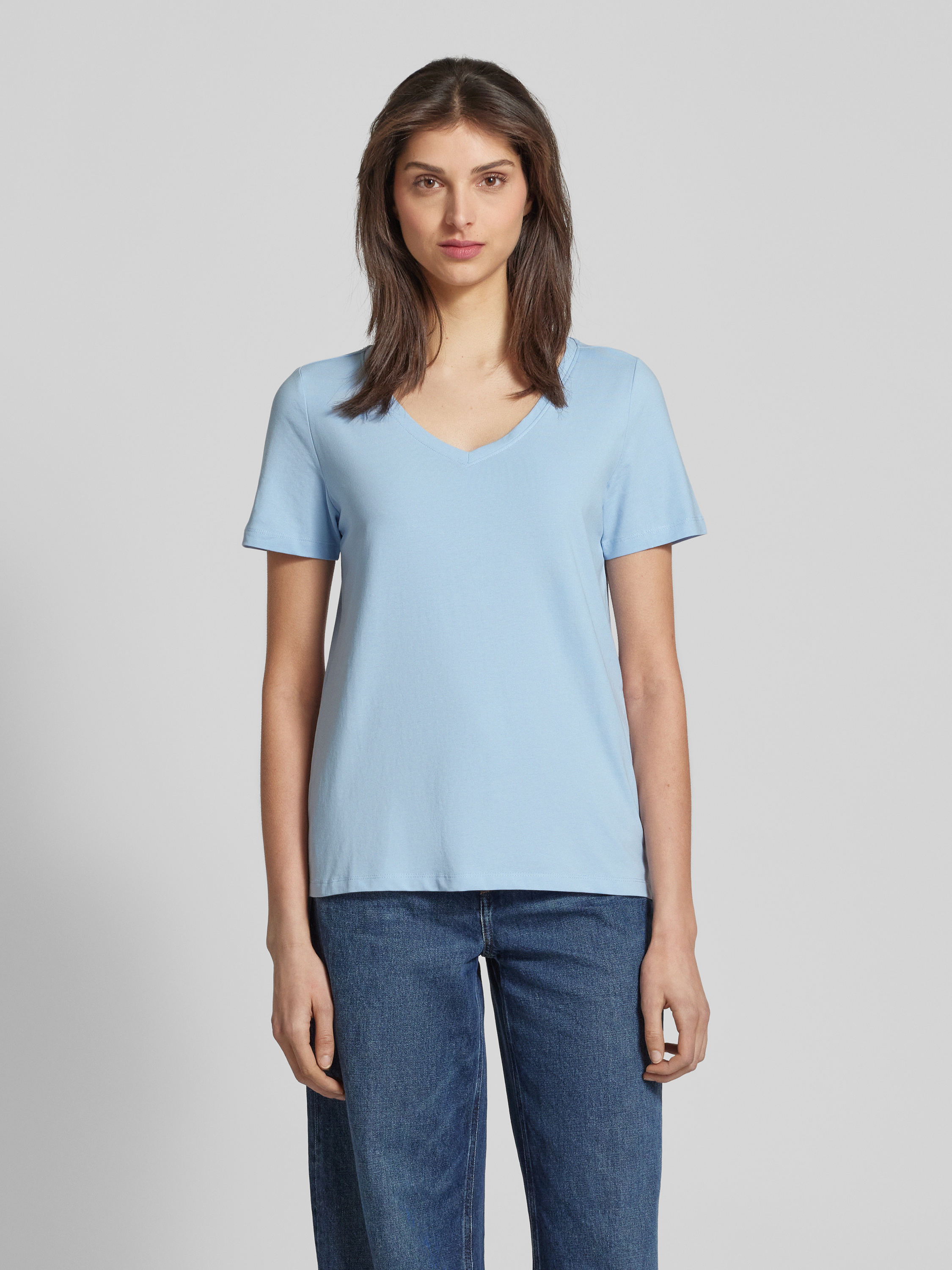 Regular fit T-shirt van mix van katoen en elastaan in lichtblauw