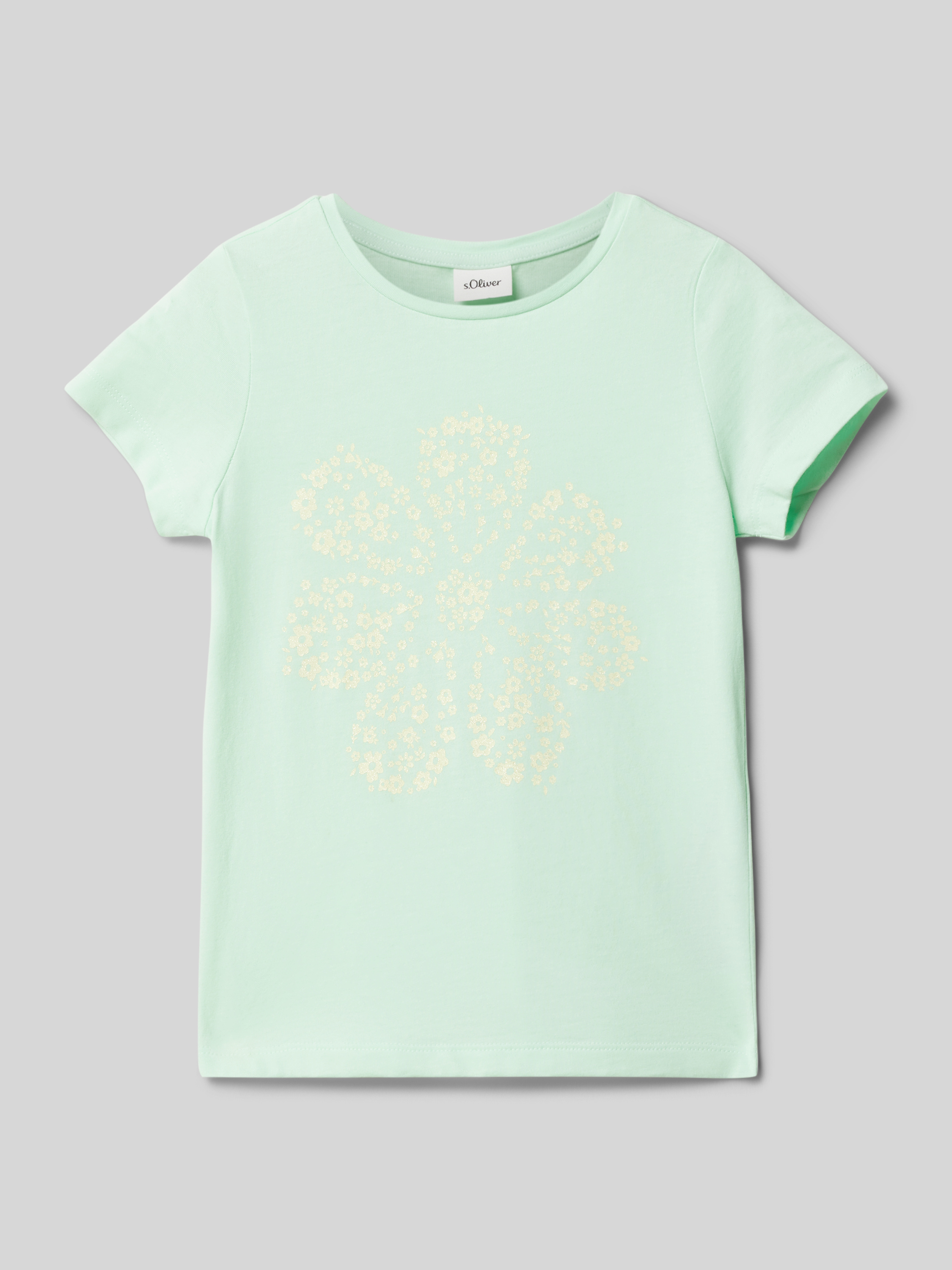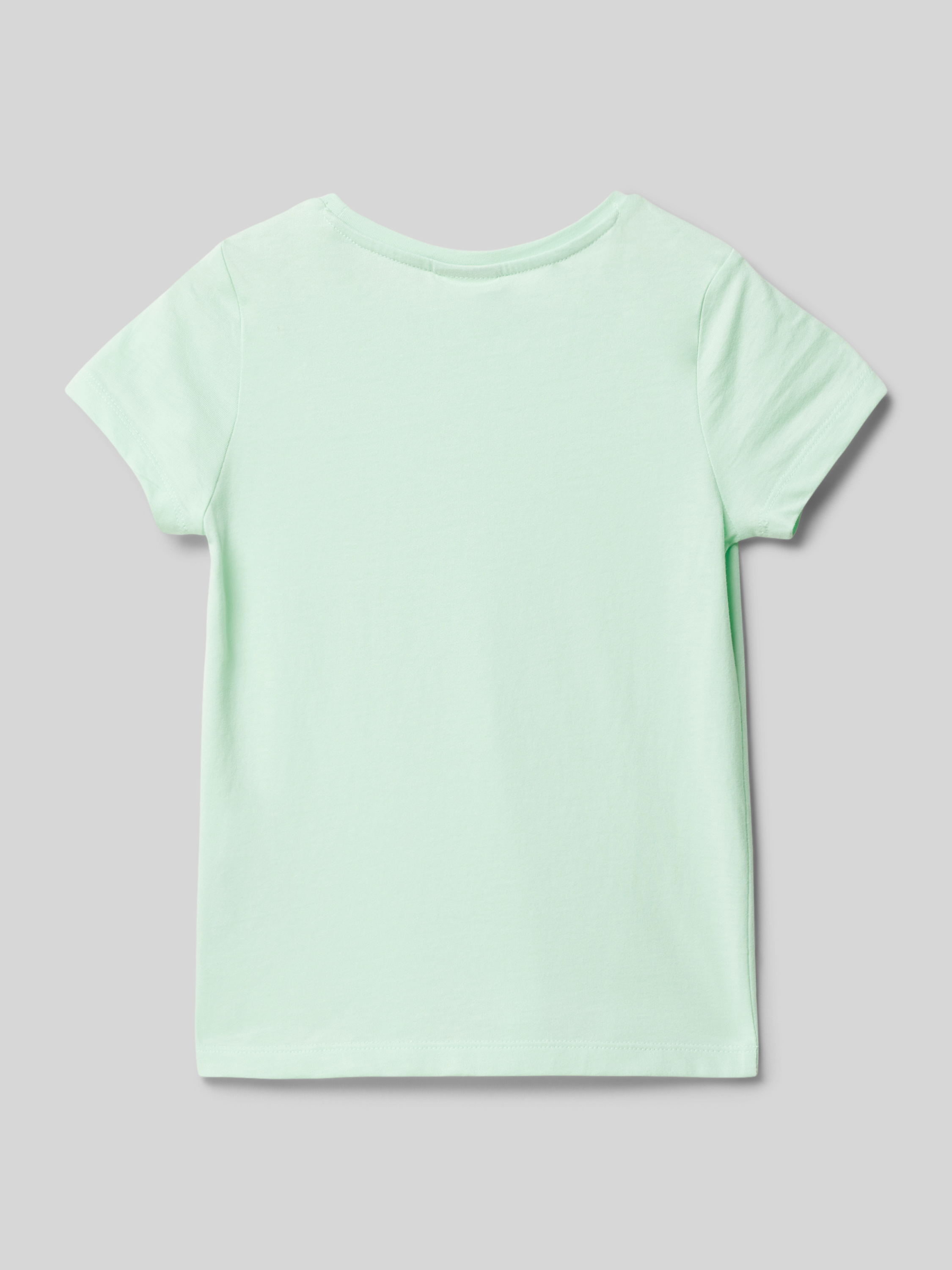 Regular fit T-shirt van puur katoen met glitterprint in mintgroen