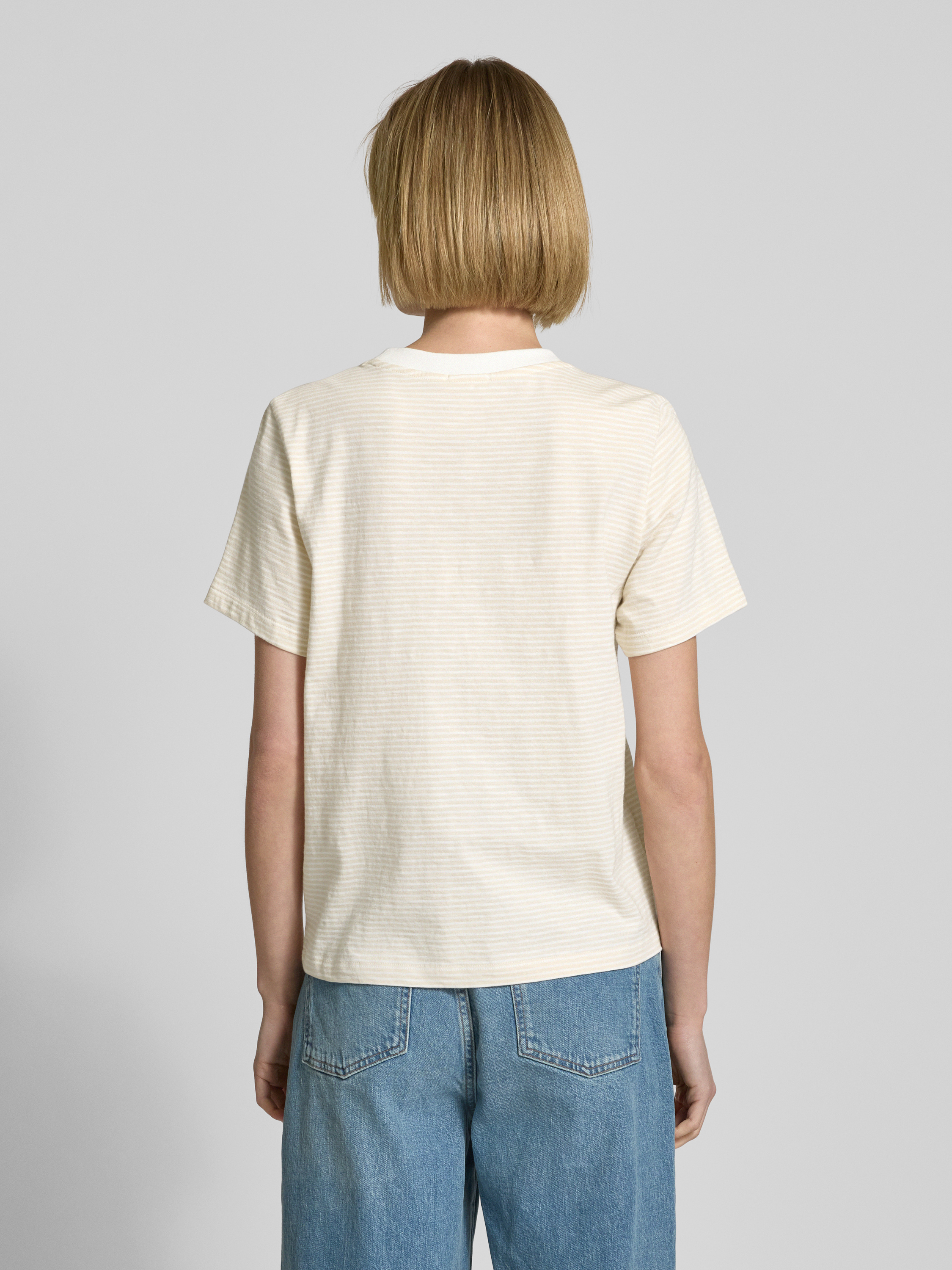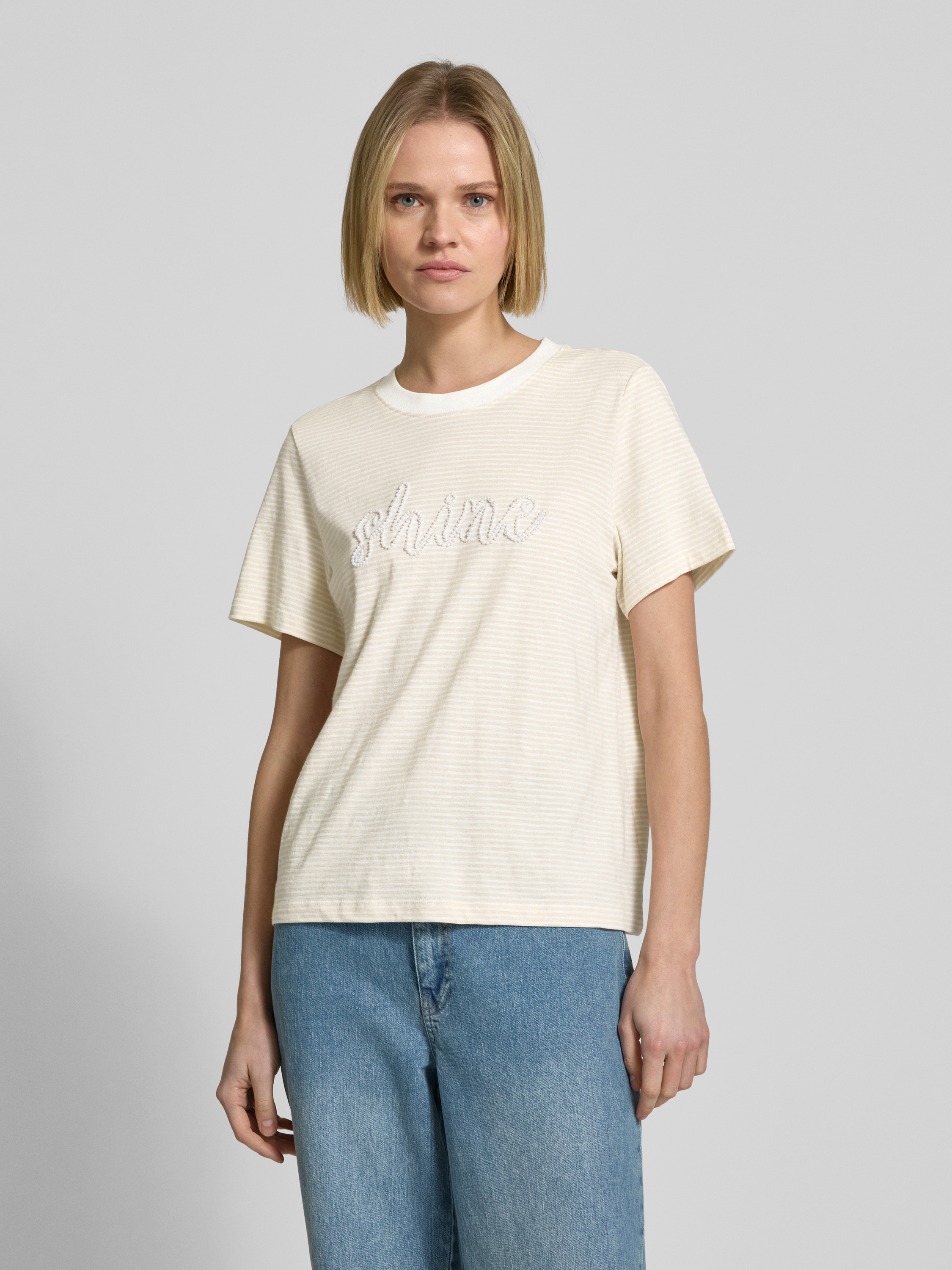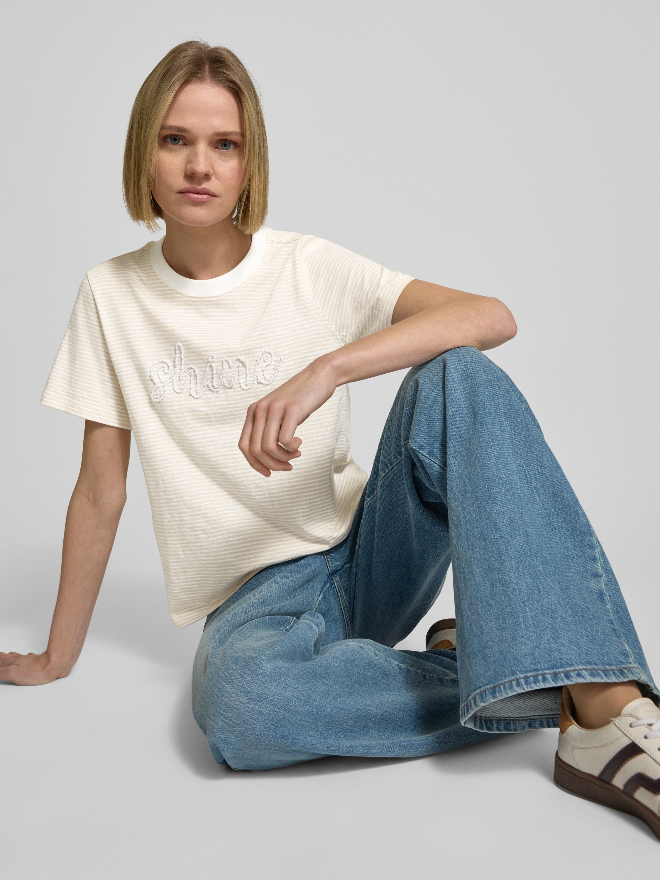 Regular fit T-shirt van puur katoen met tekst in sierkralen in beige