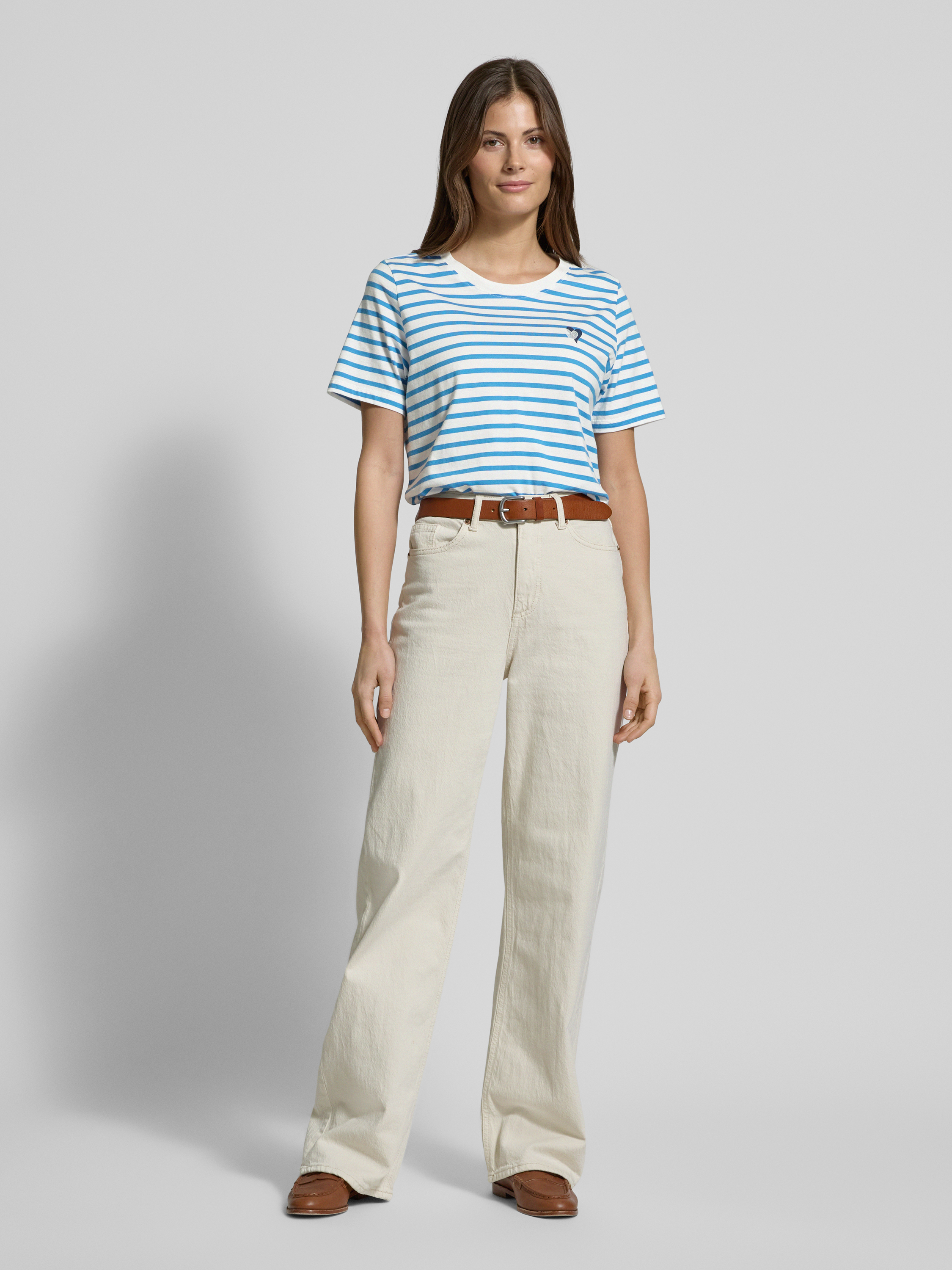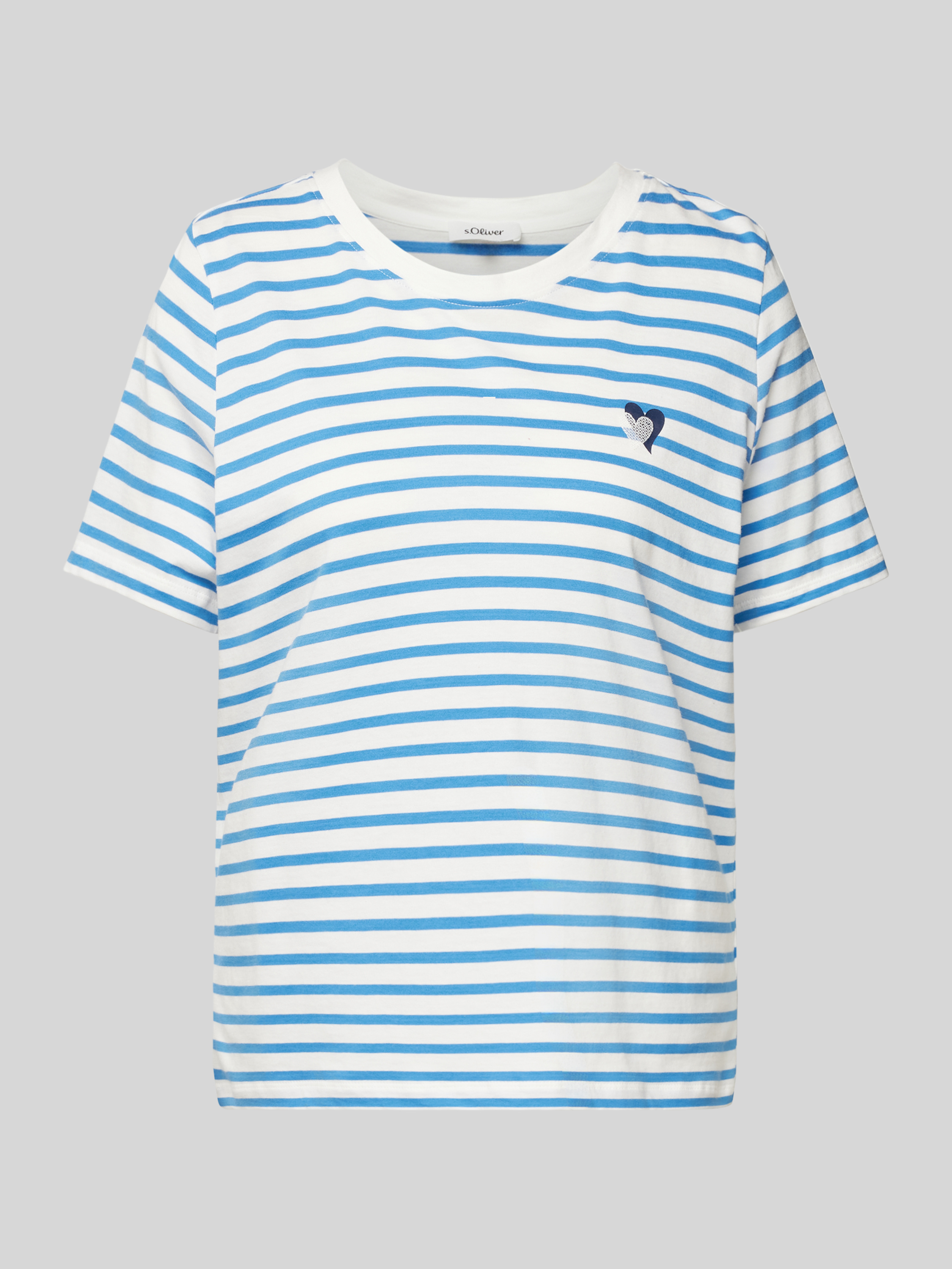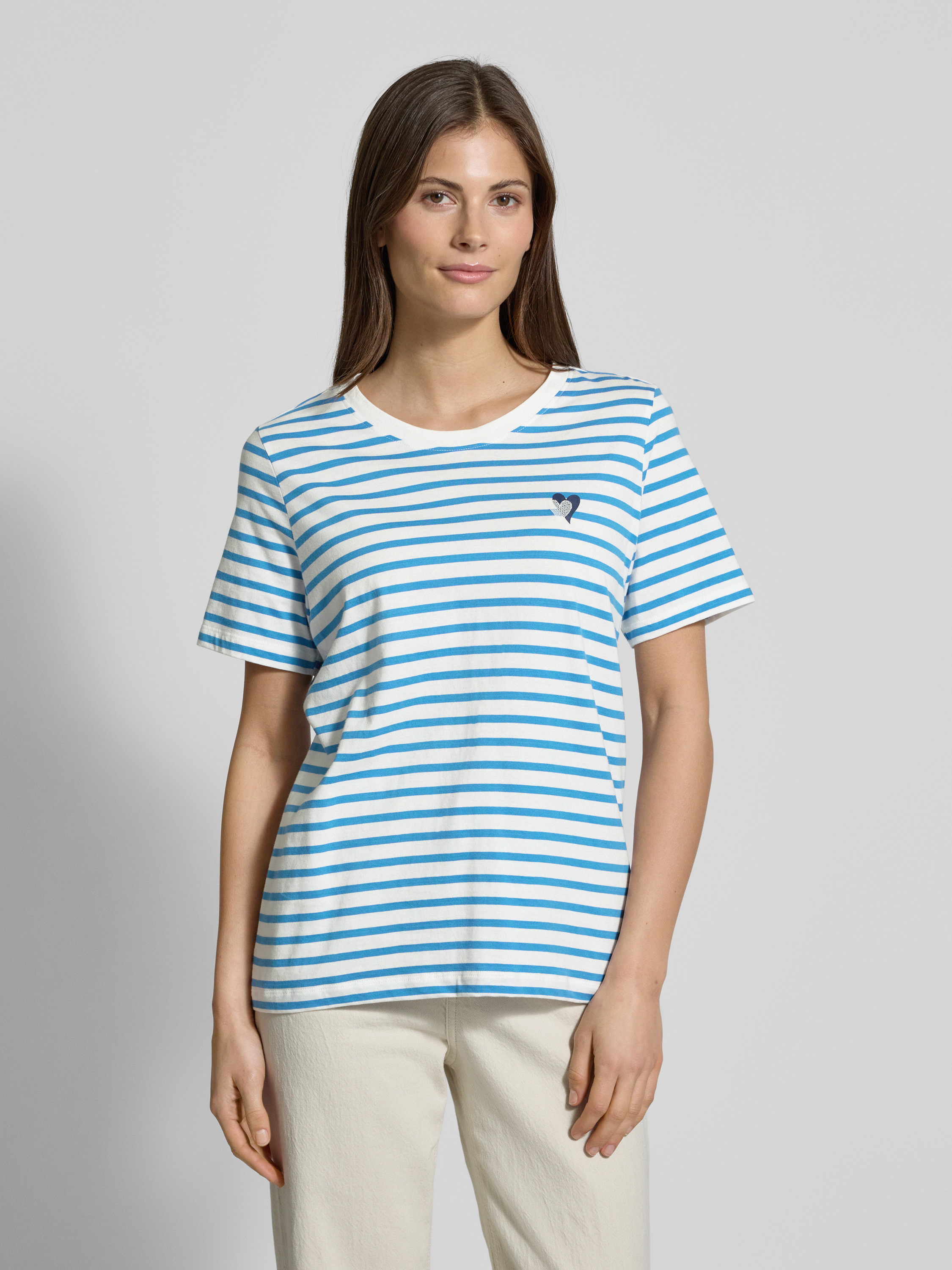 Relaxed fit T-shirt van puur katoen met geborduurd hart in lichtblauw
