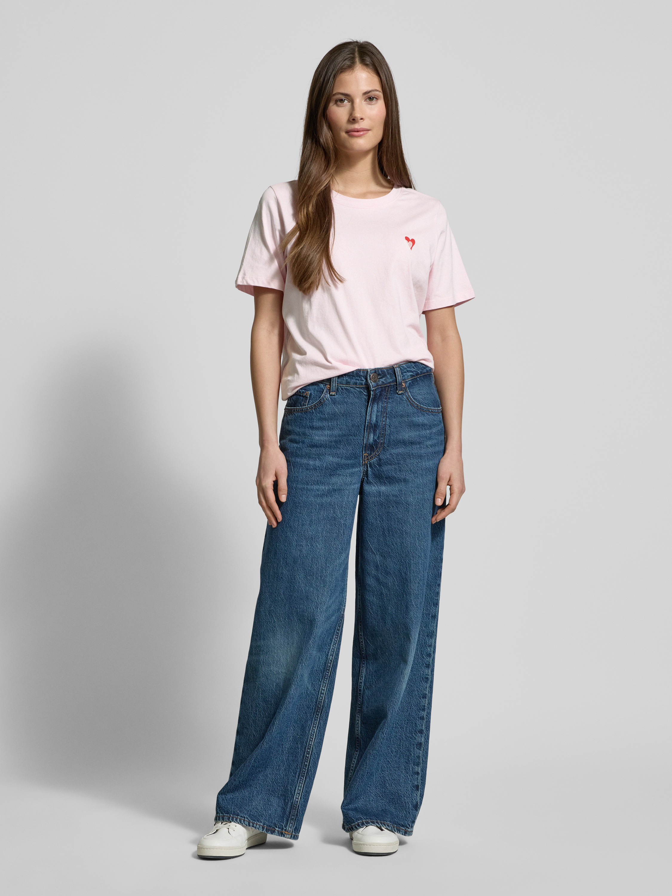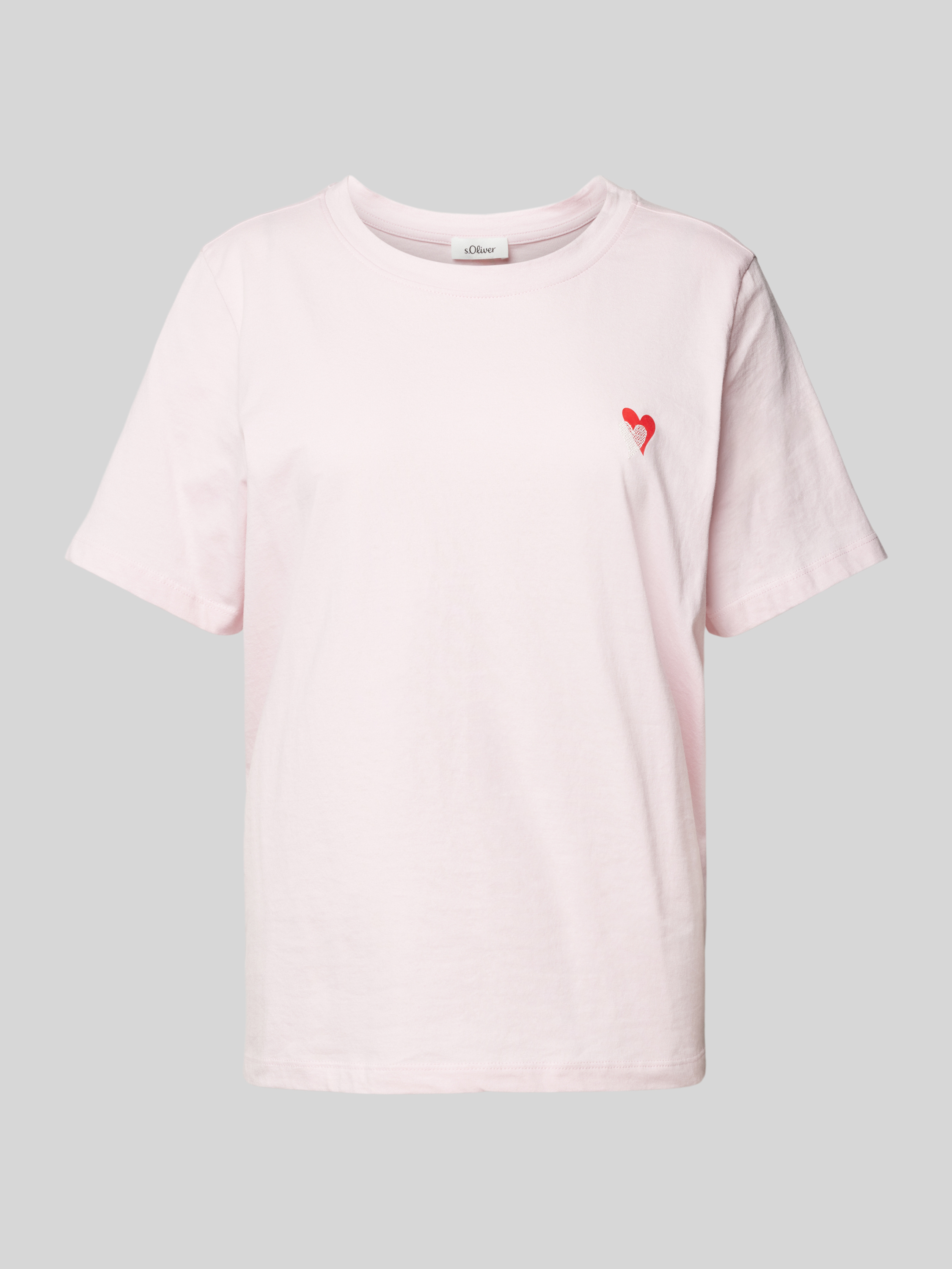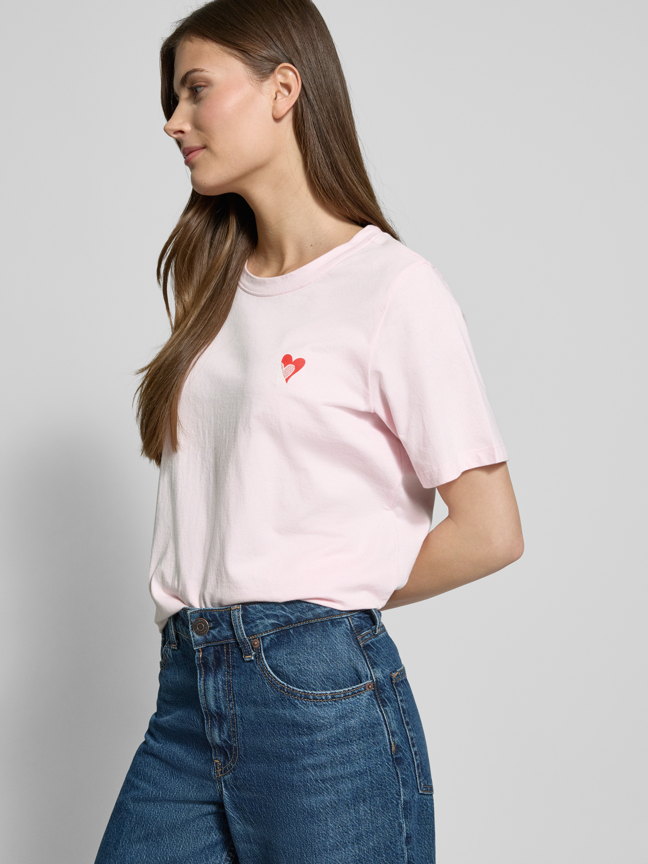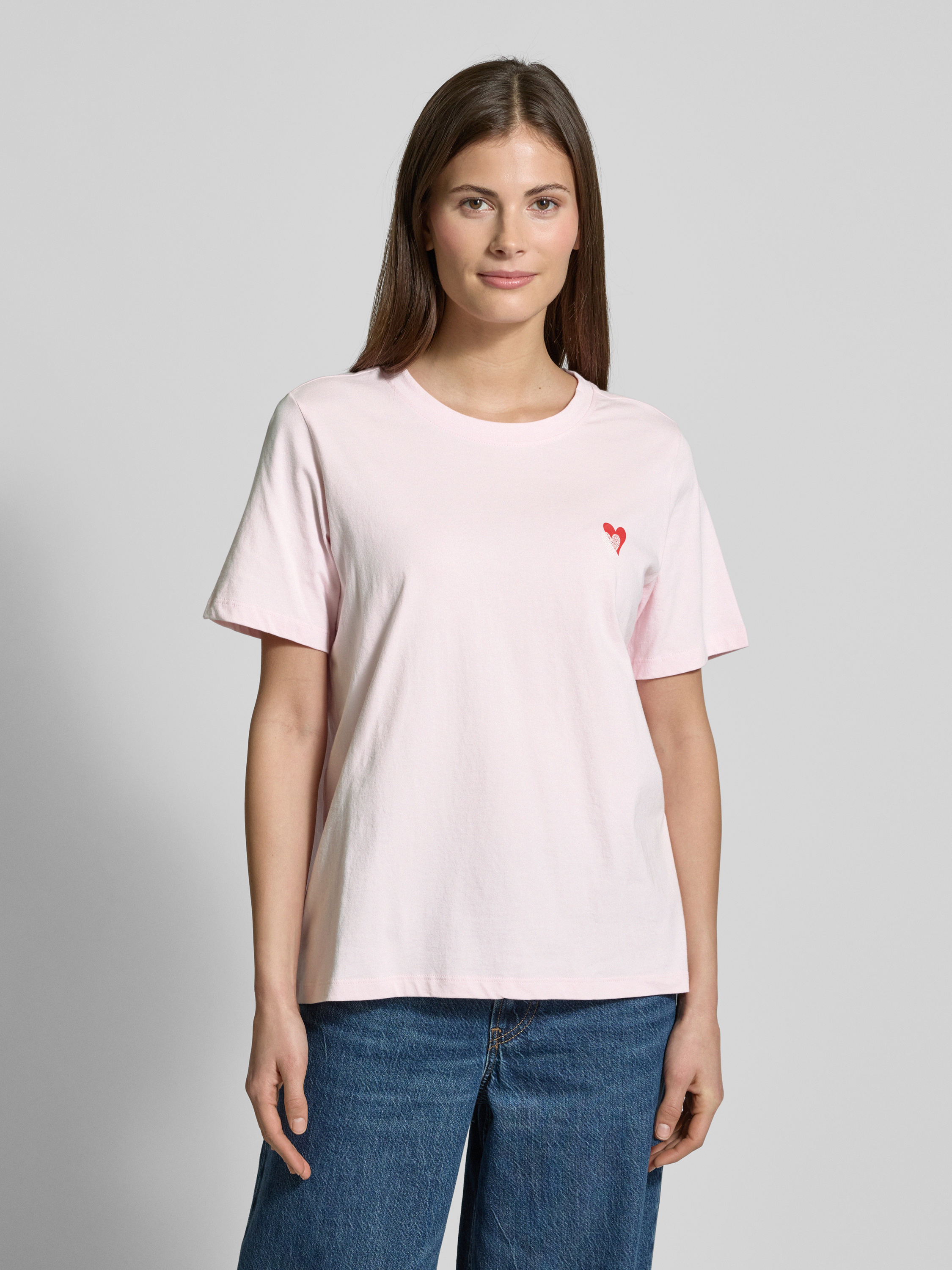 Relaxed fit T-shirt van puur katoen met geborduurd hart in roze