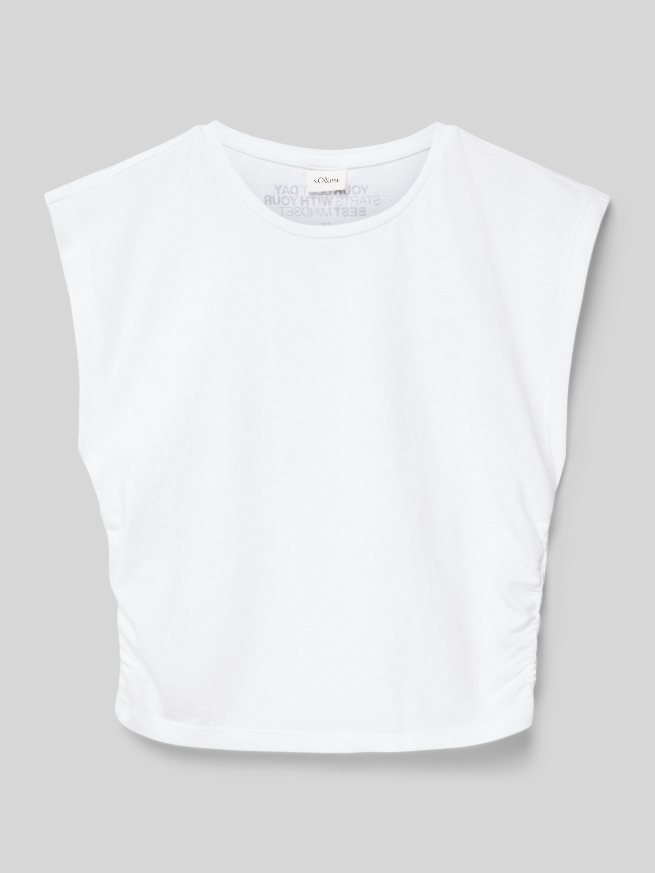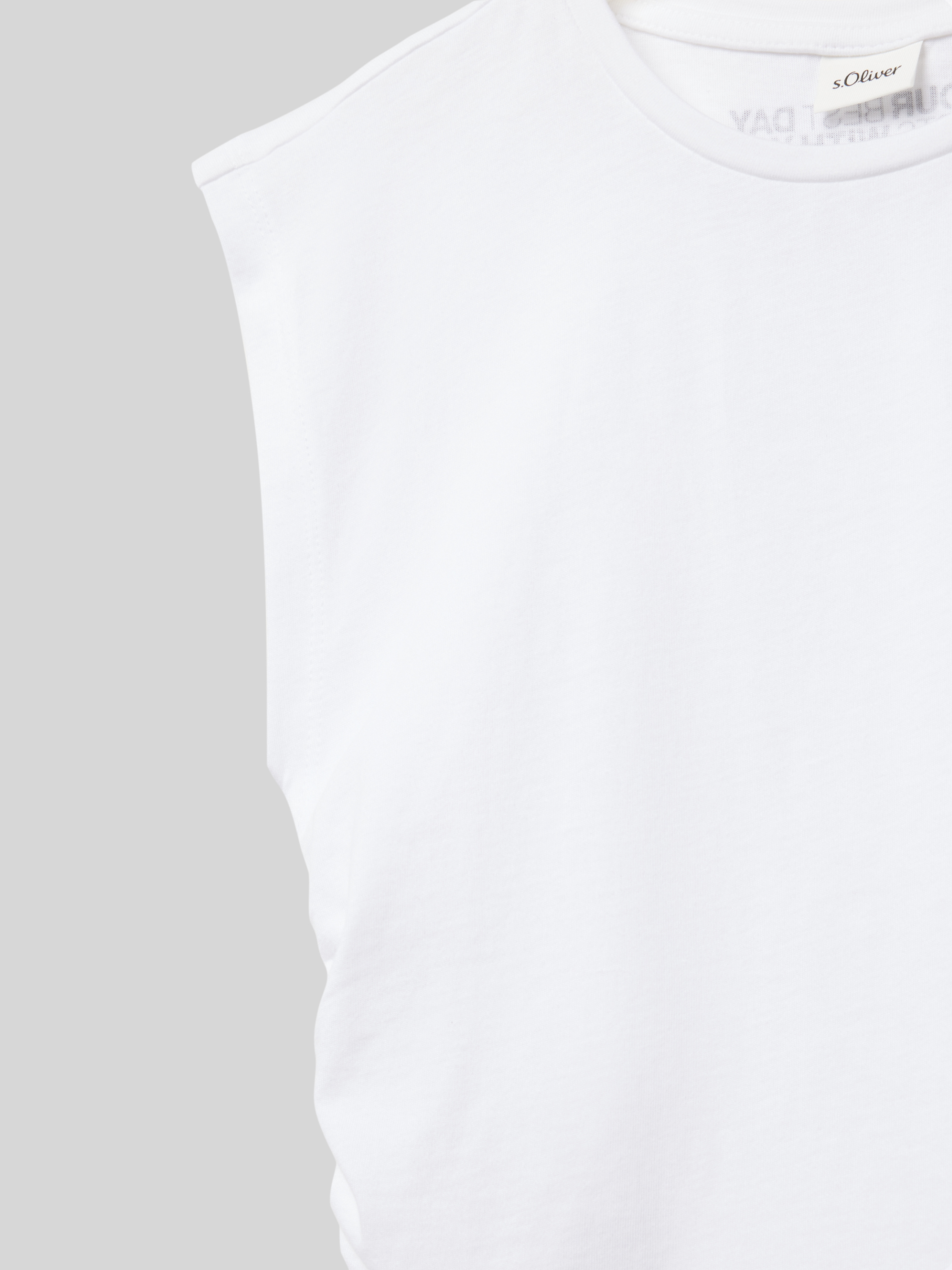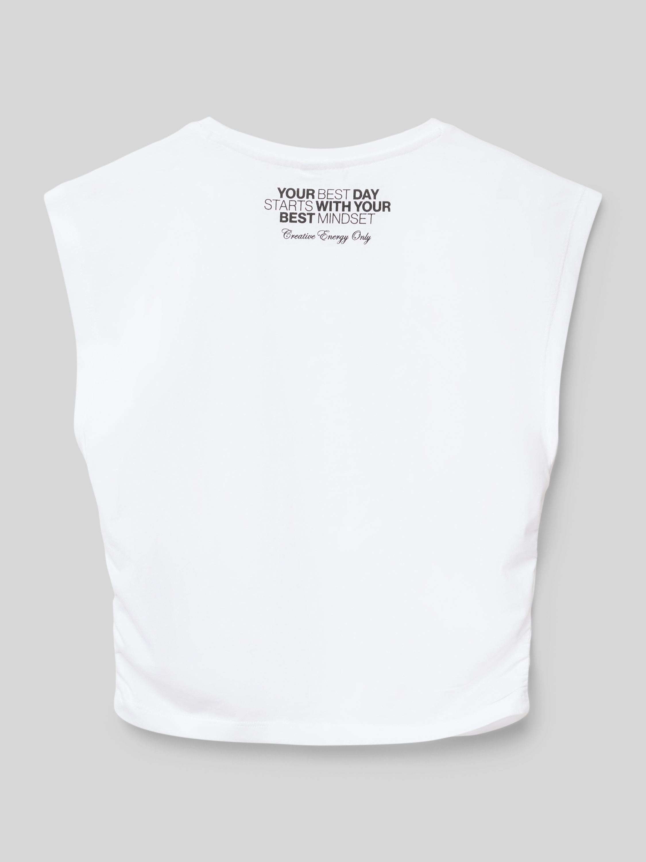 Shaped fit korte top van zuiver katoen met tekstprint in wit