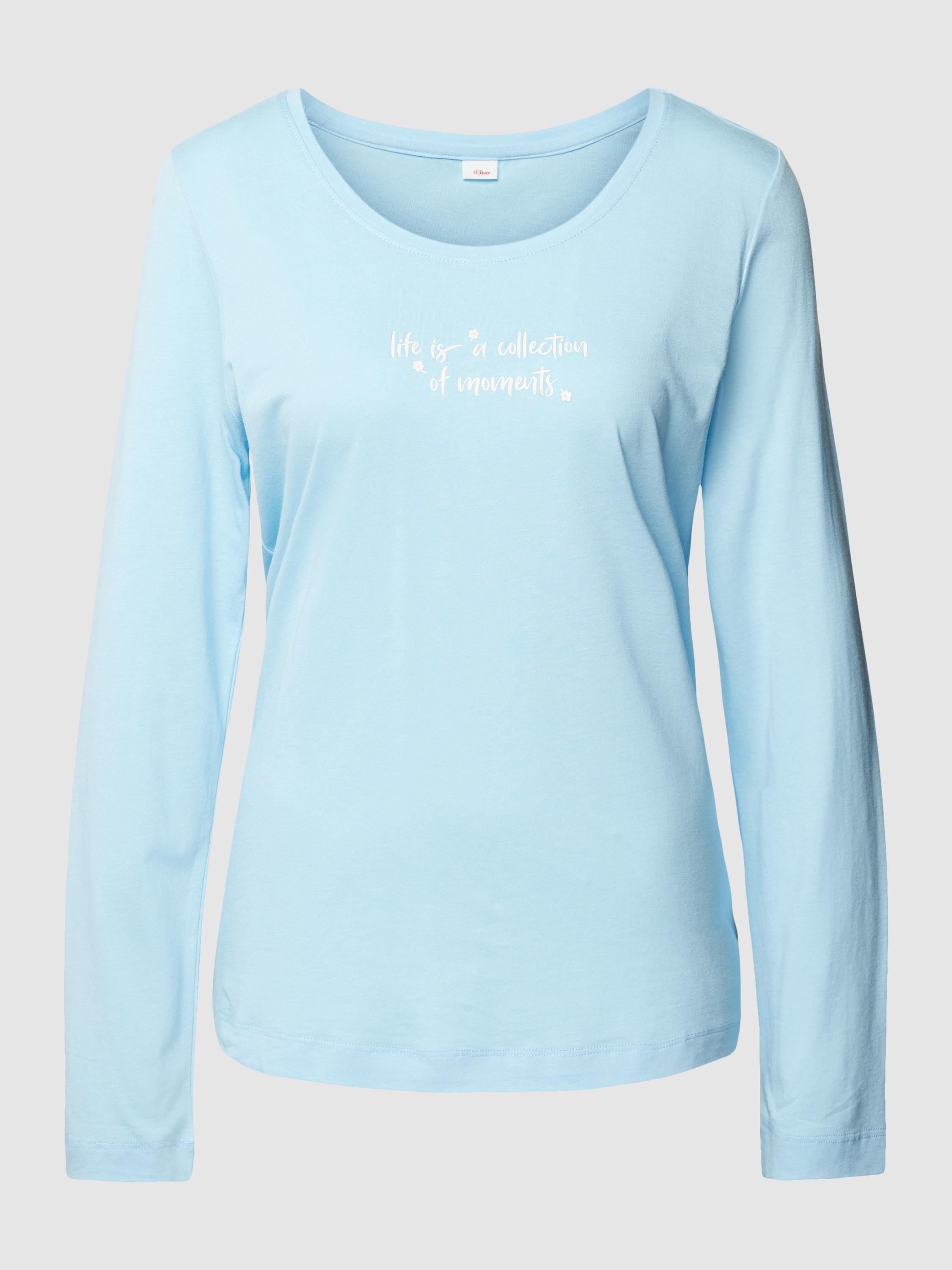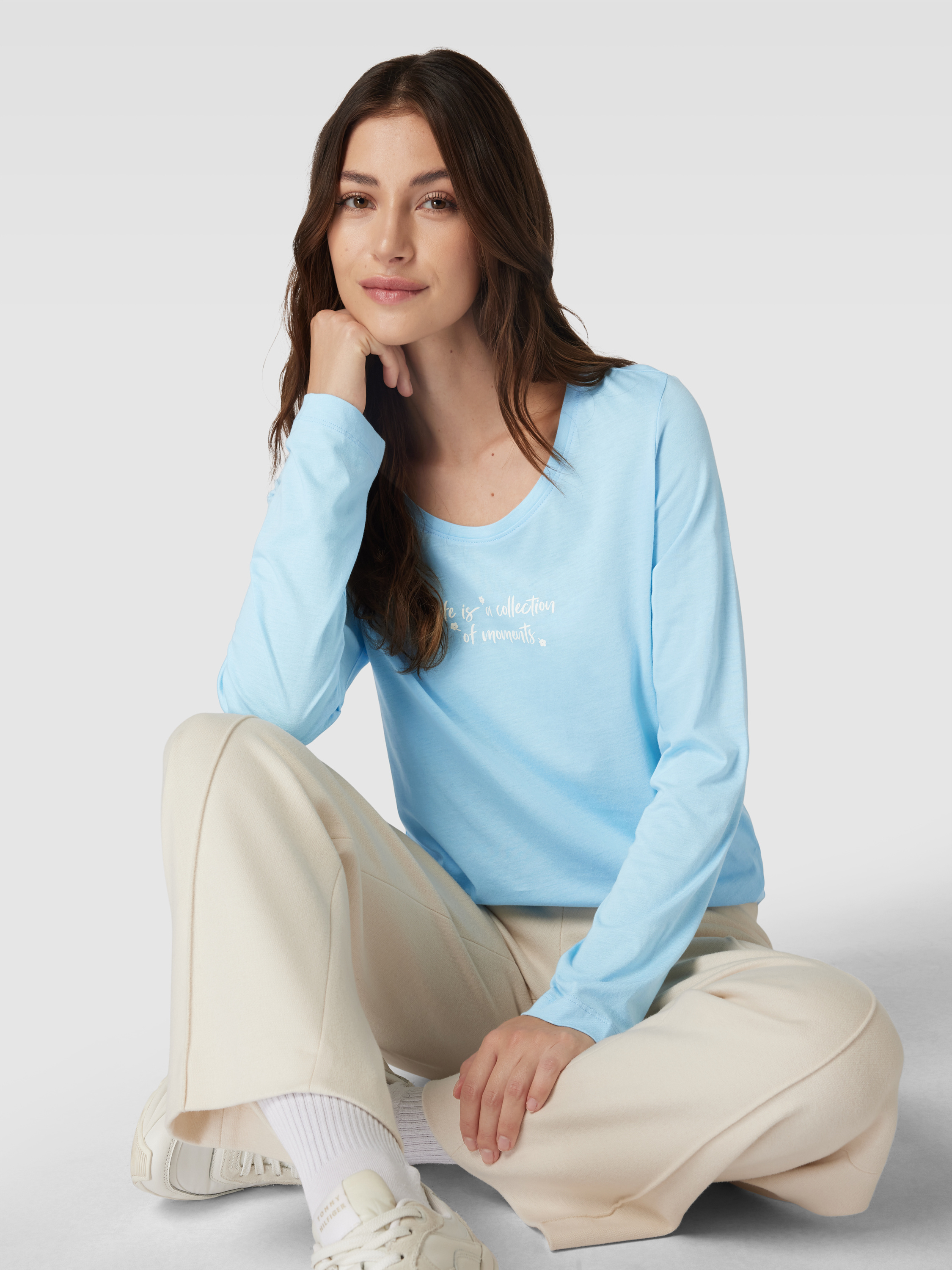 Shirt met lange mouwen en statementprint, model 'Everyday' in blauw