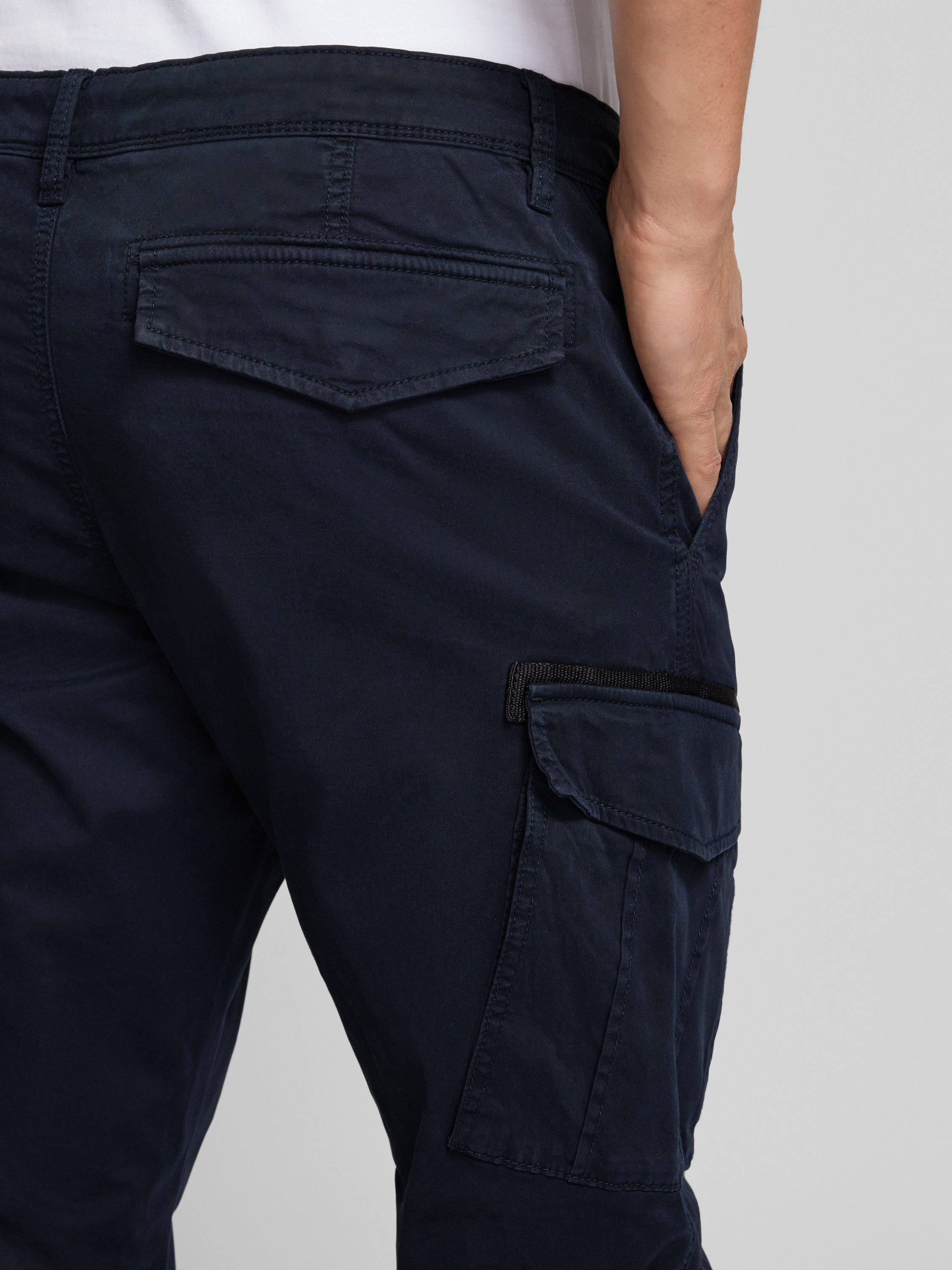 Stoffen broek met klepzakken in donkerblauw