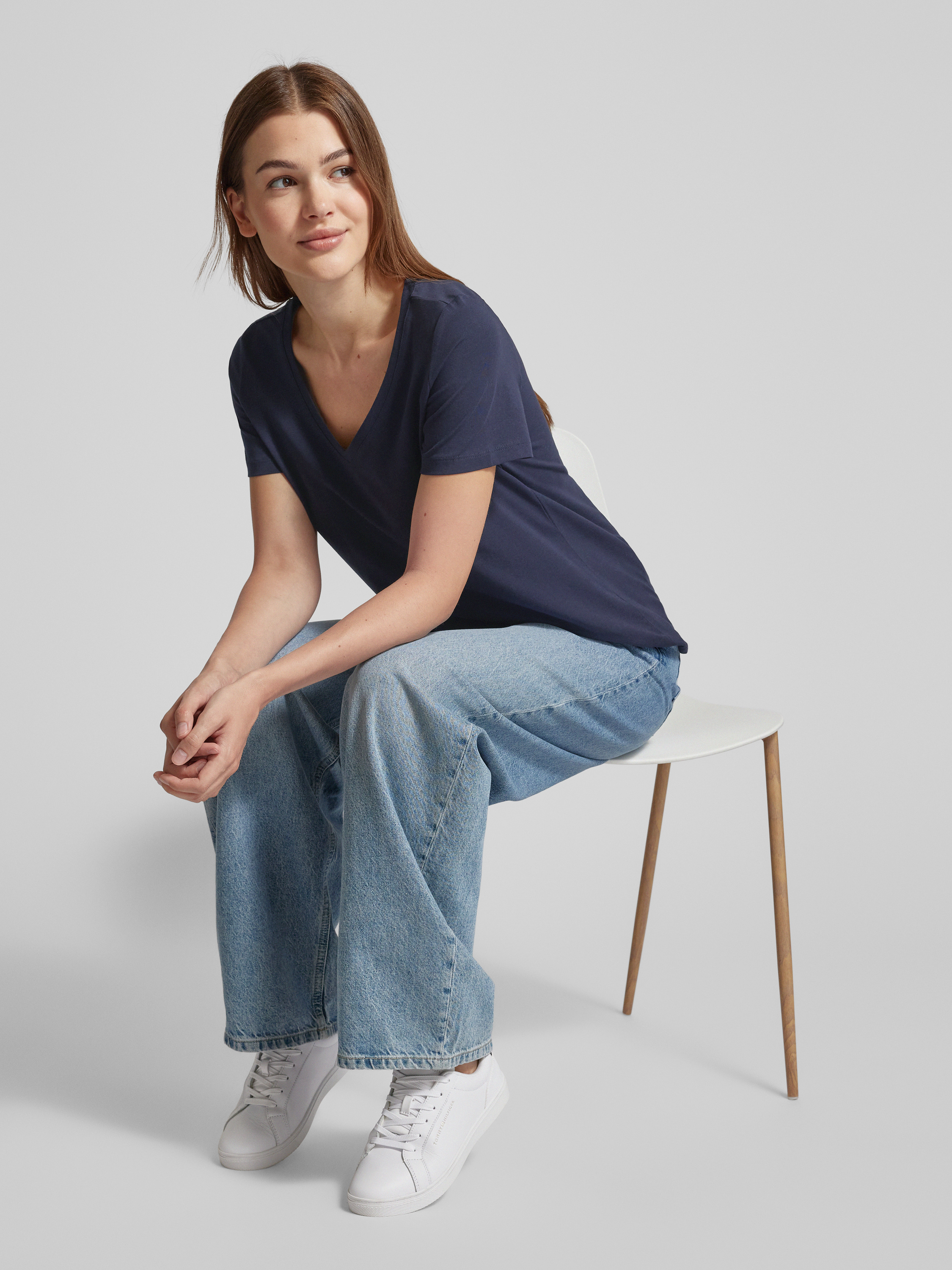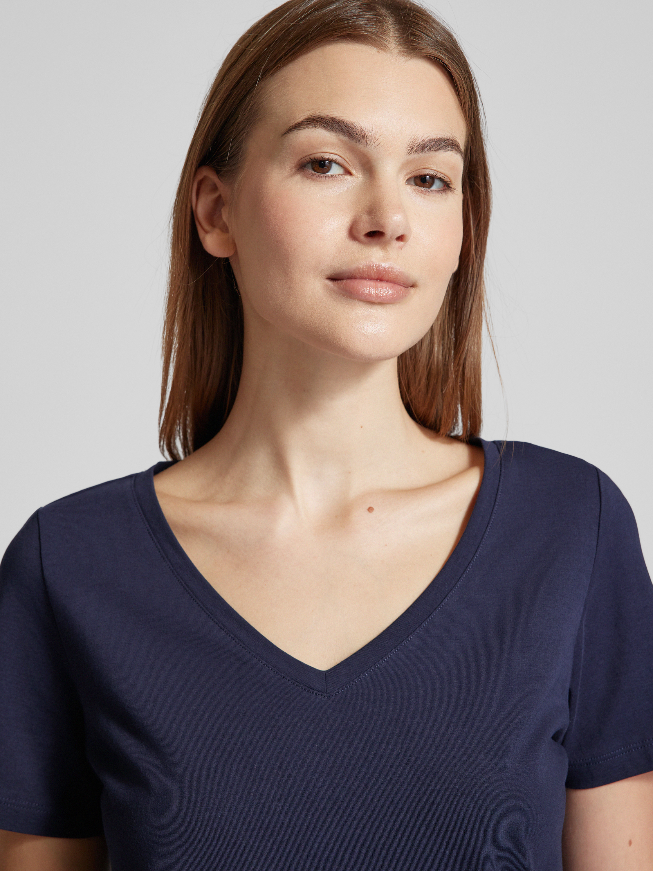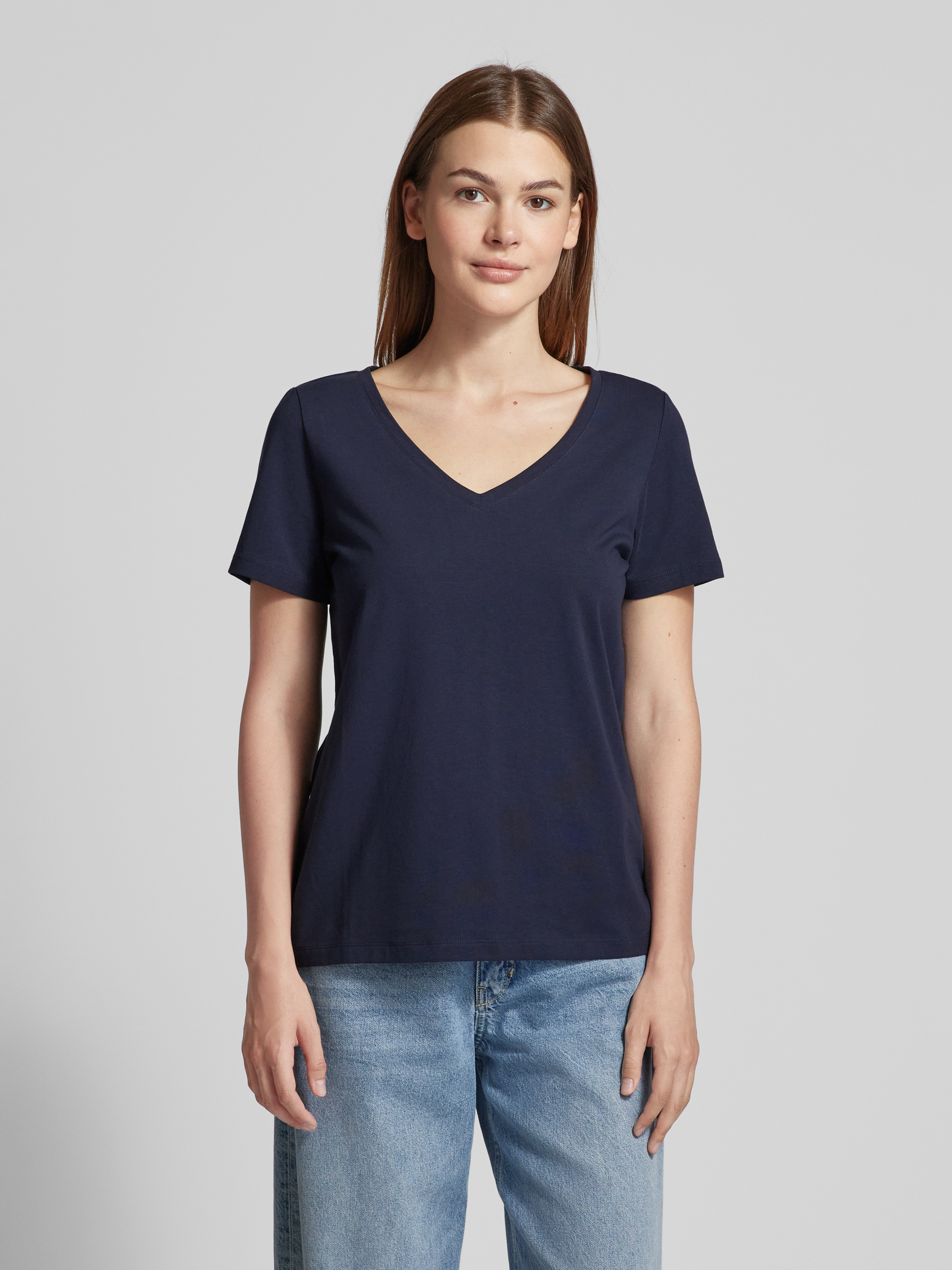 T-shirt met V-hals in marineblauw