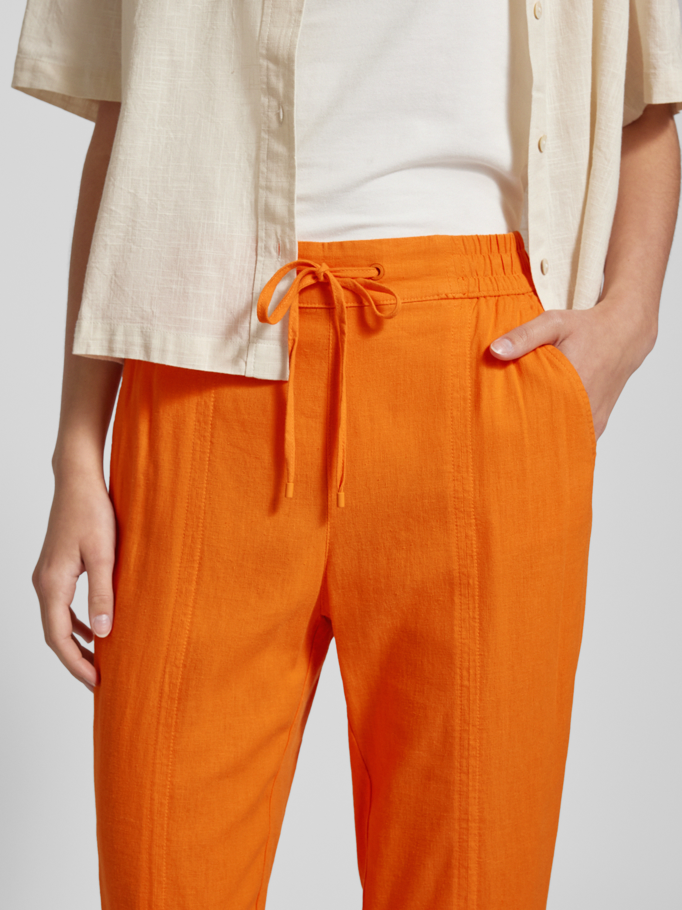 Tapered fit stoffen broek met tunnelkoord in oranje