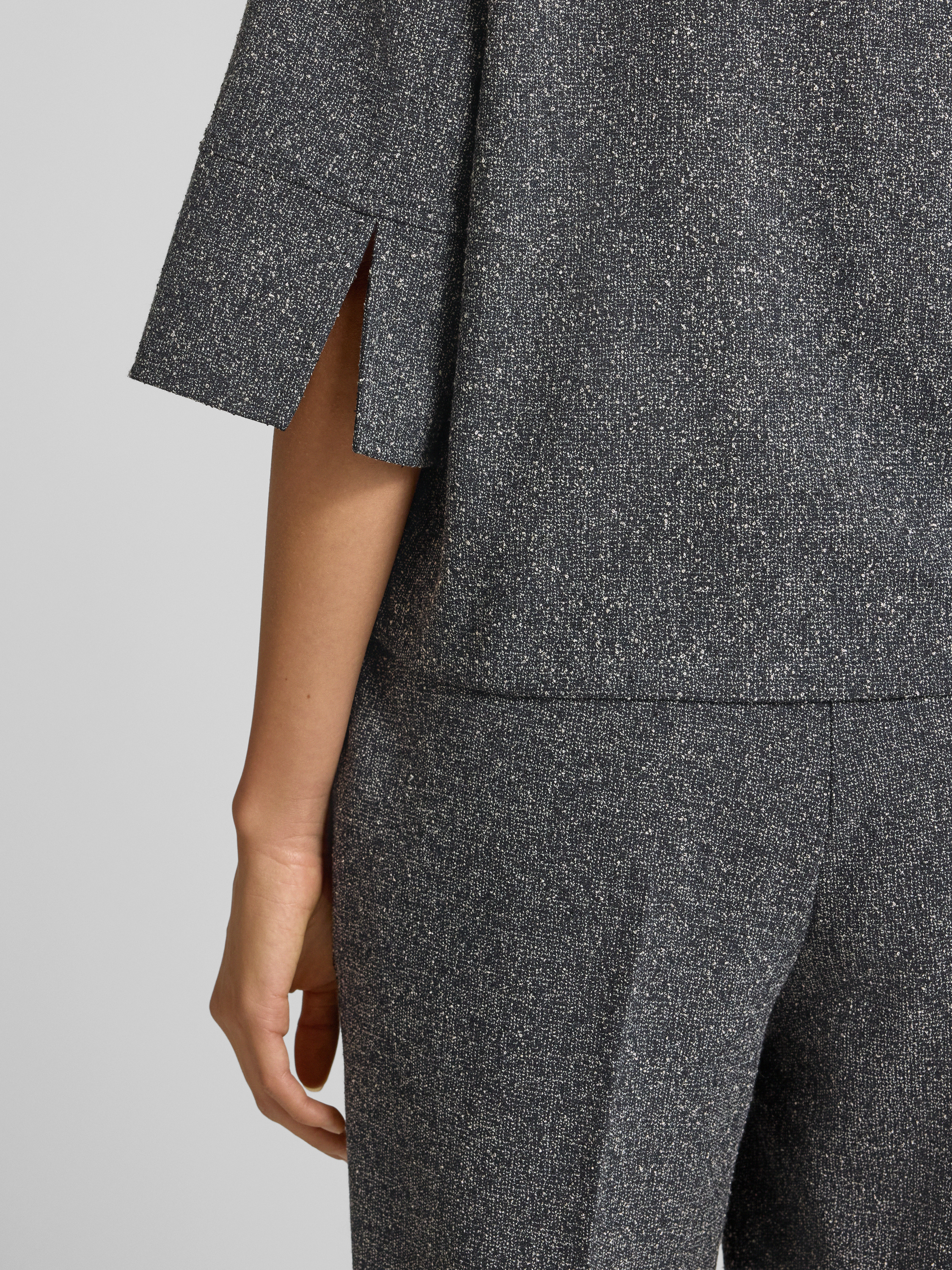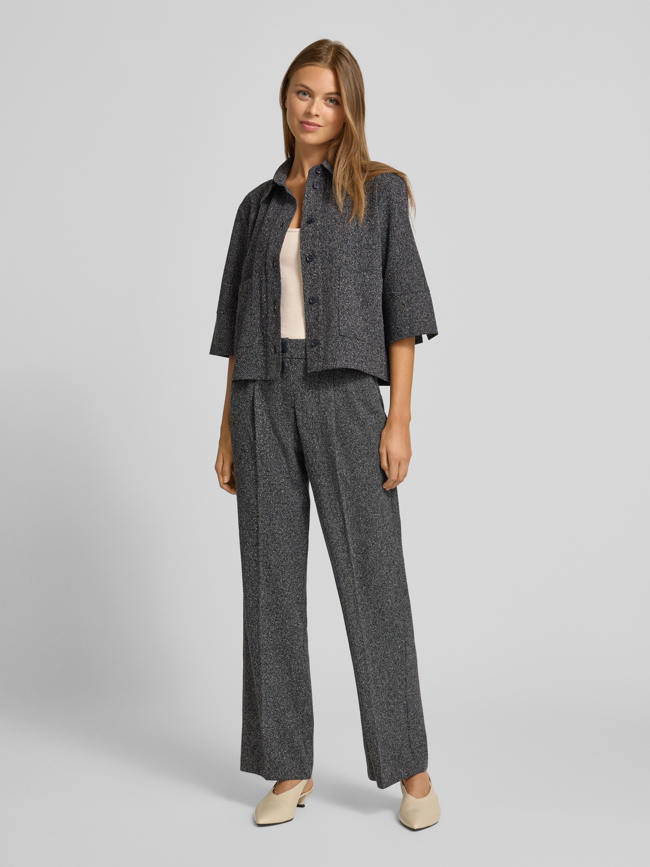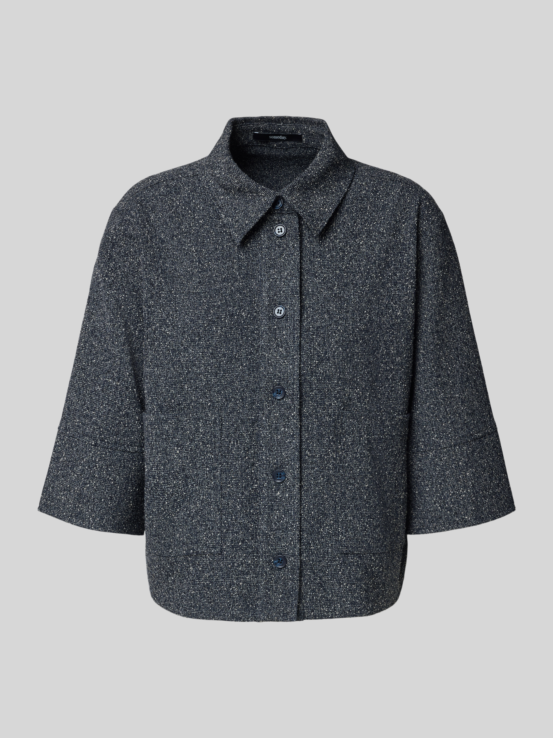 Blouse met viscose en overhemdkraag, model 'Zinami' in marineblauw