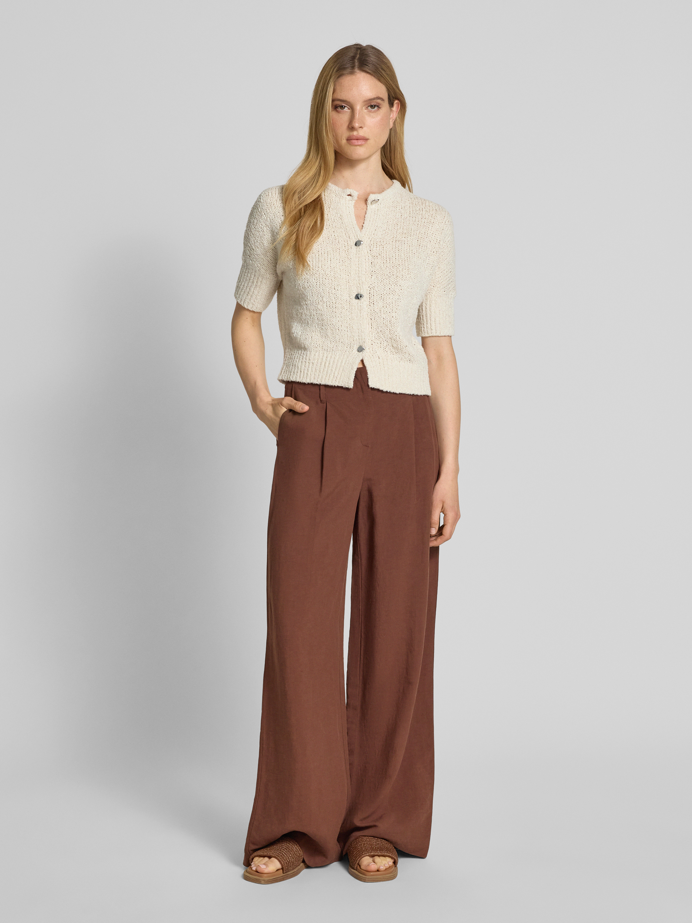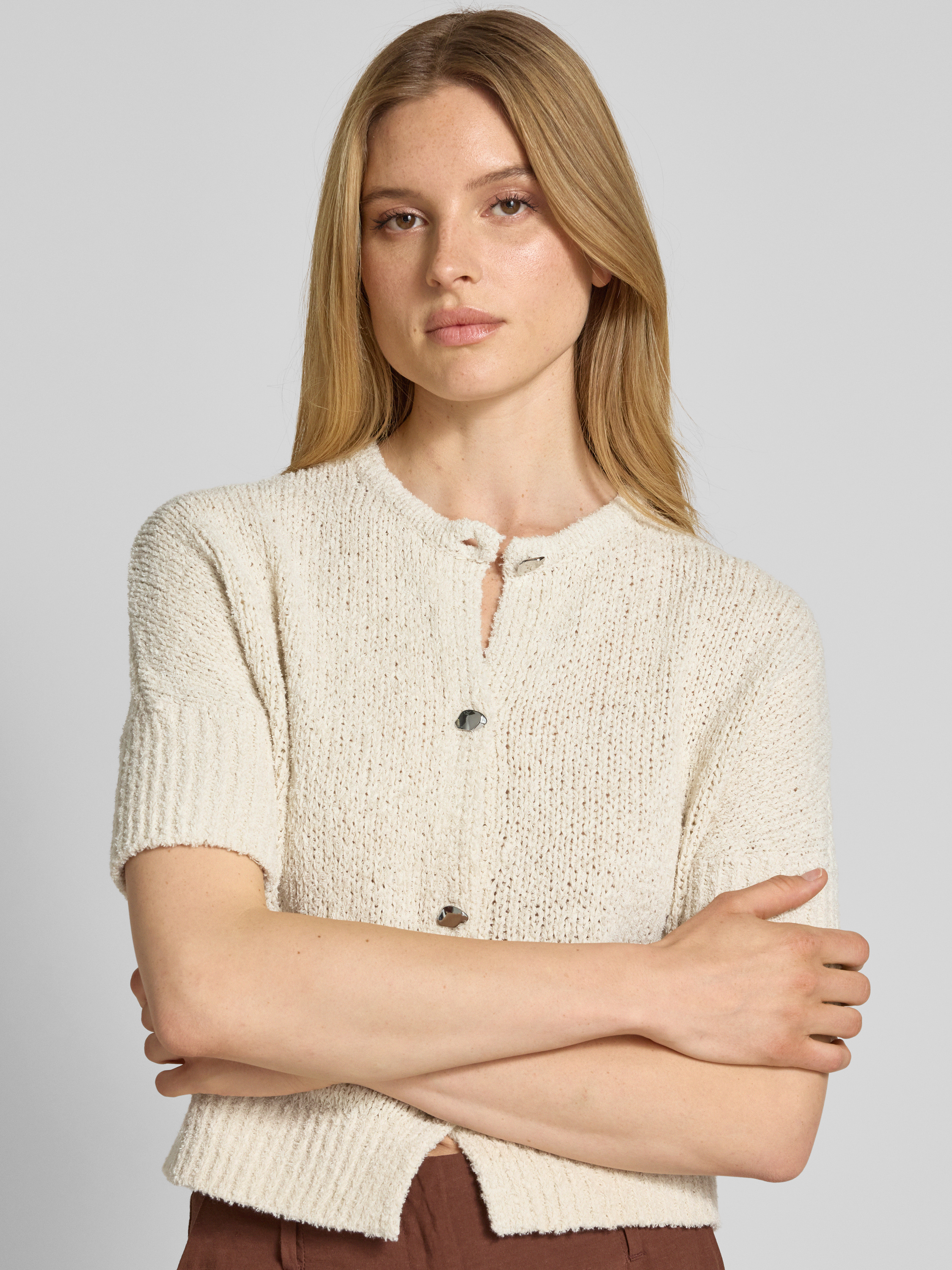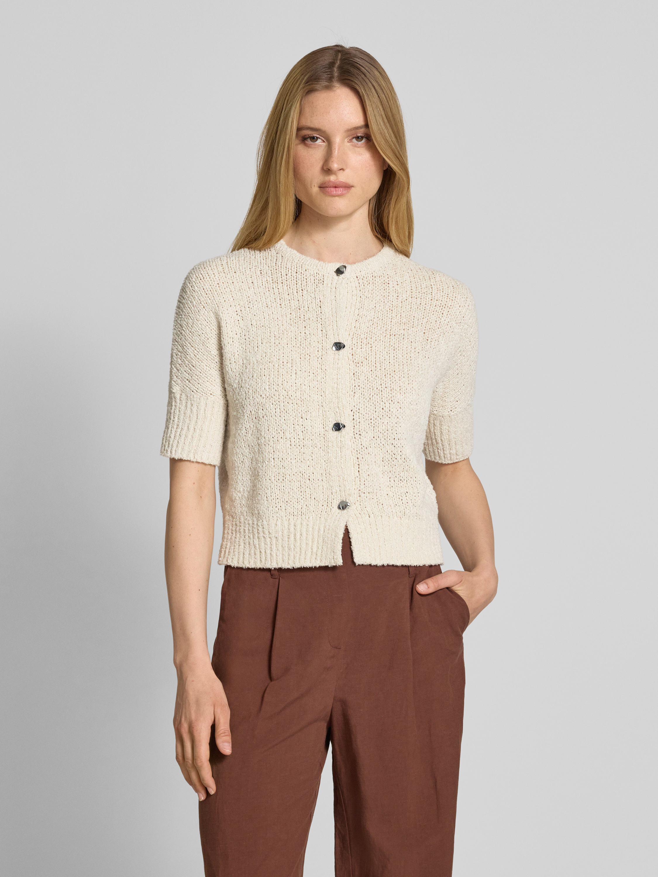 Gebreid jack met 1/2-mouwen, model 'Tibelita' in zand