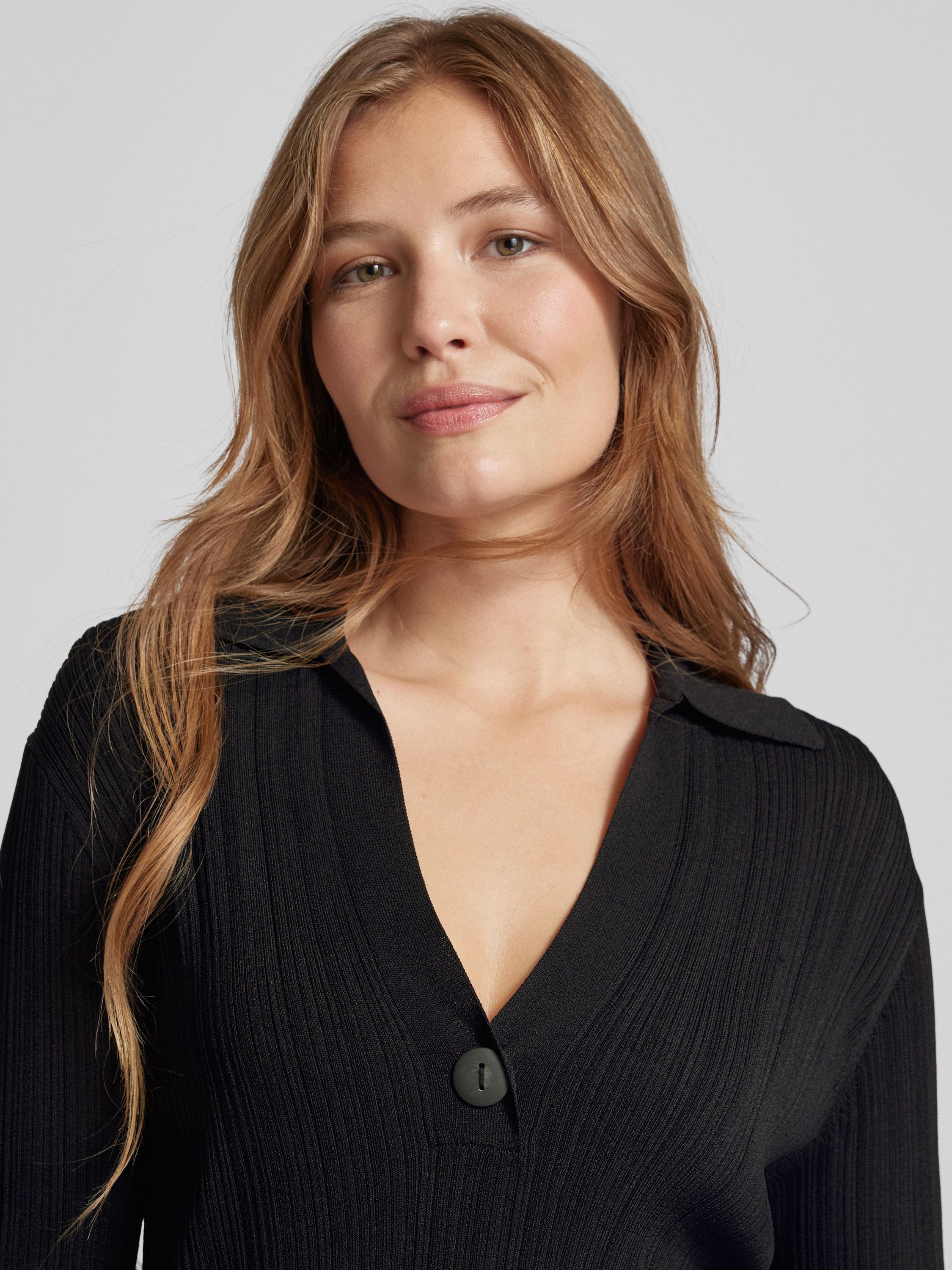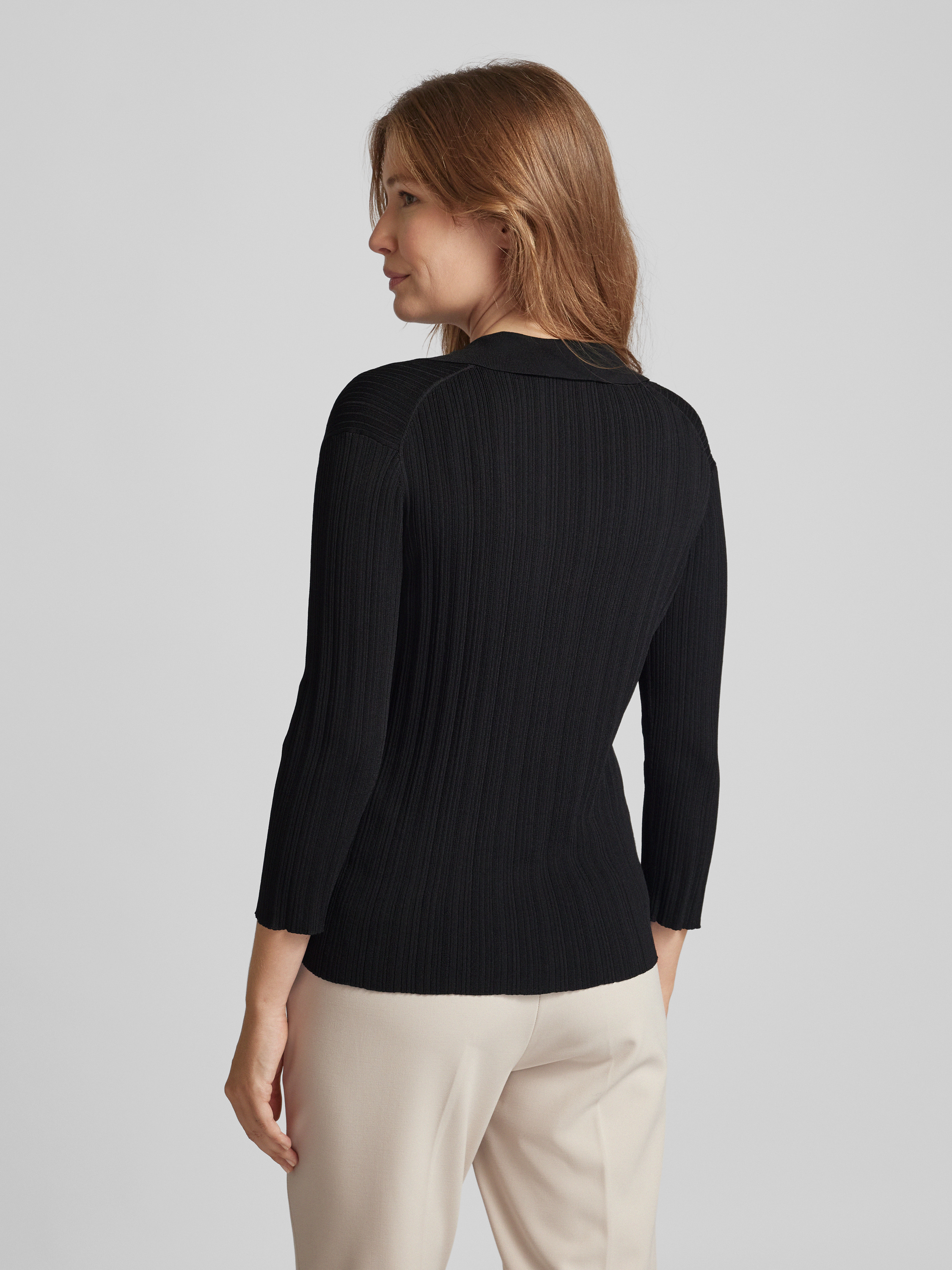 Gebreide pullover met V-hals, model 'Tomoya' in zwart