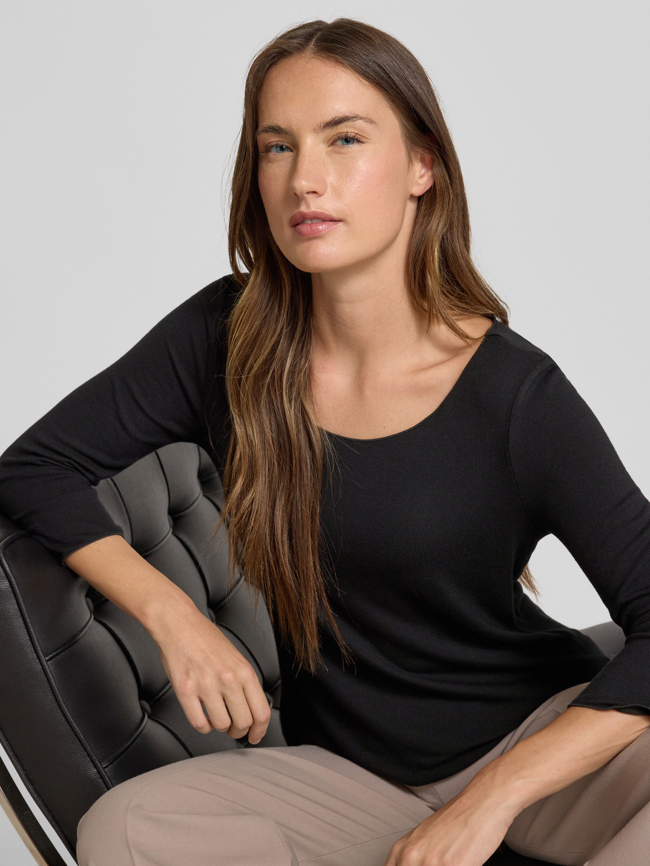 • Someday Shirt met lange mouwen van viscosemix met ronde hals, model 'Kirosa' Zwart
