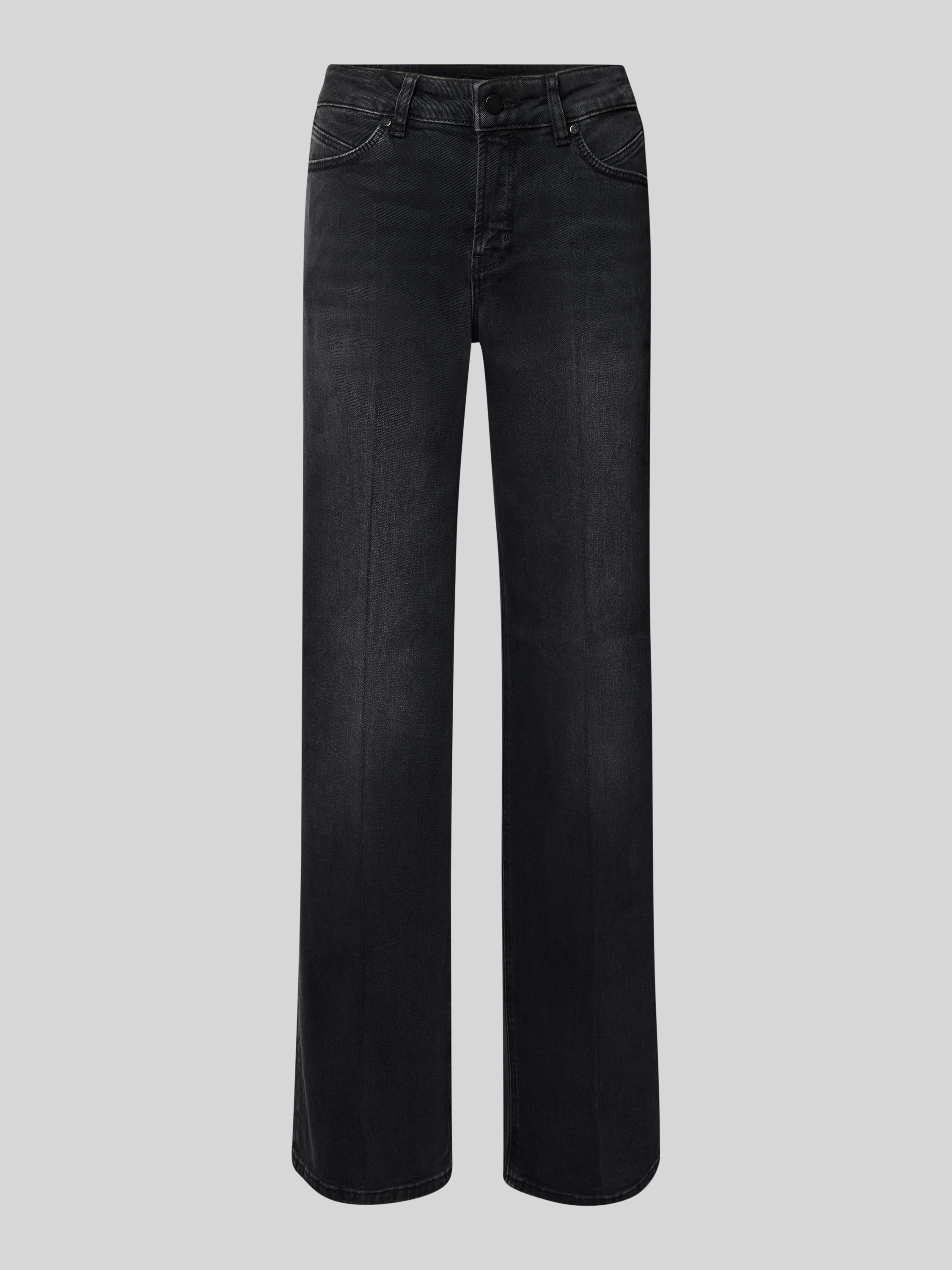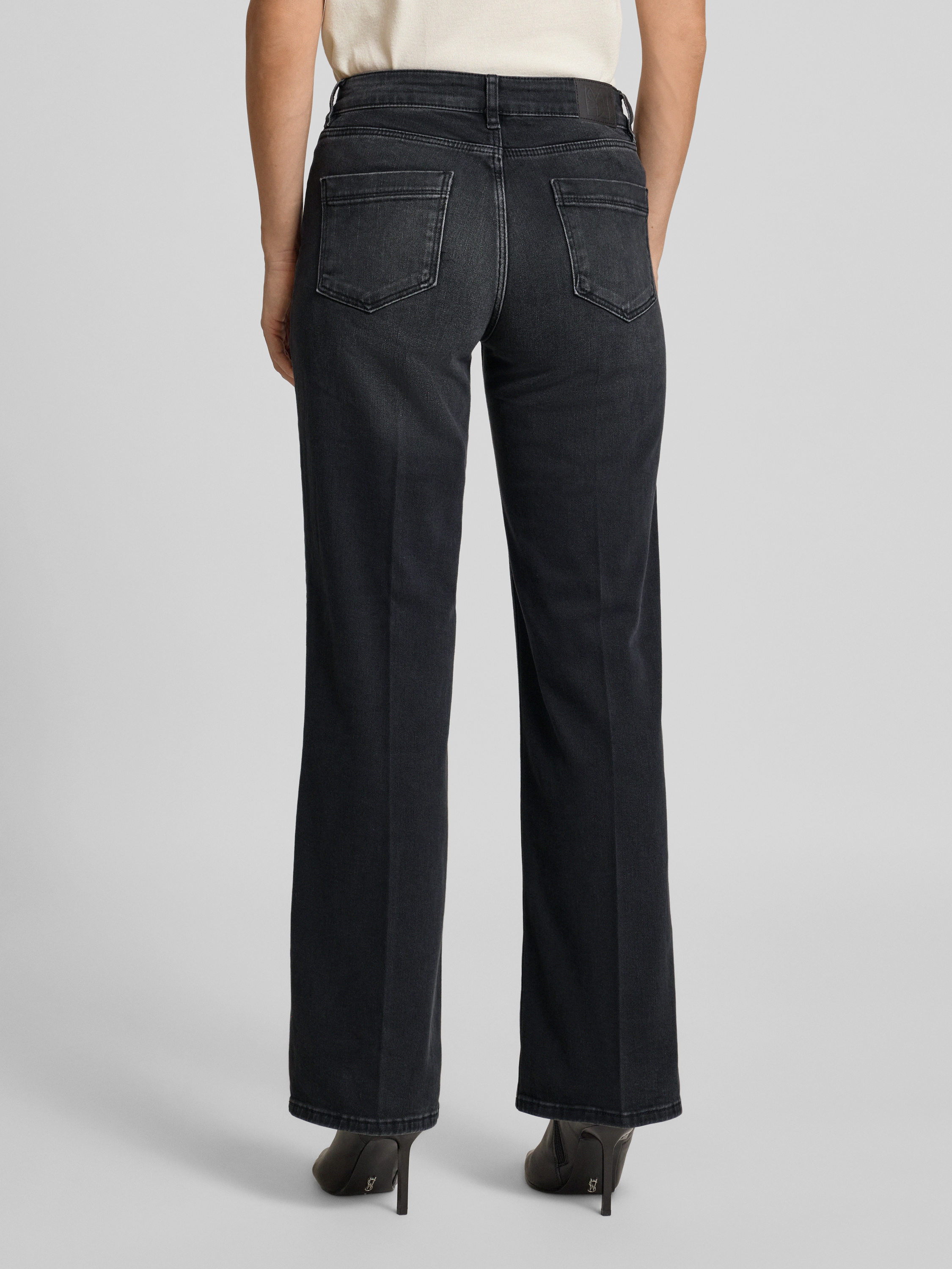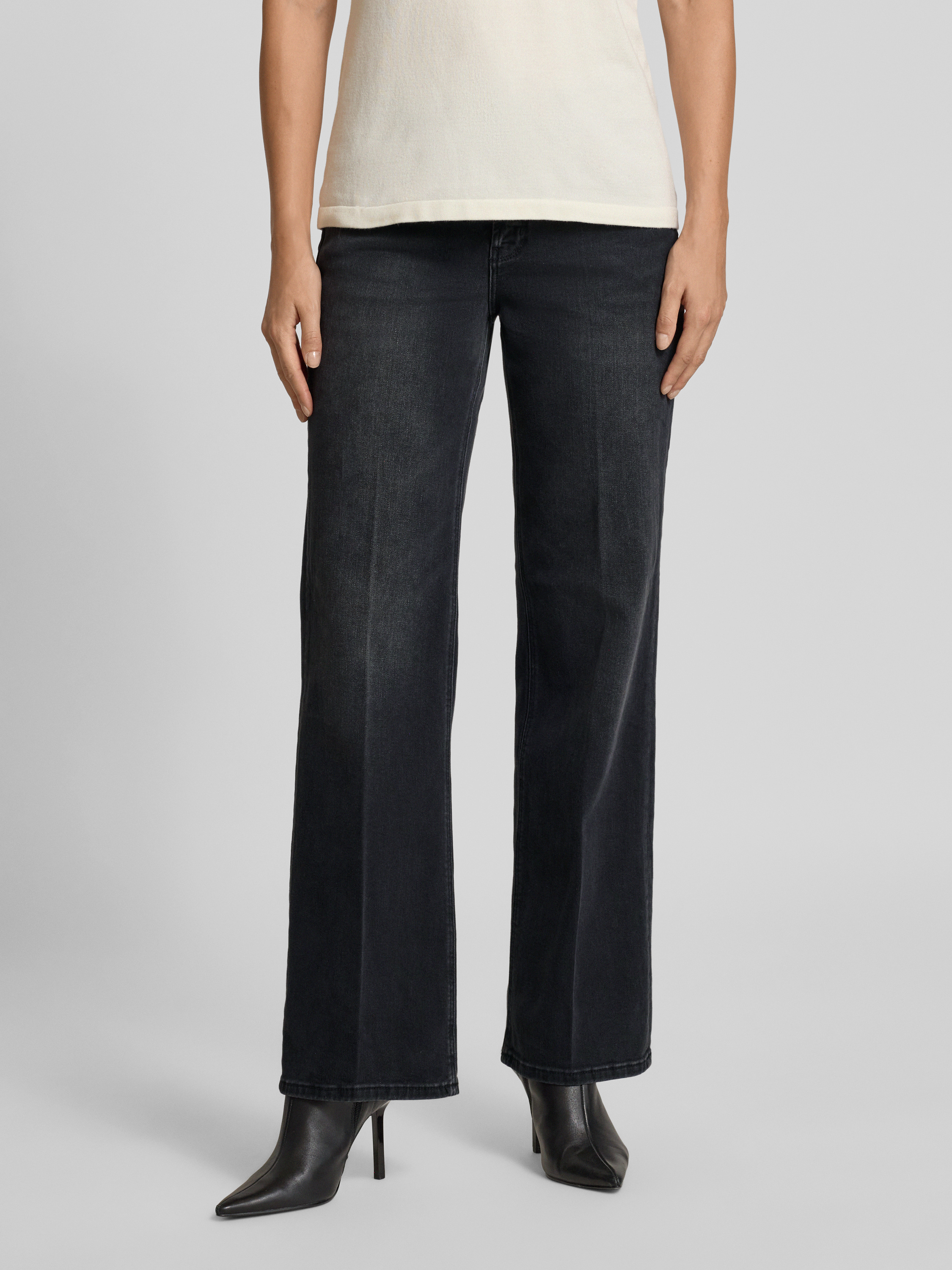 Straight leg jeans met knoop- en ritssluiting, model 'Carie' in zwart
