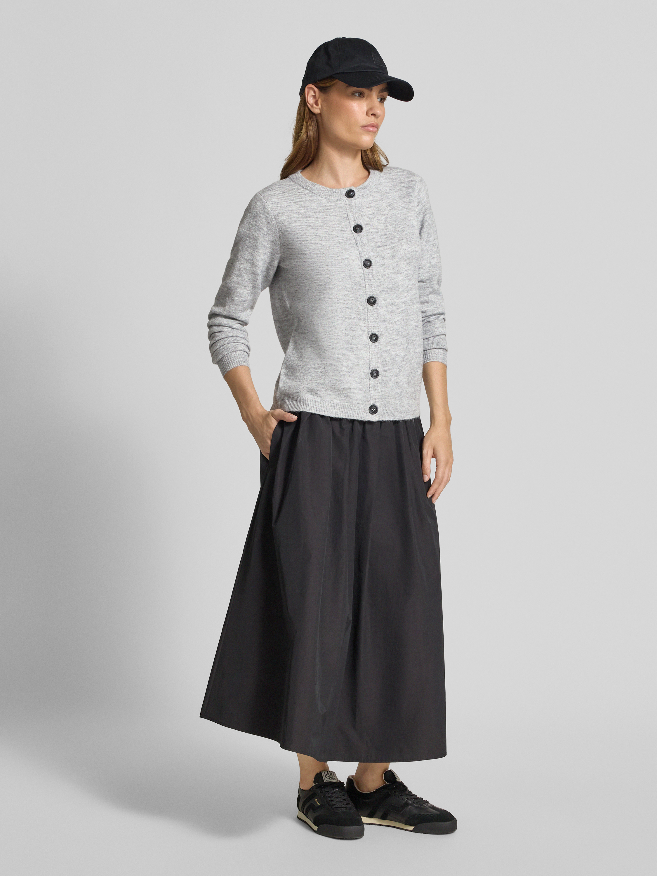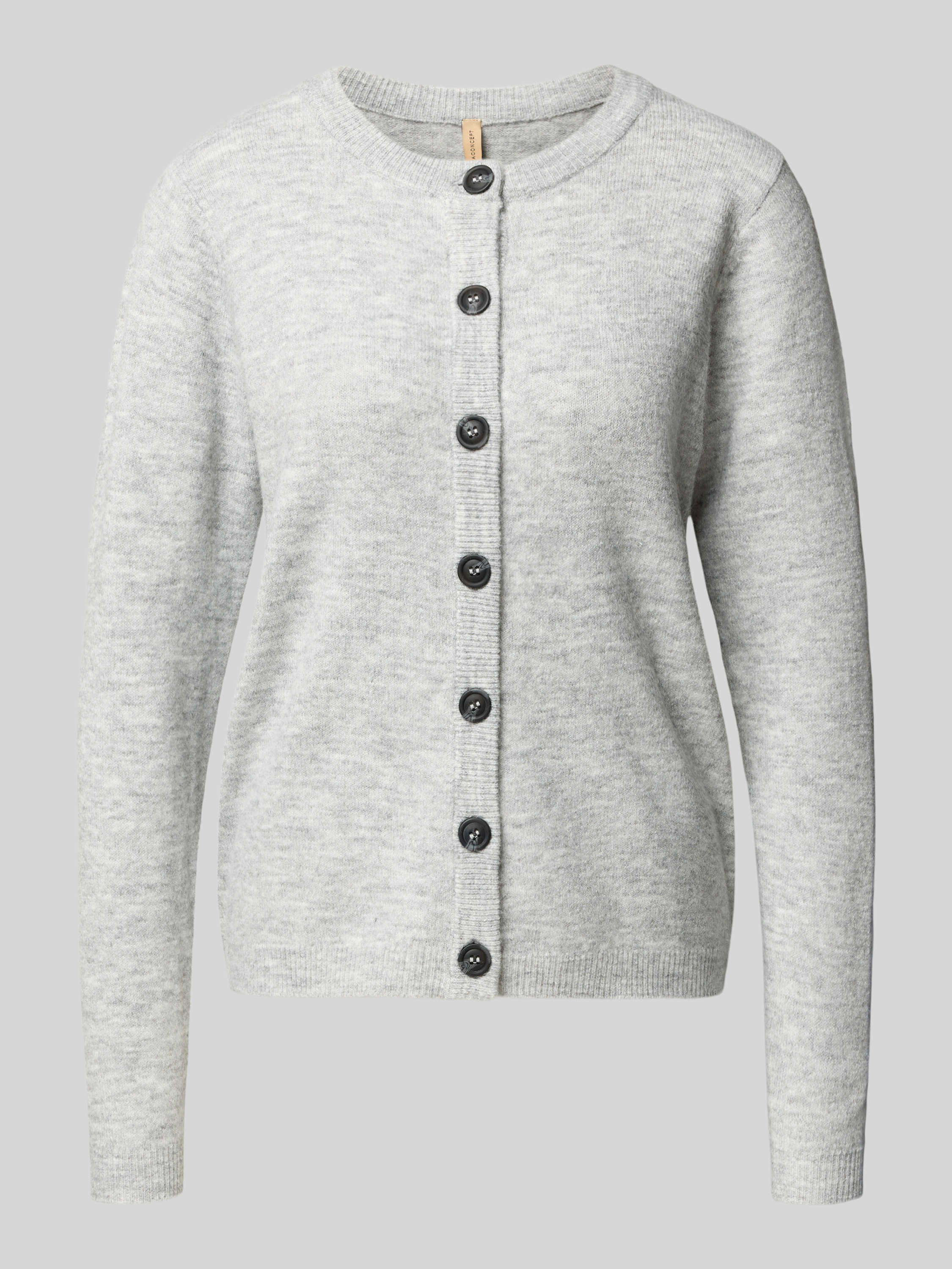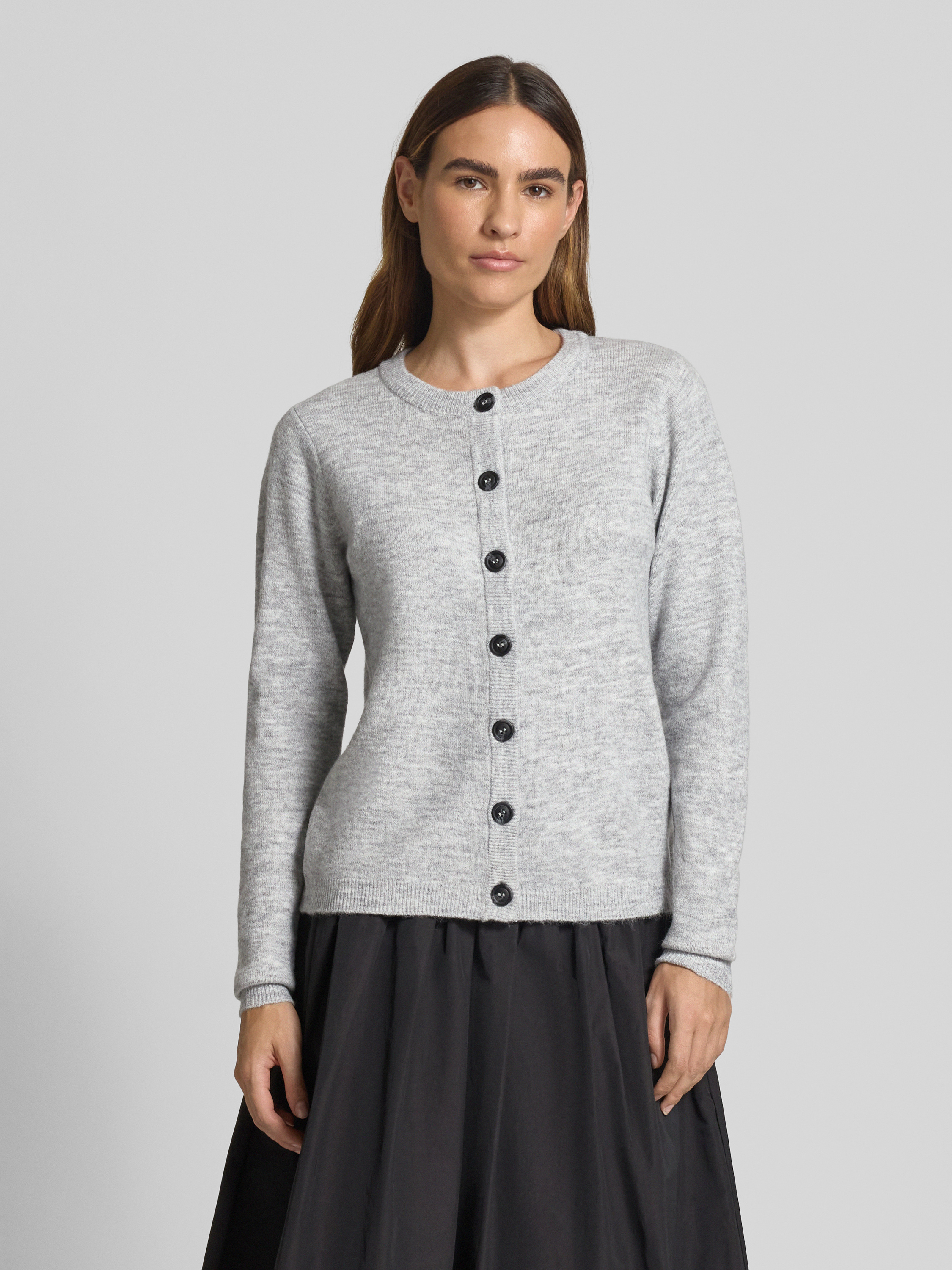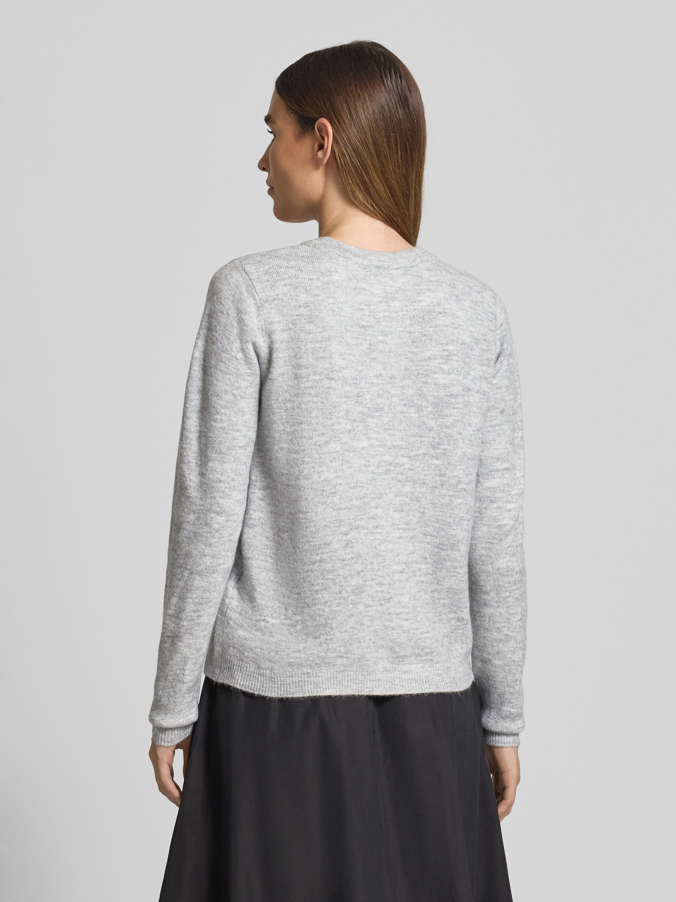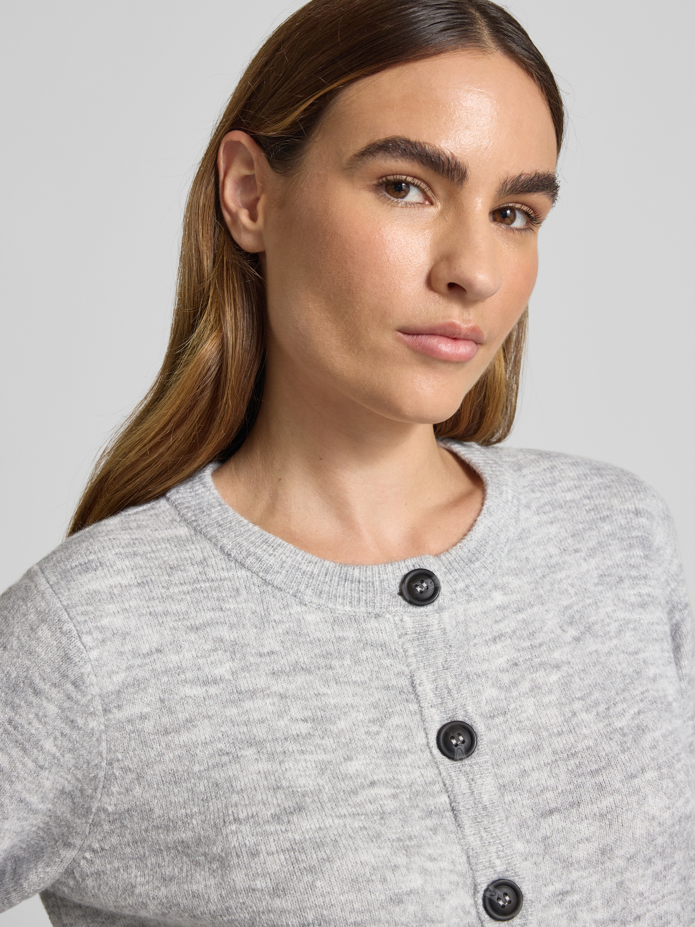 Gebreid jack met ronde hals, model 'ORLEAN' in lichtgrijs gemêleerd