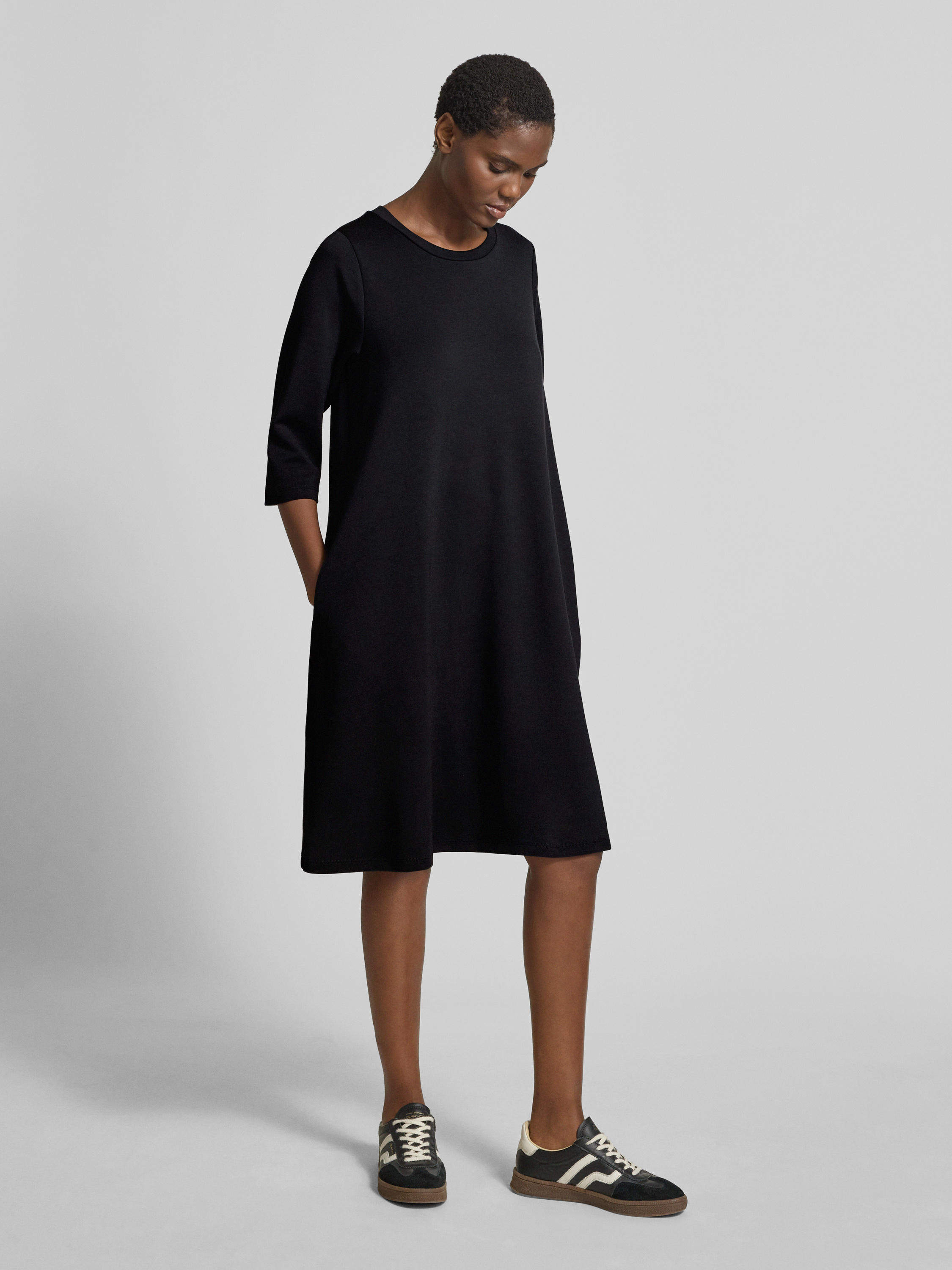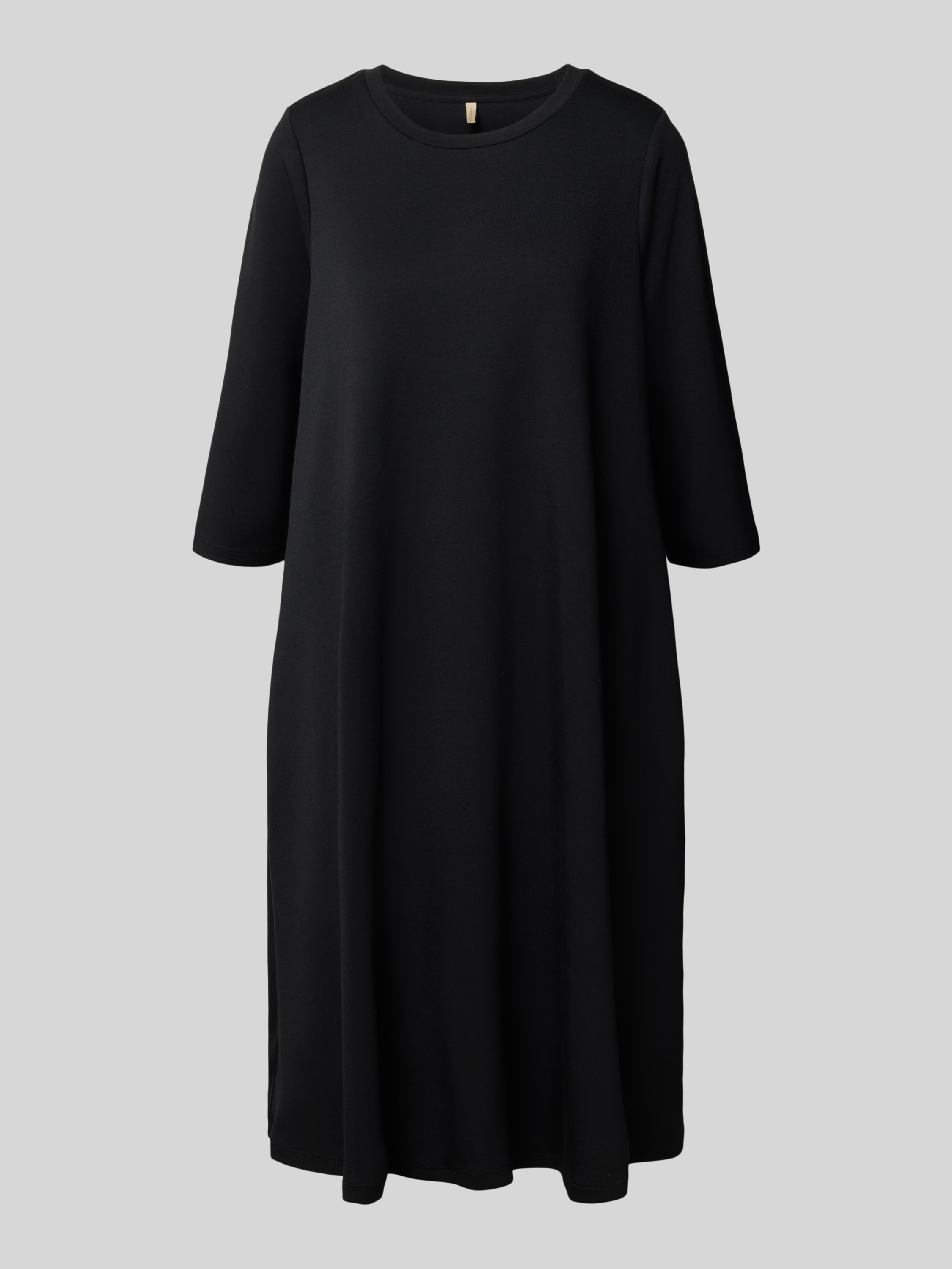 Knielange jurk met ronde hals, model 'BANU' in zwart