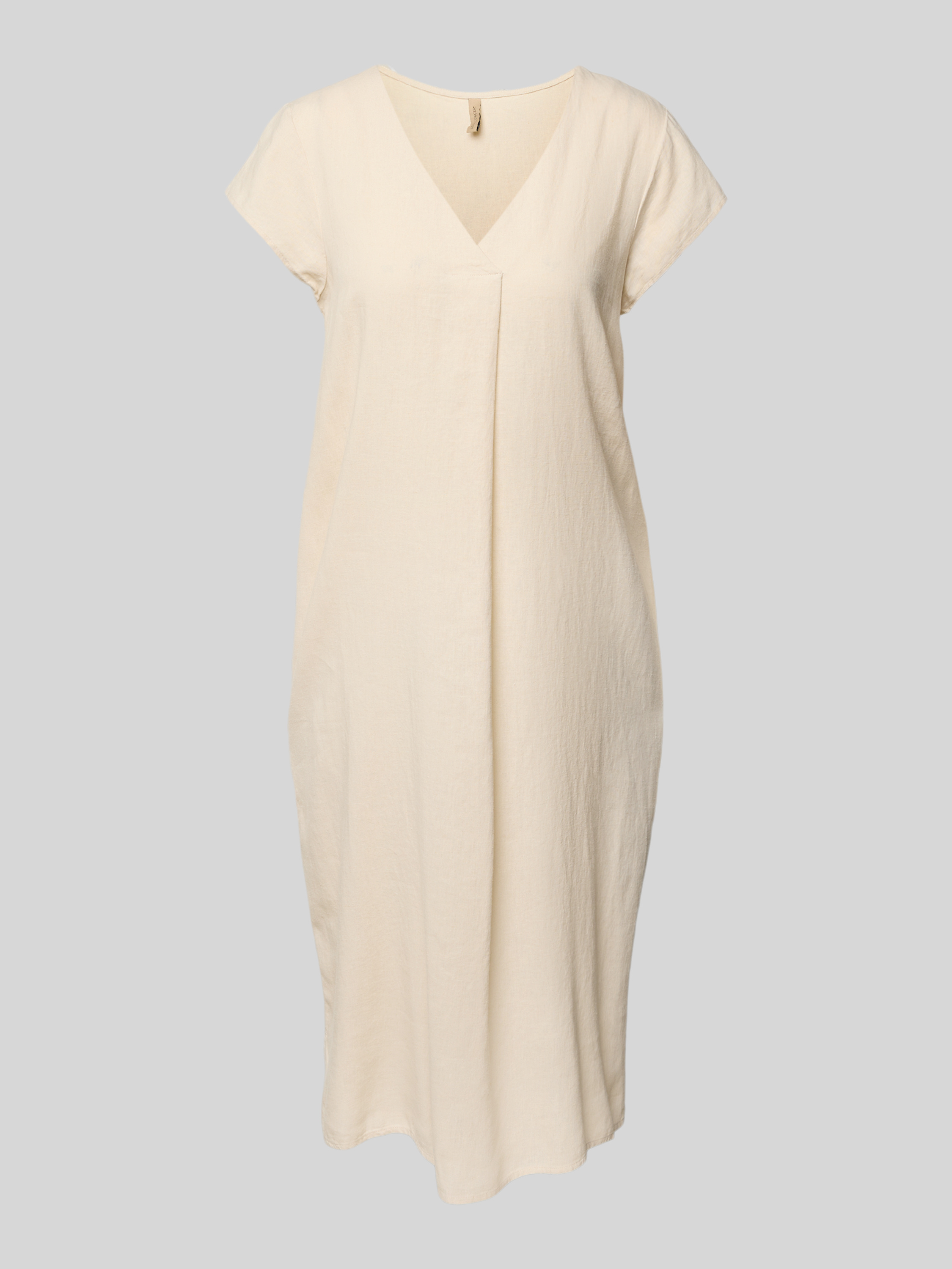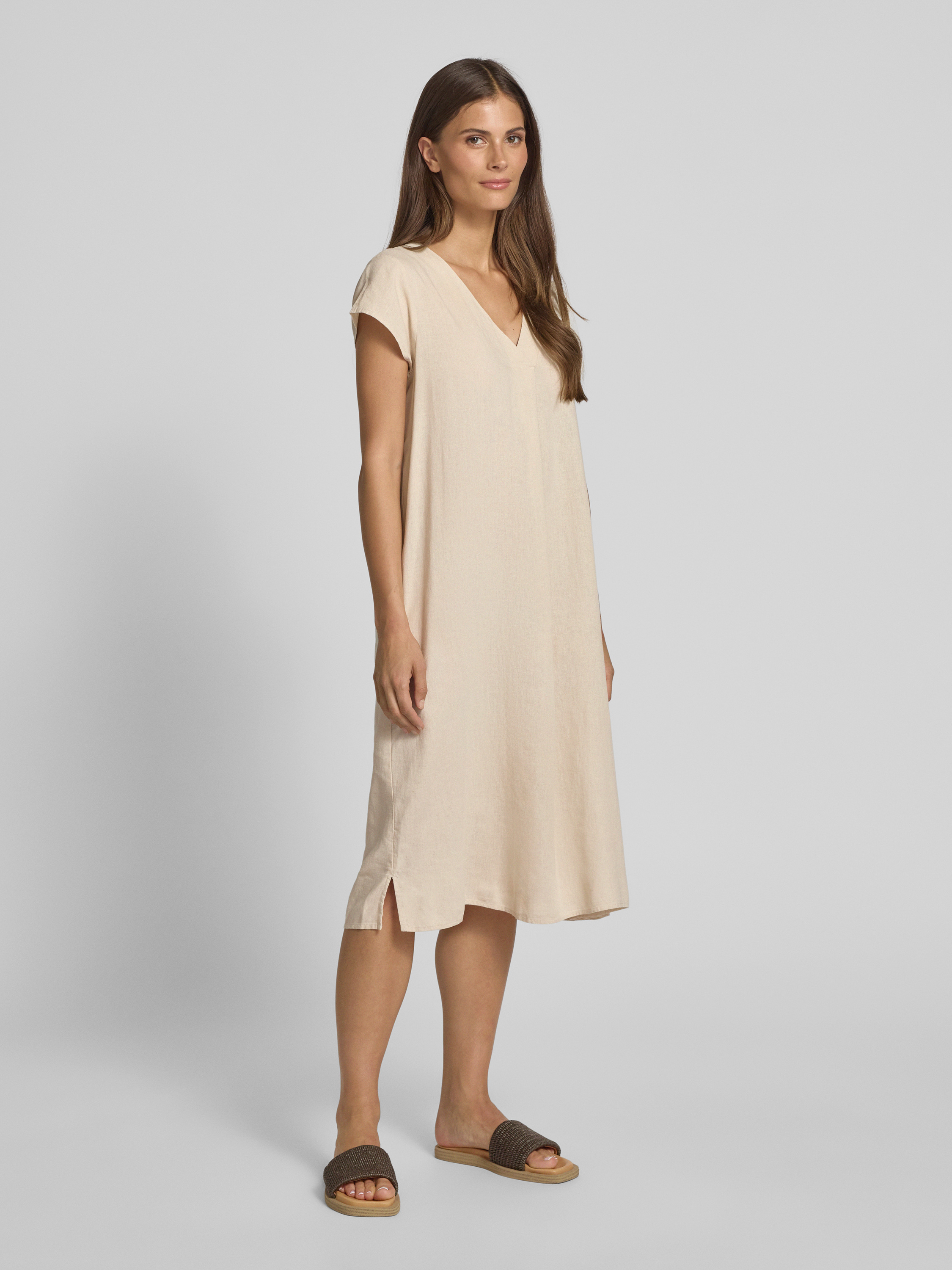 Knielange jurk van een mix van linnen en viscose, model 'Ina' in zand