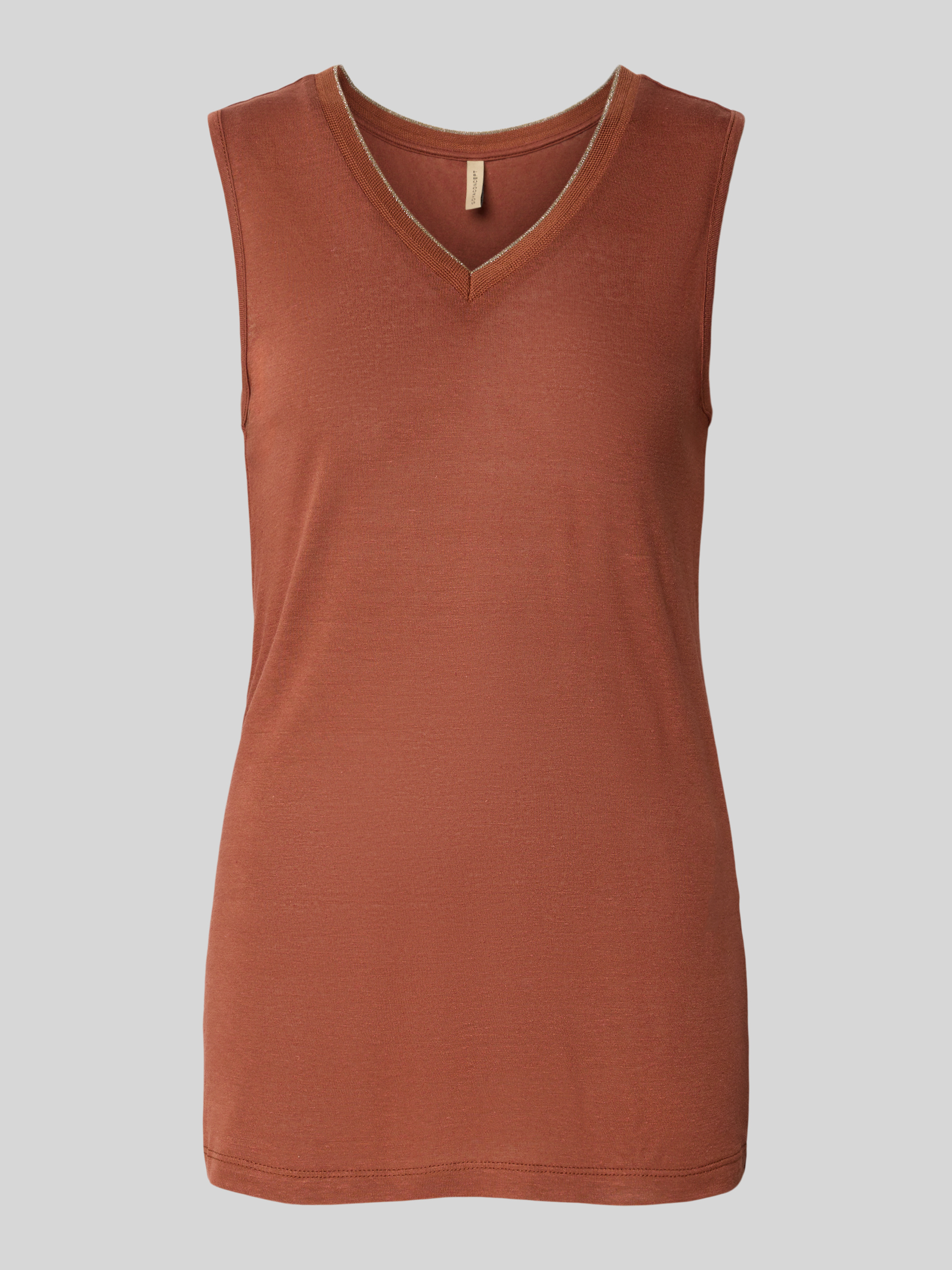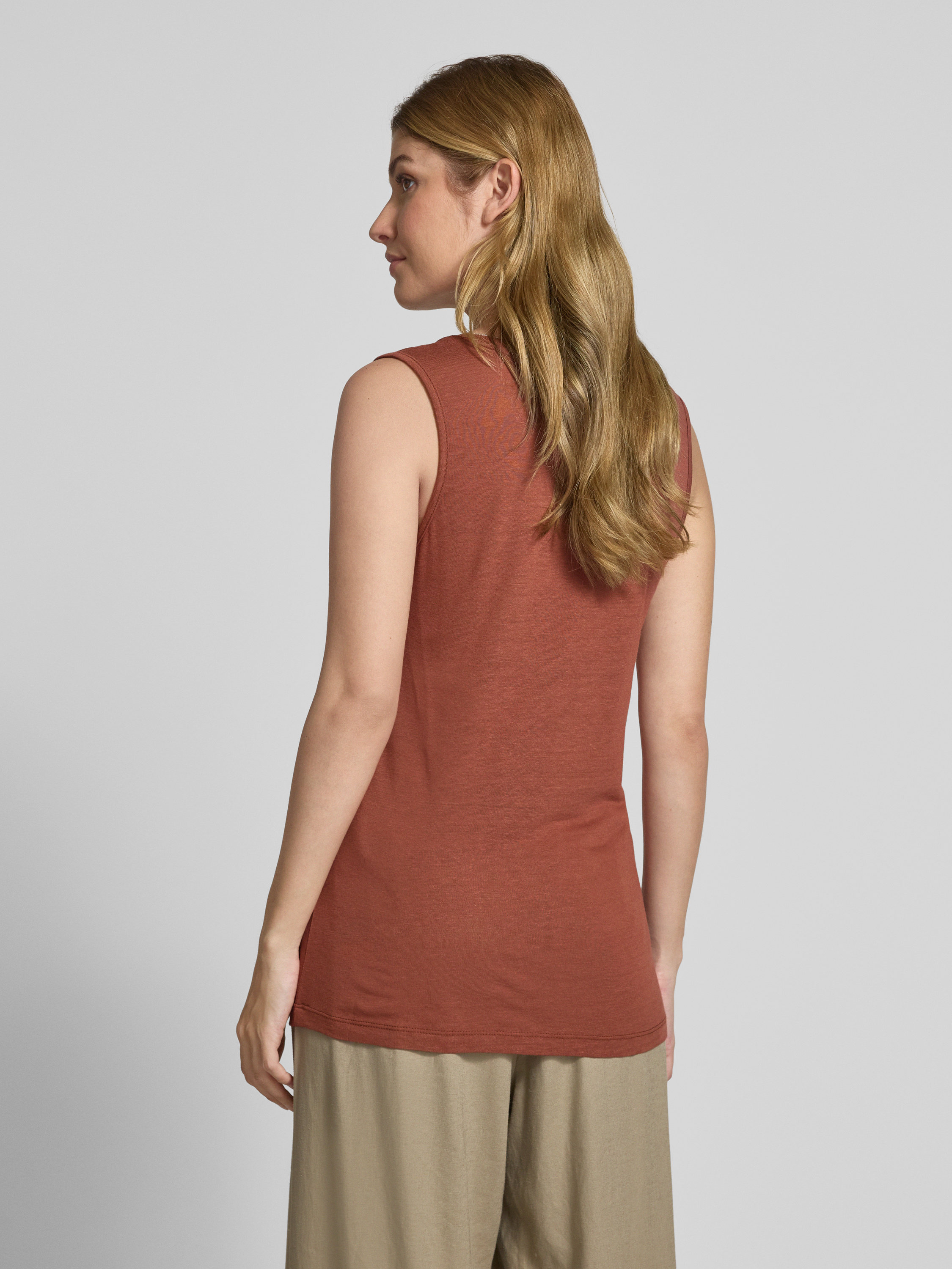 Linnen top met V-hals, model 'EMEL' in roestrood
