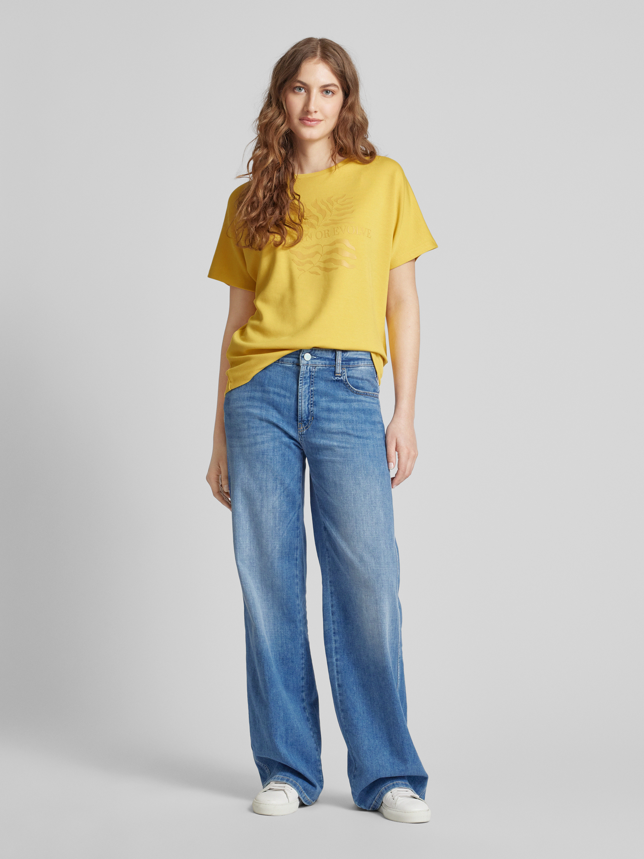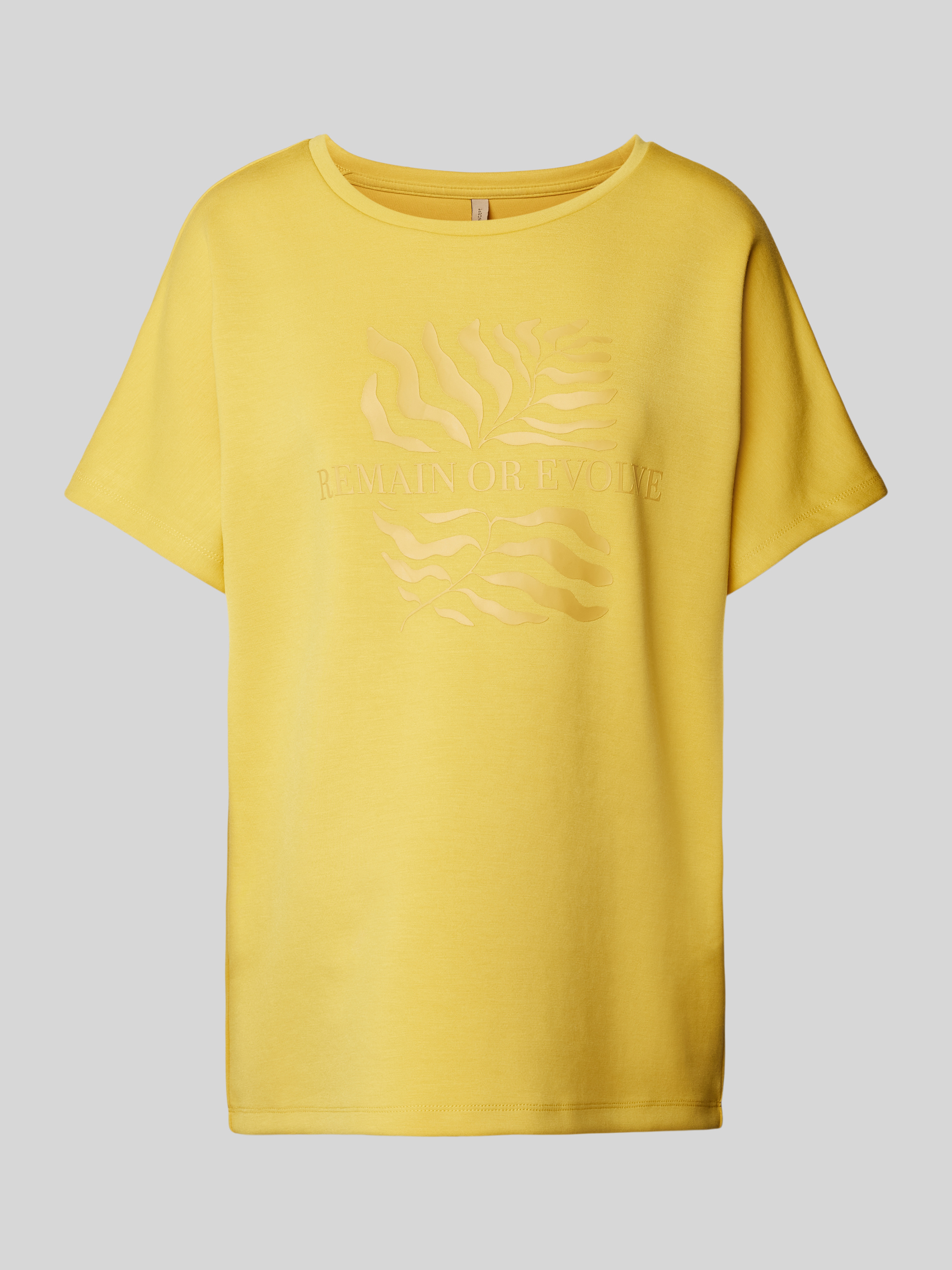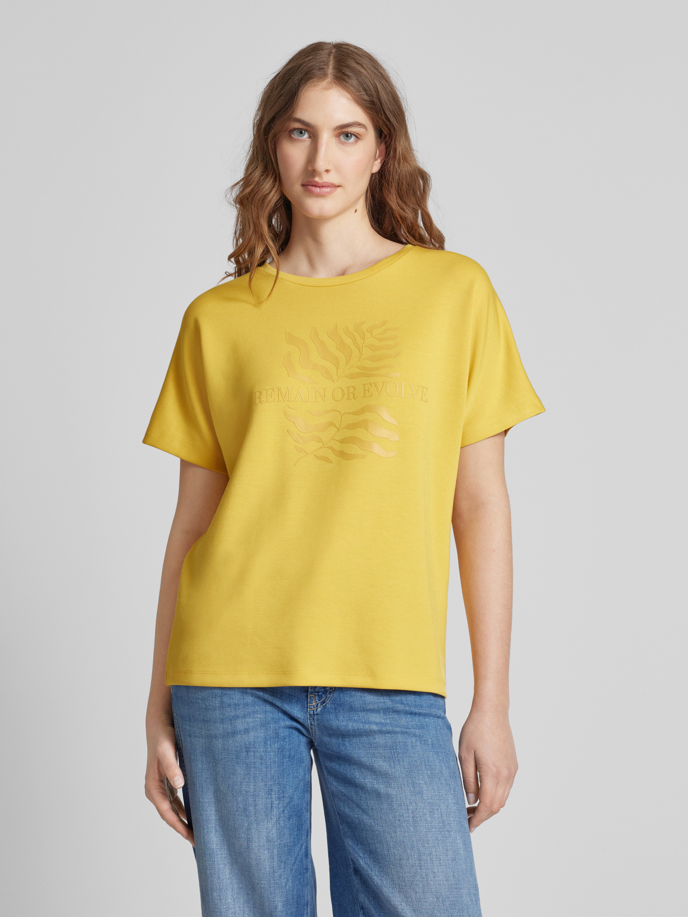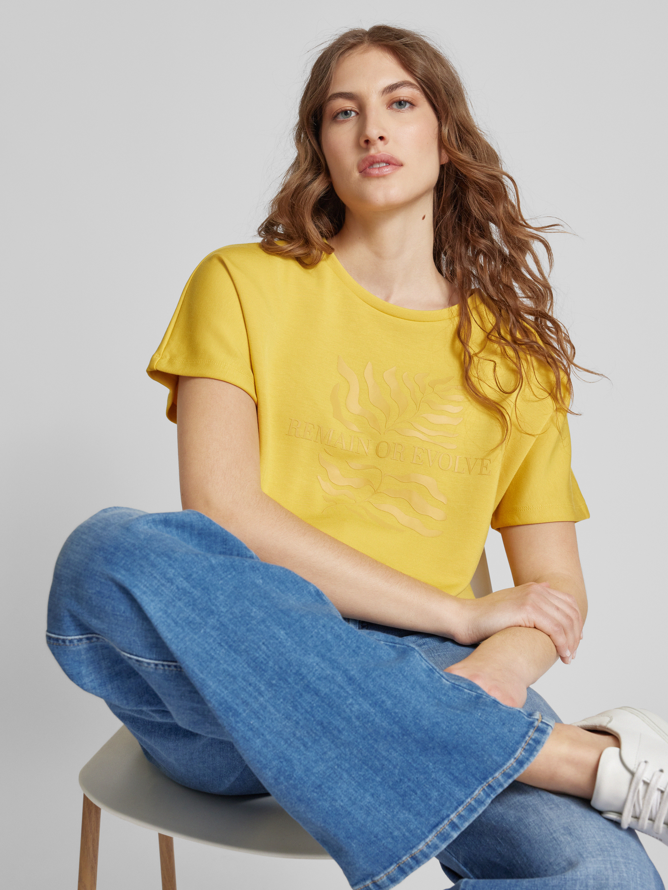 T-shirt met motiefprint, model 'Banu' in mosterdgeel