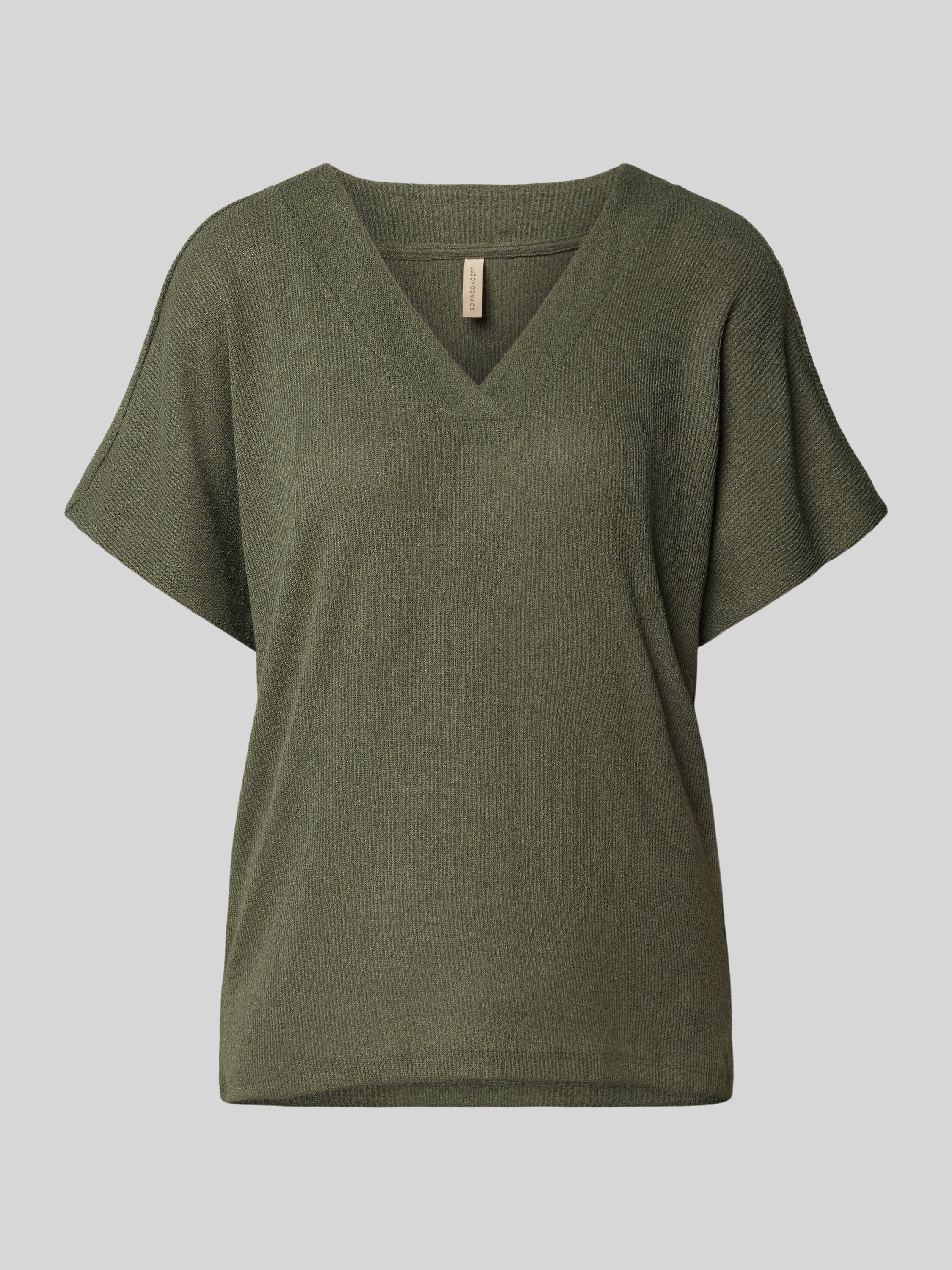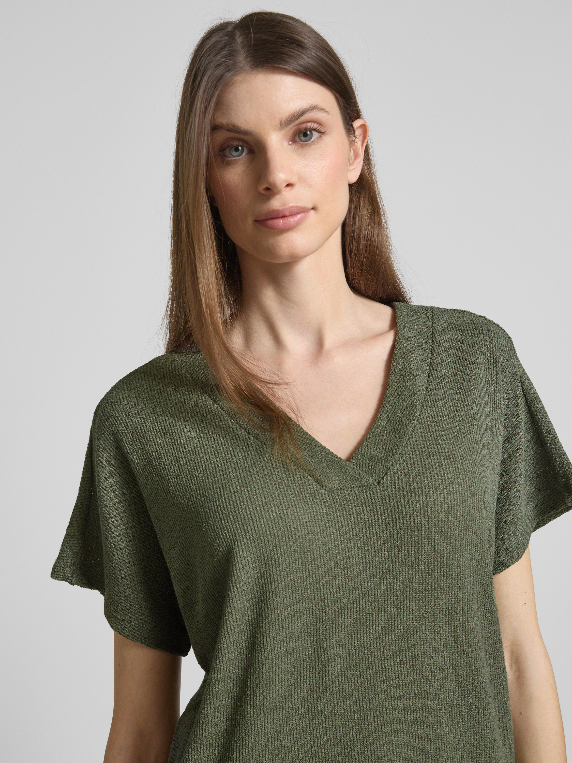 T-shirt met V-hals, model 'Delia' in donkergroen