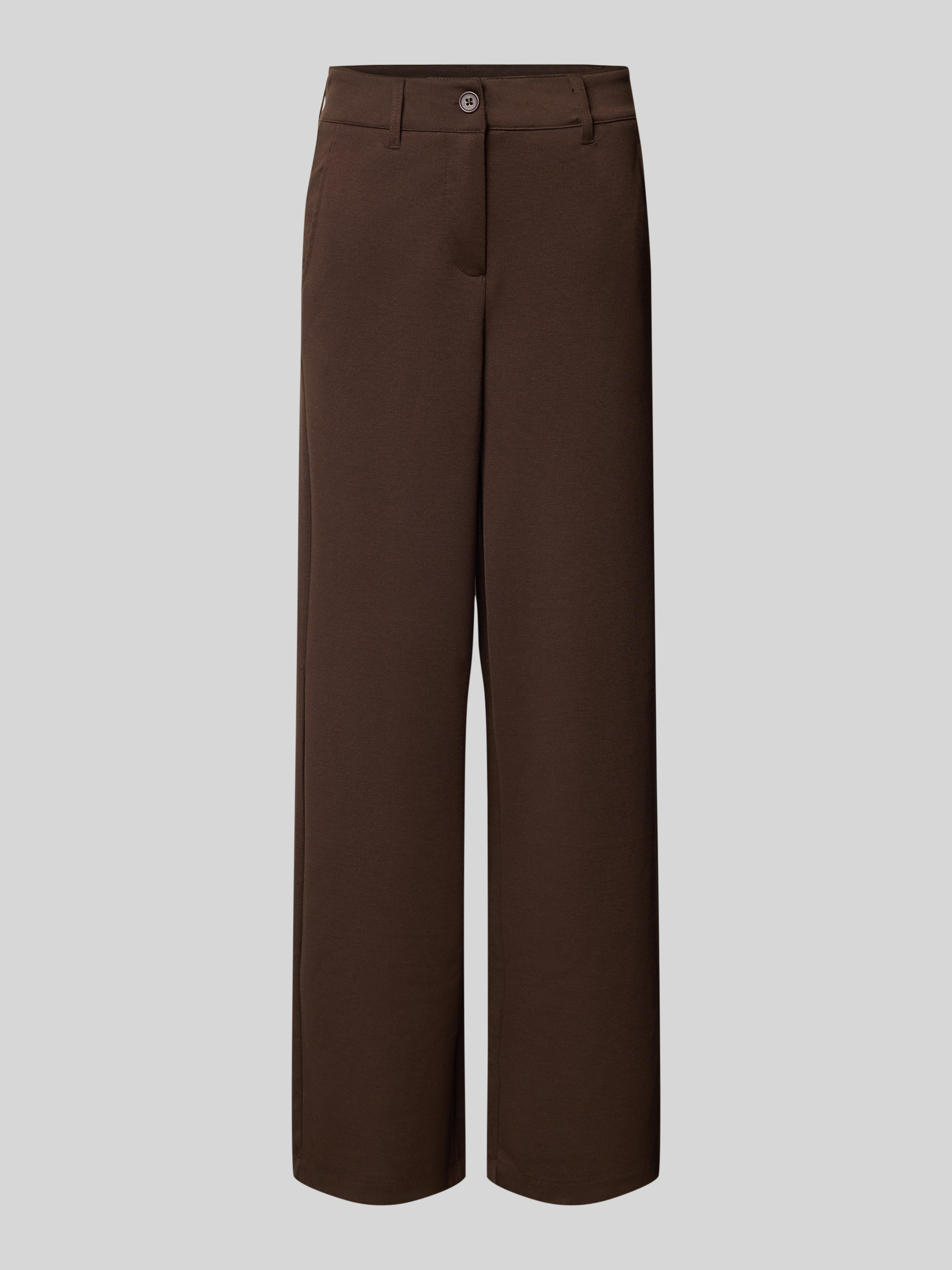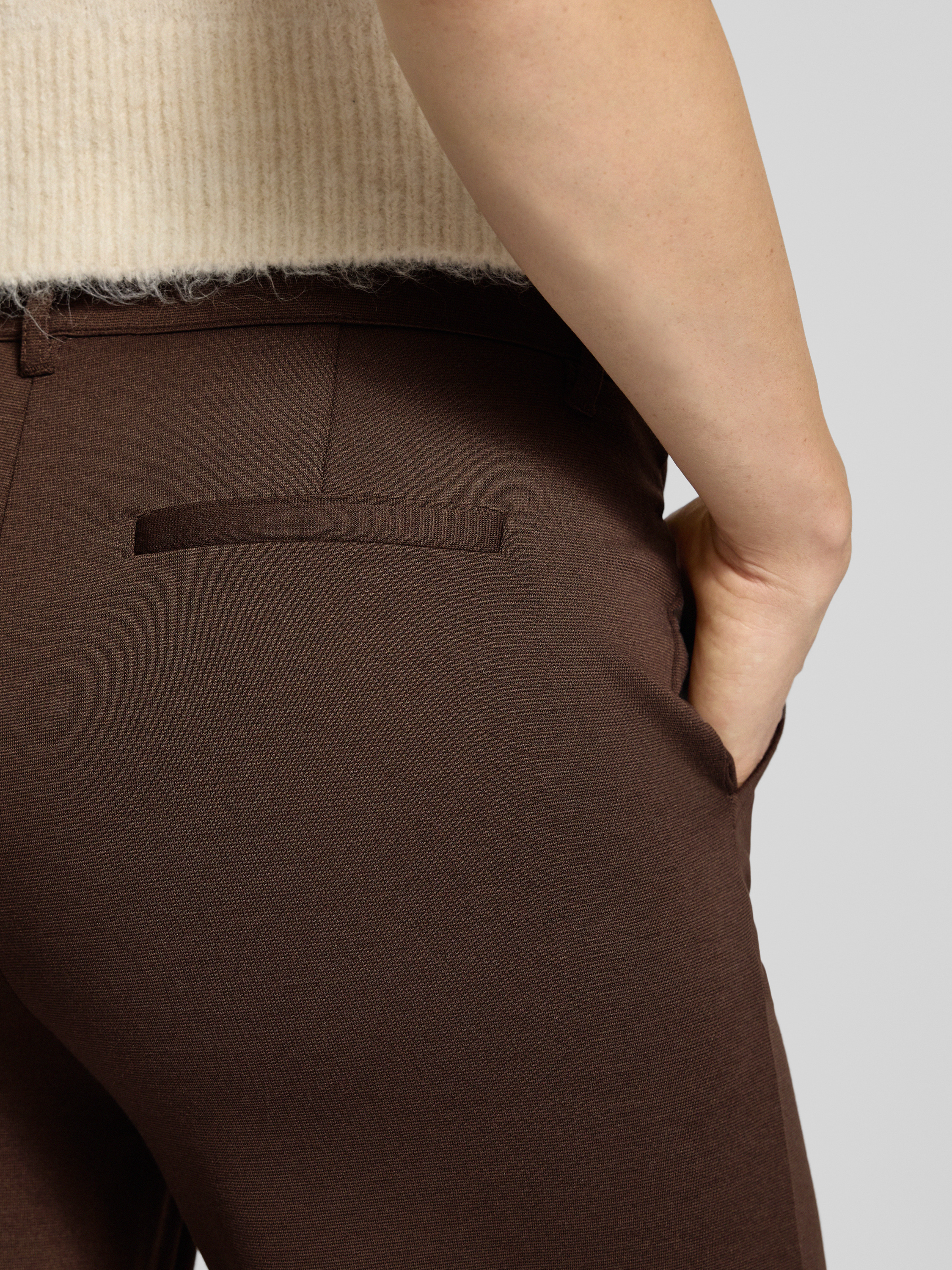 Wide leg stoffen broek met paspelzak, model 'DANIELA' in chocoladebruin