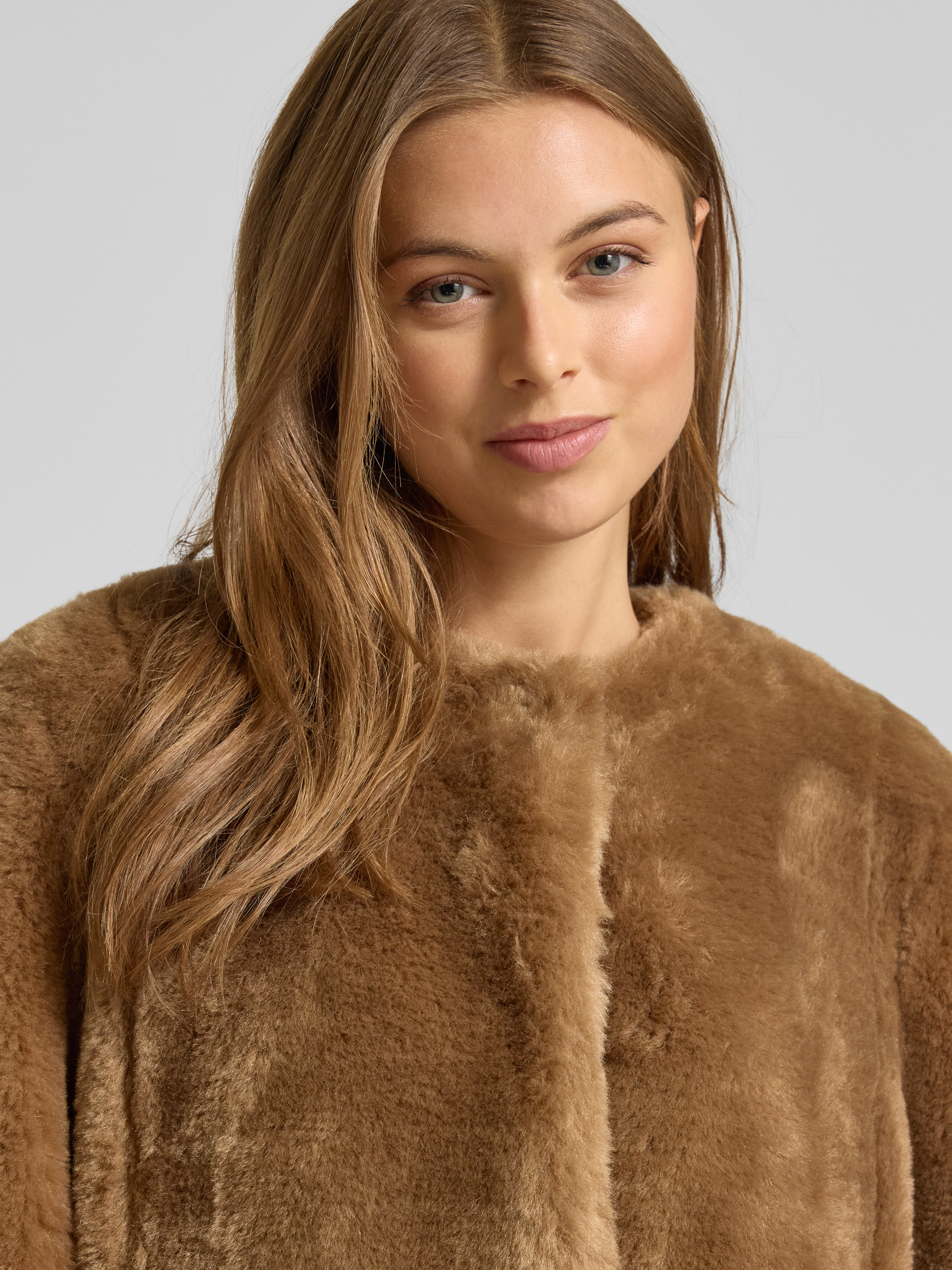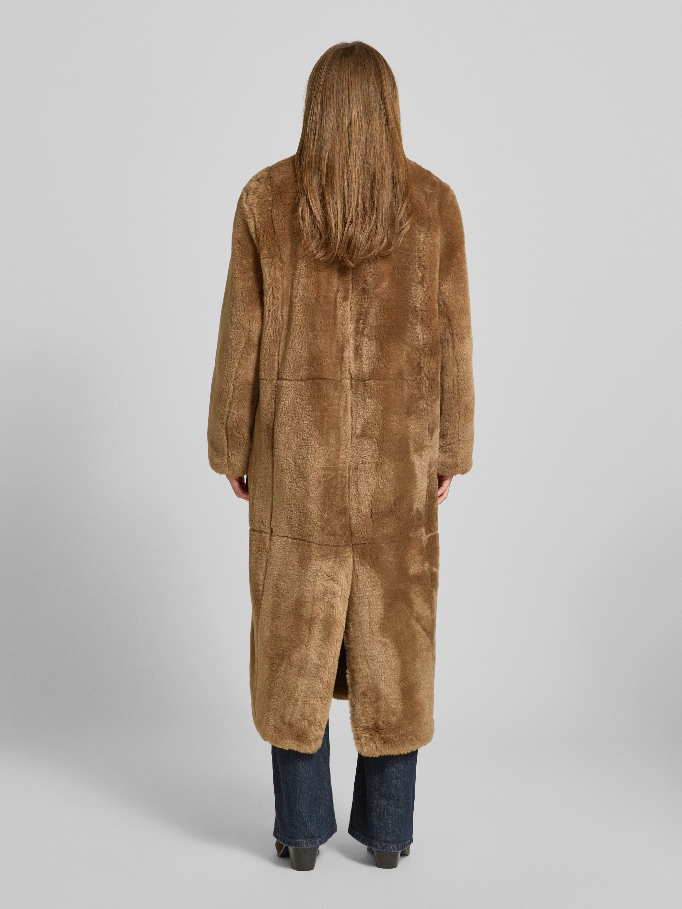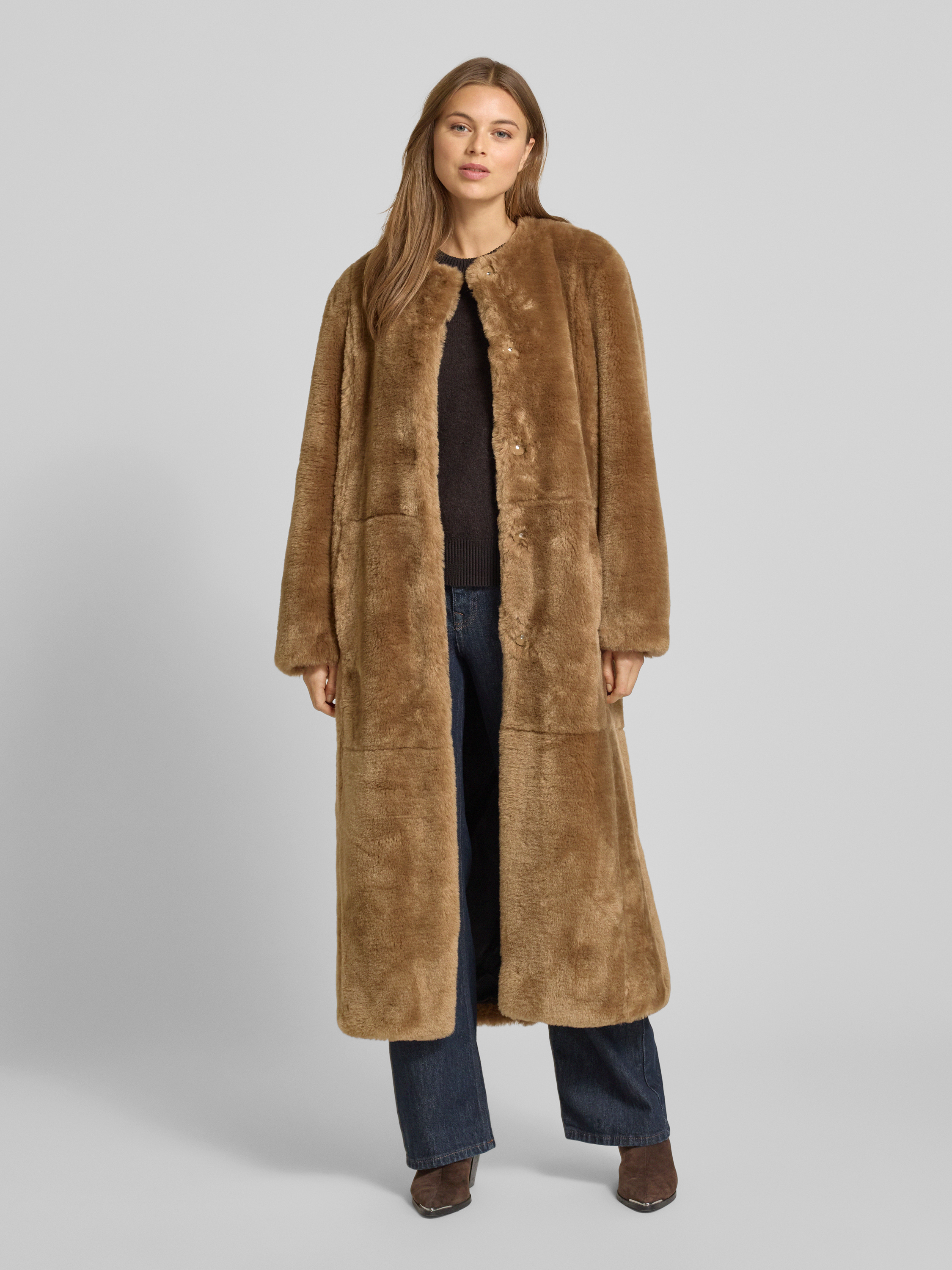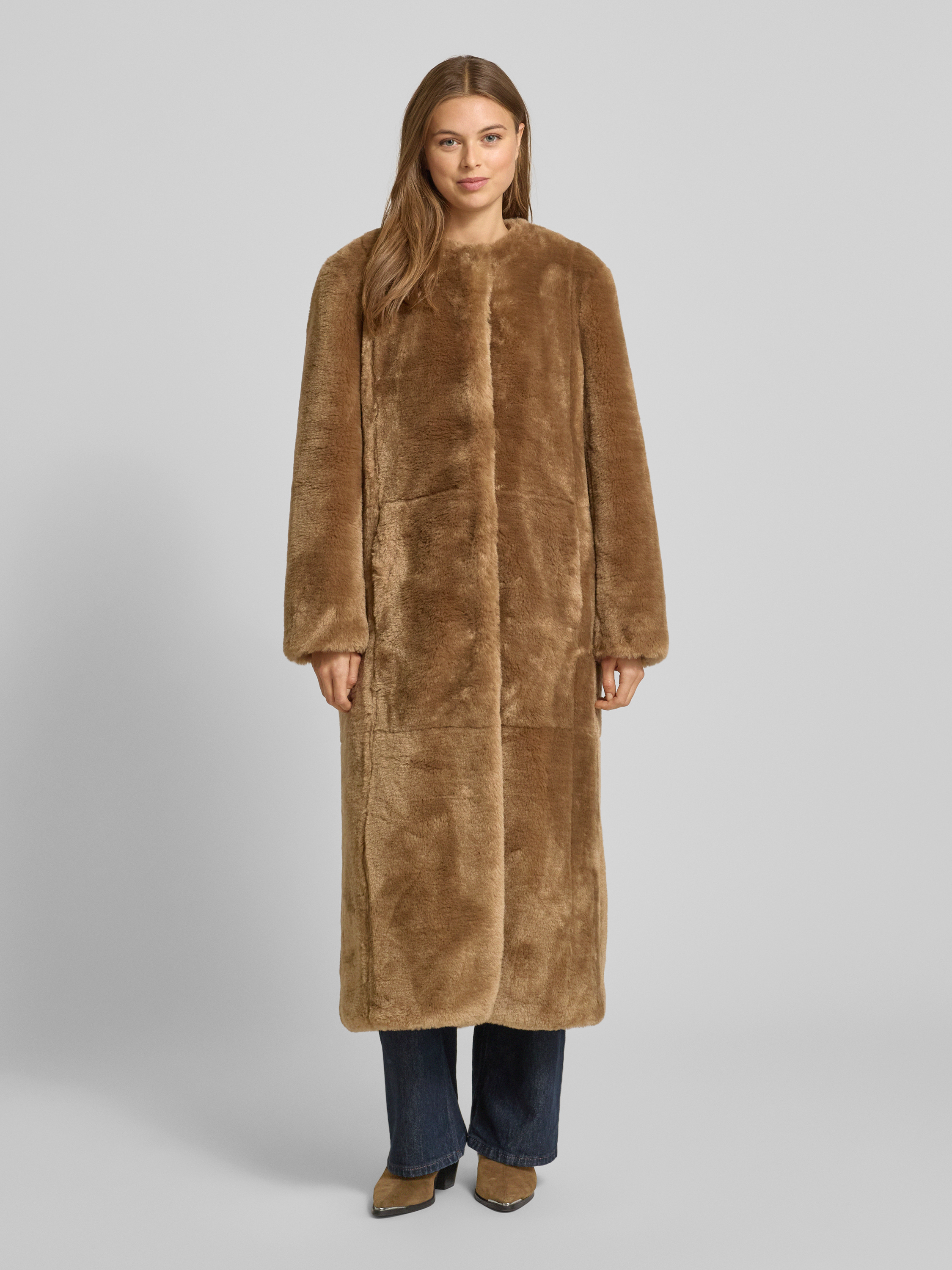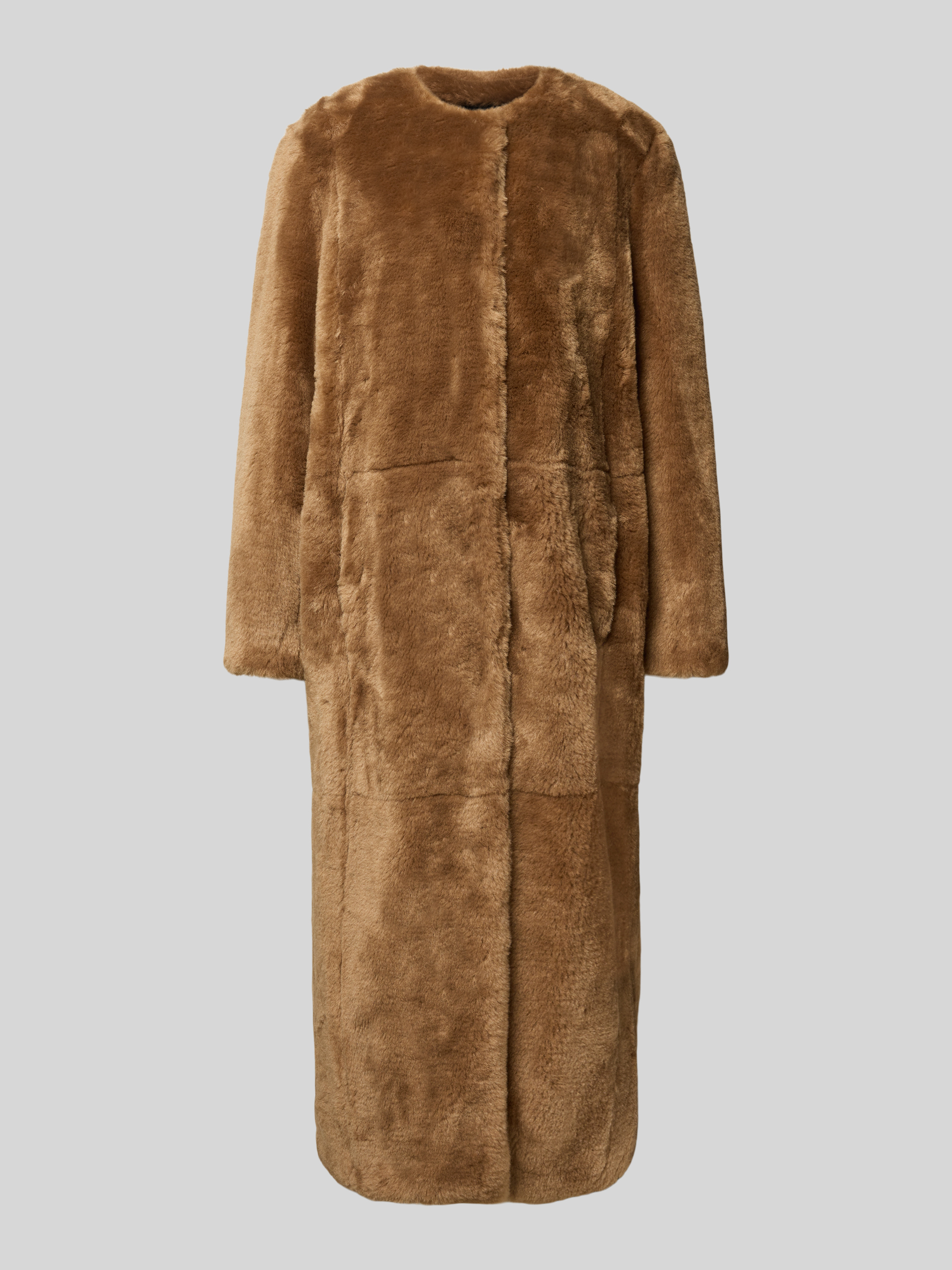 Lange jas van imitatiebont met ronde hals, model 'Gracelyn' in donkerbruin