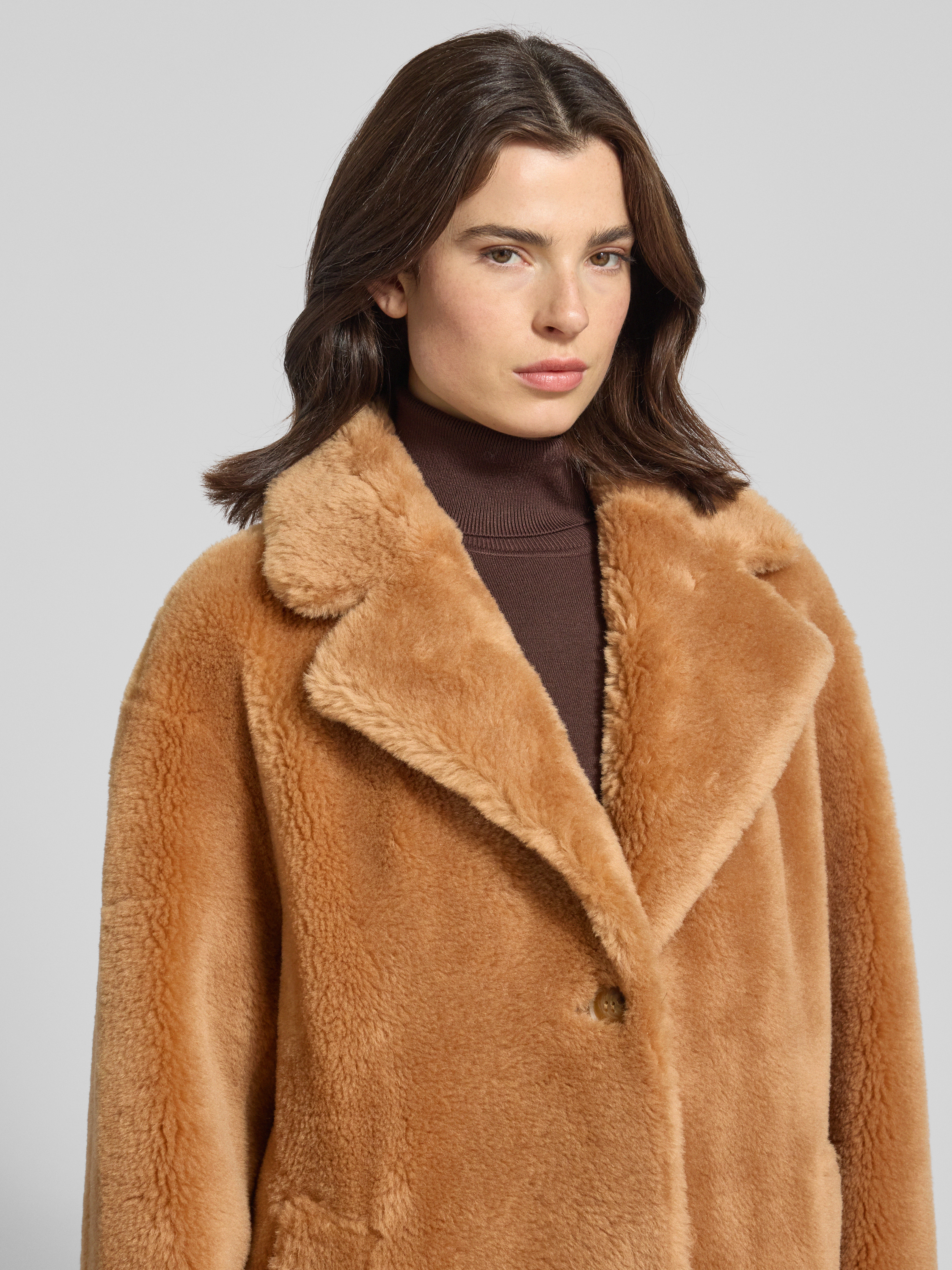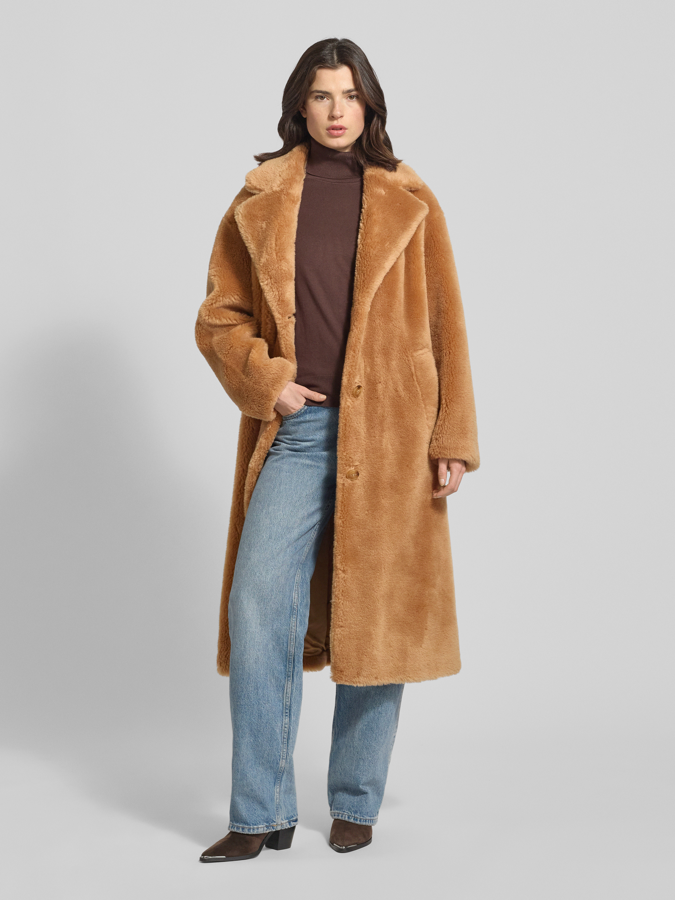 STAND STUDIOLange jas van imitatiebont, model 'Gabriella' in beige