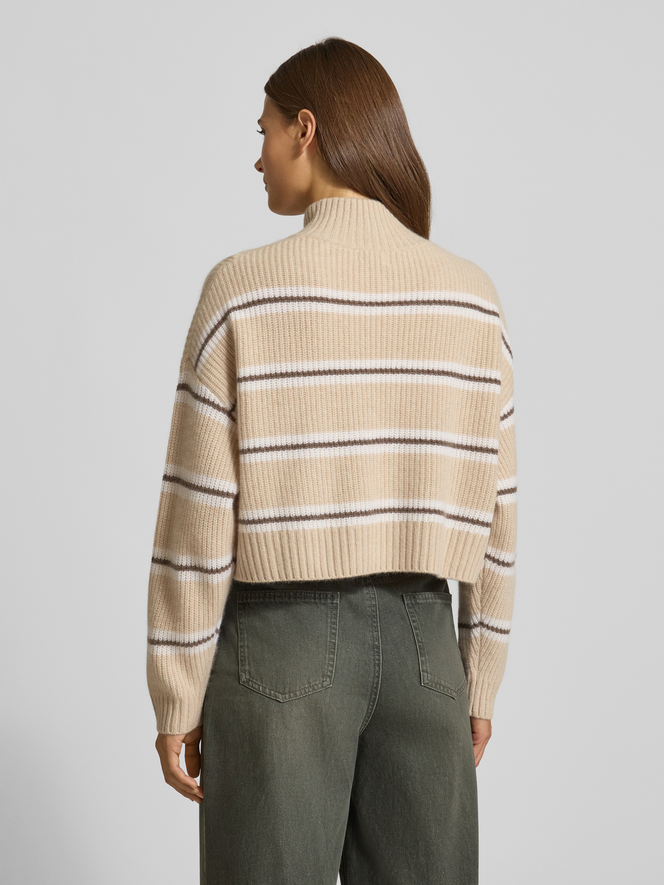Korte gebreide pullover van puur kasjmier in zand