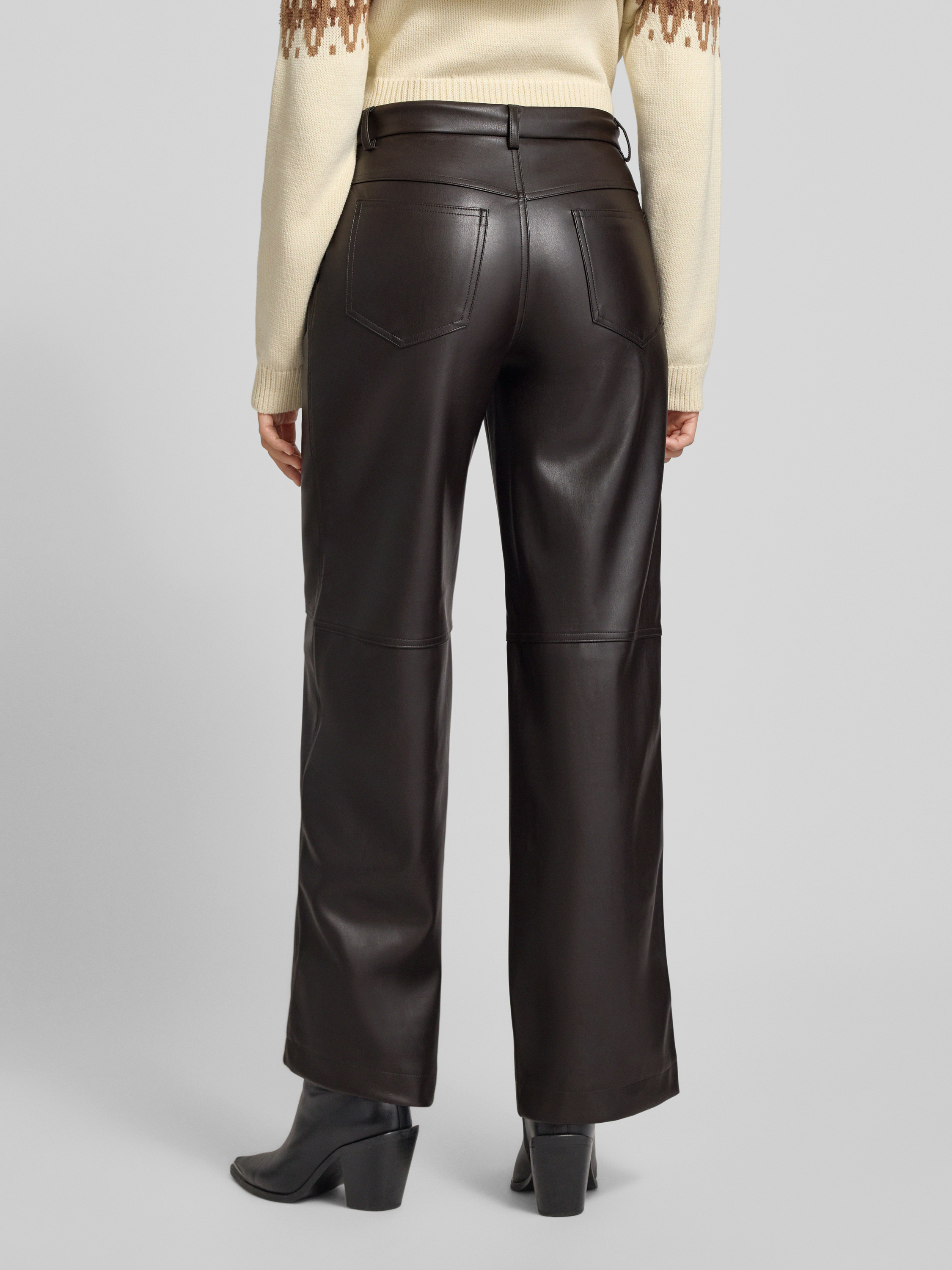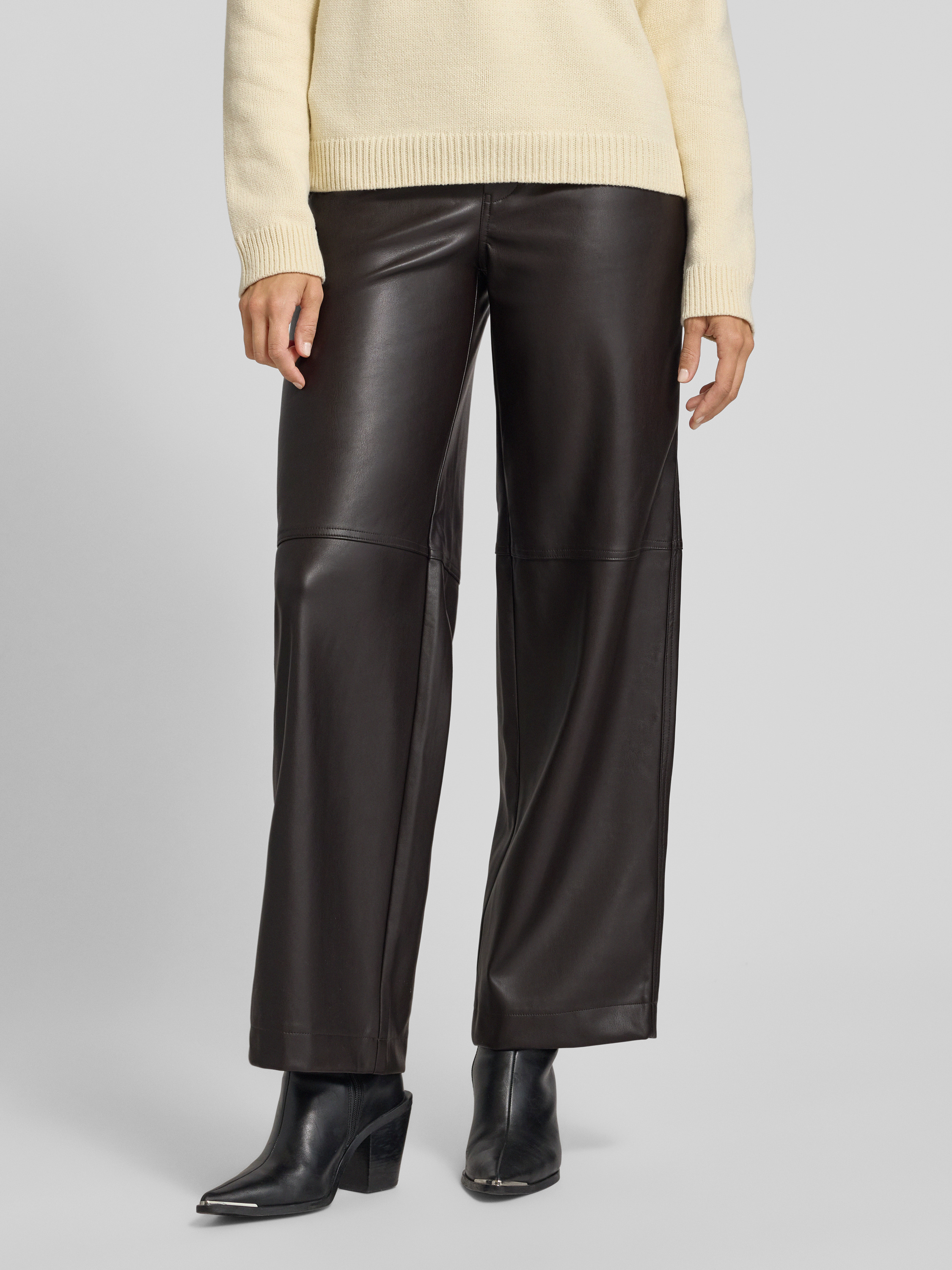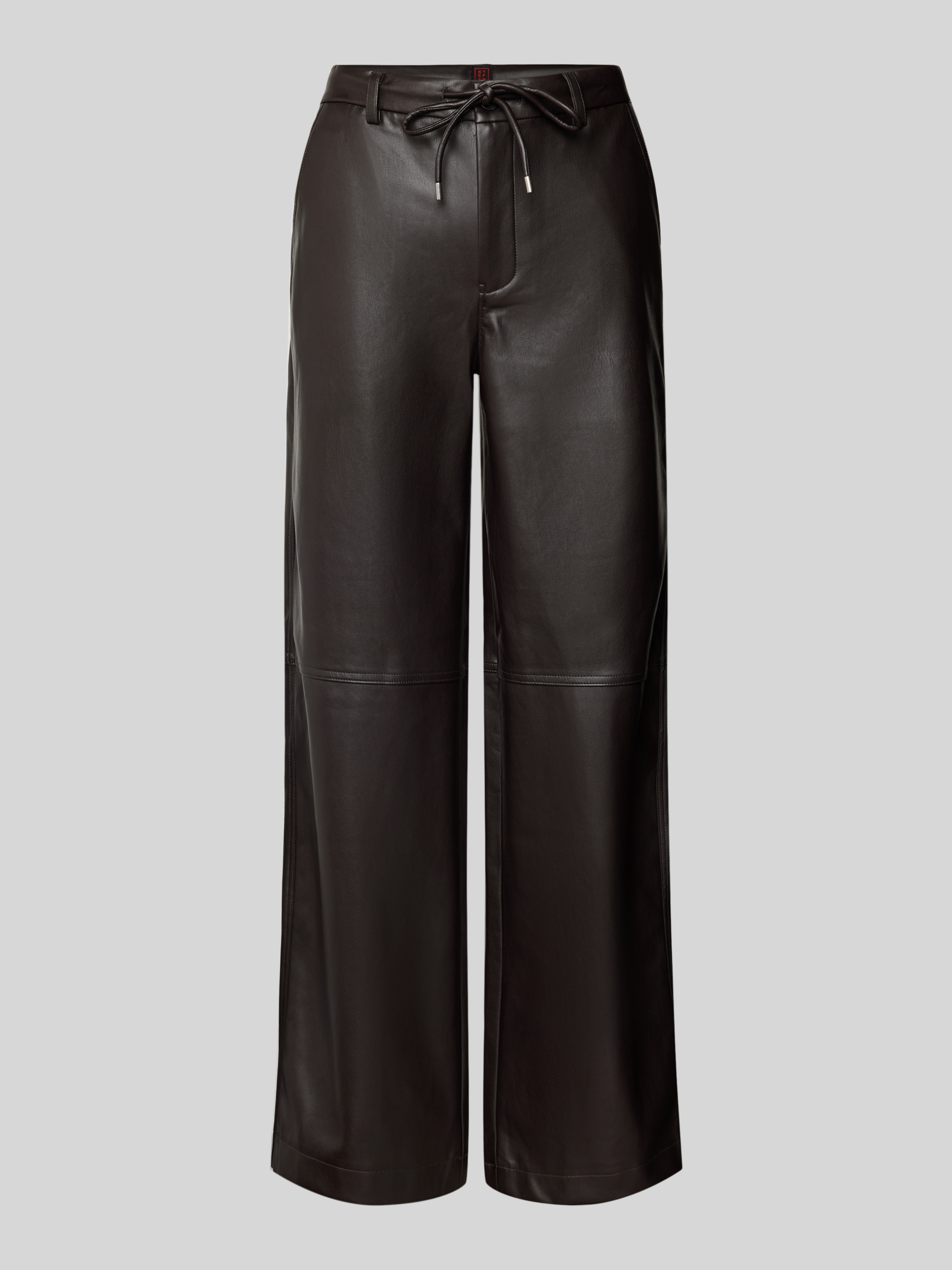 StefanelBroek van kunstleer met wijde pijpen in donkerbruin