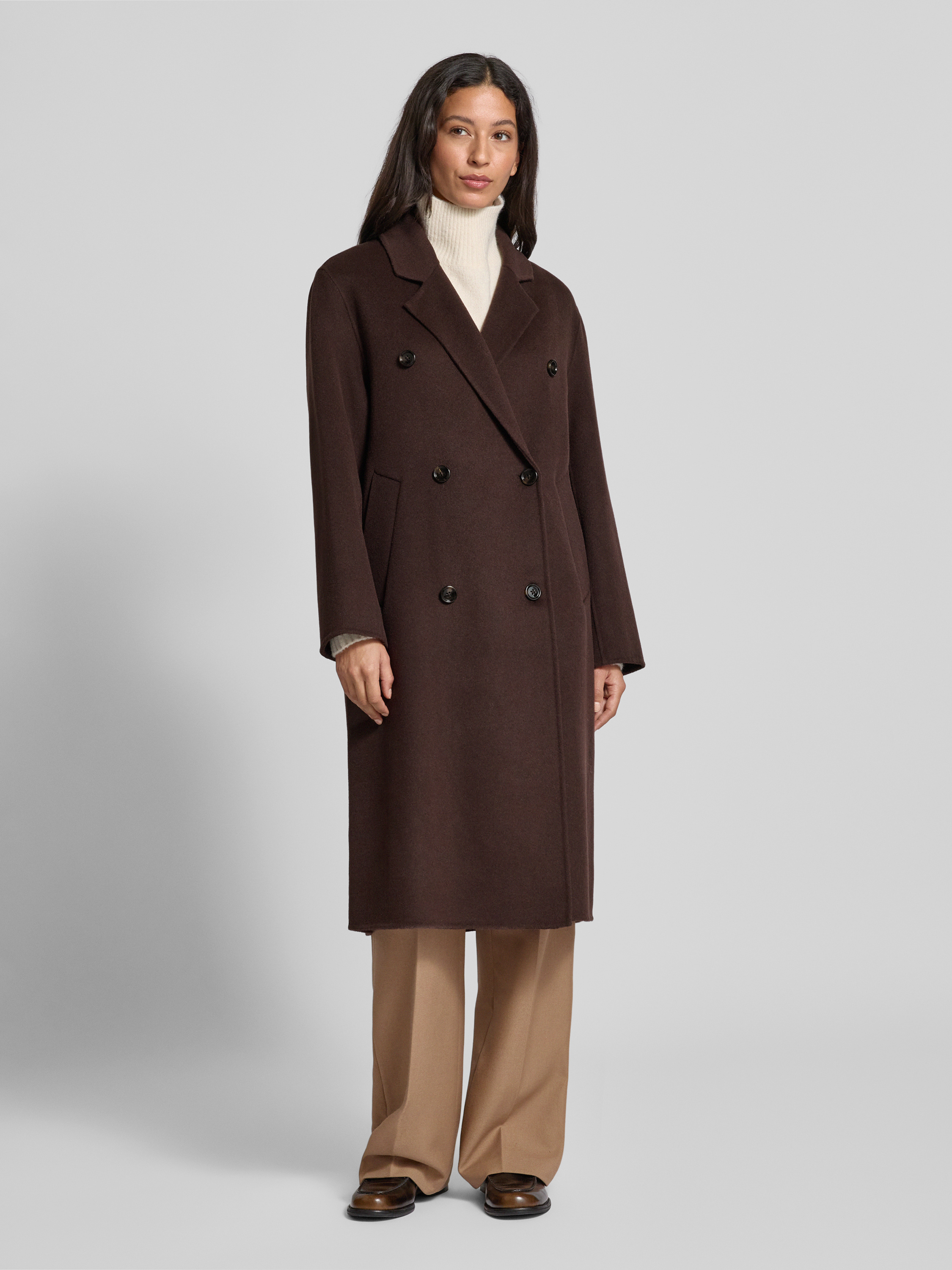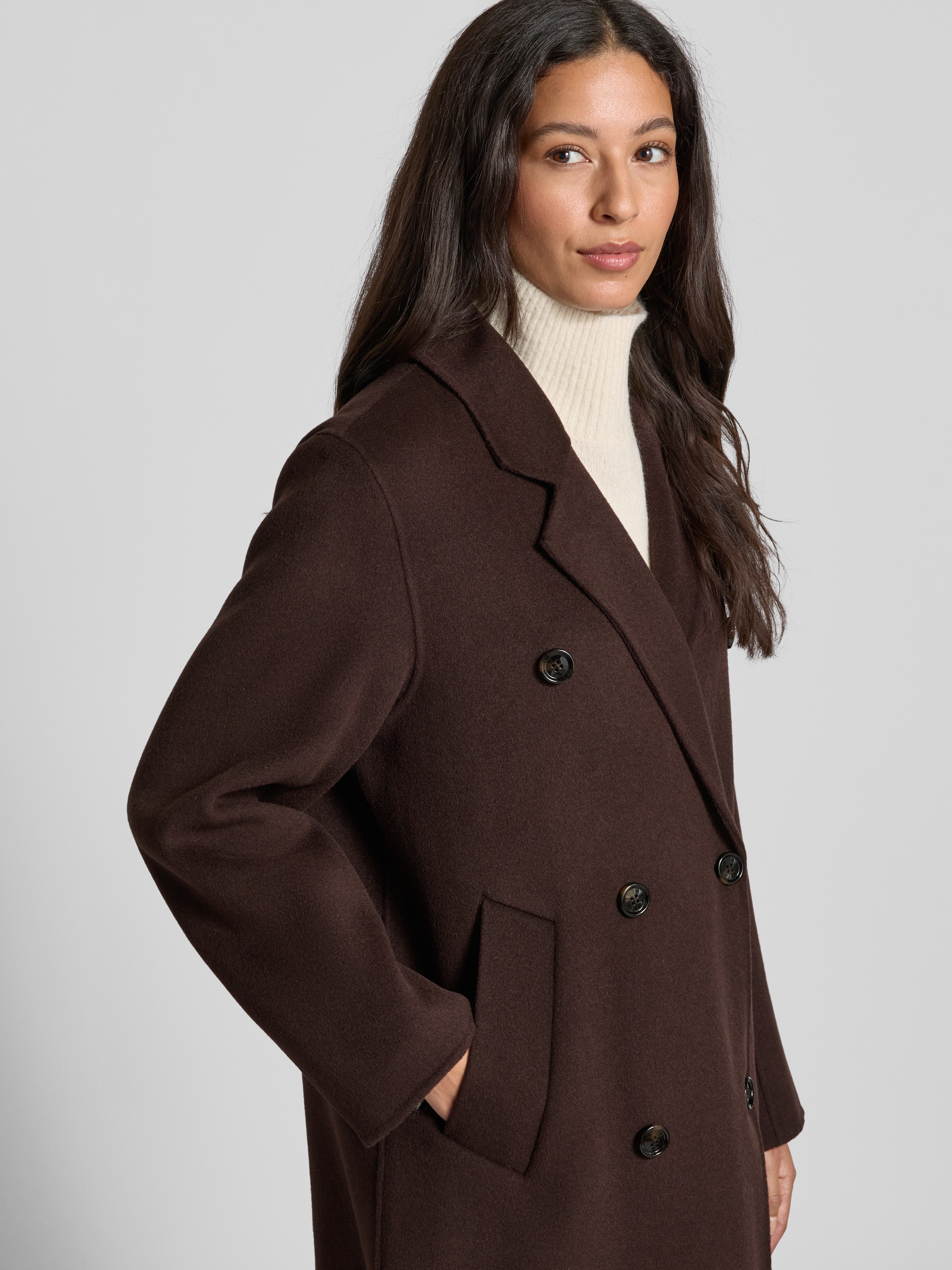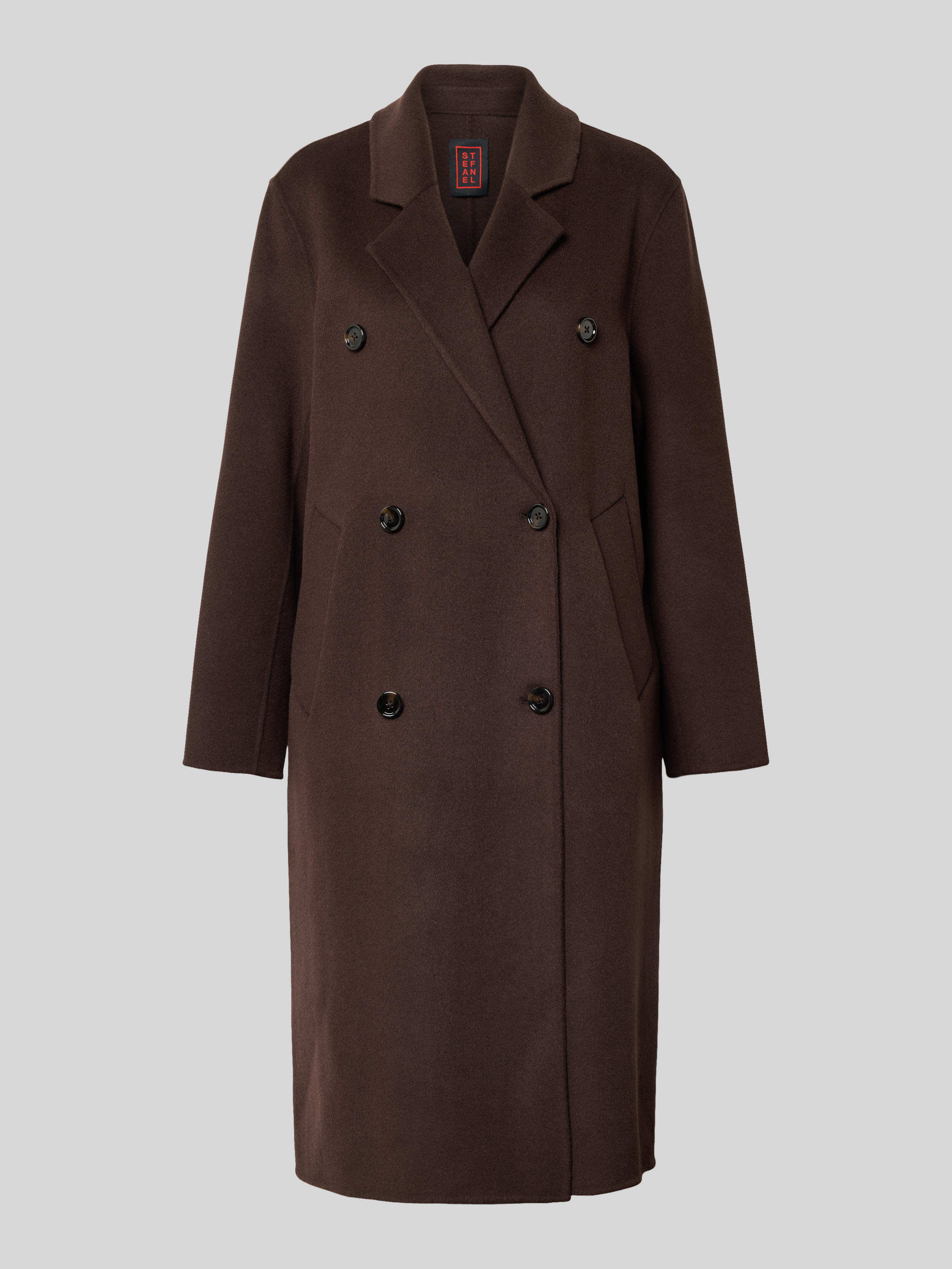 StefanelLange jas met reverskraag en steekzakken in donkerbruin