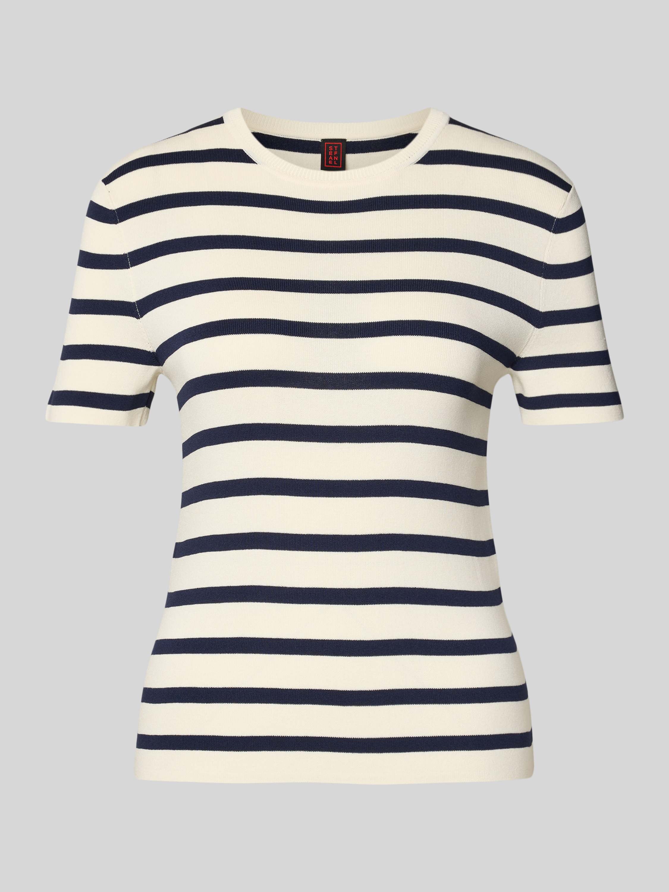 StefanelT-shirt van viscosemix met ronde hals in donkerblauw gemêleerd