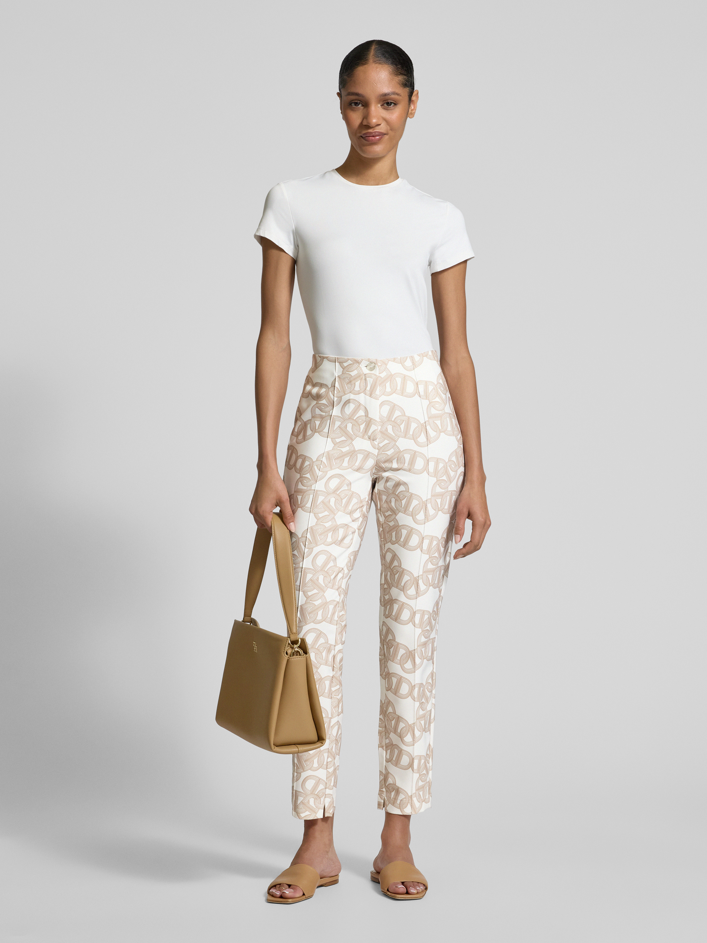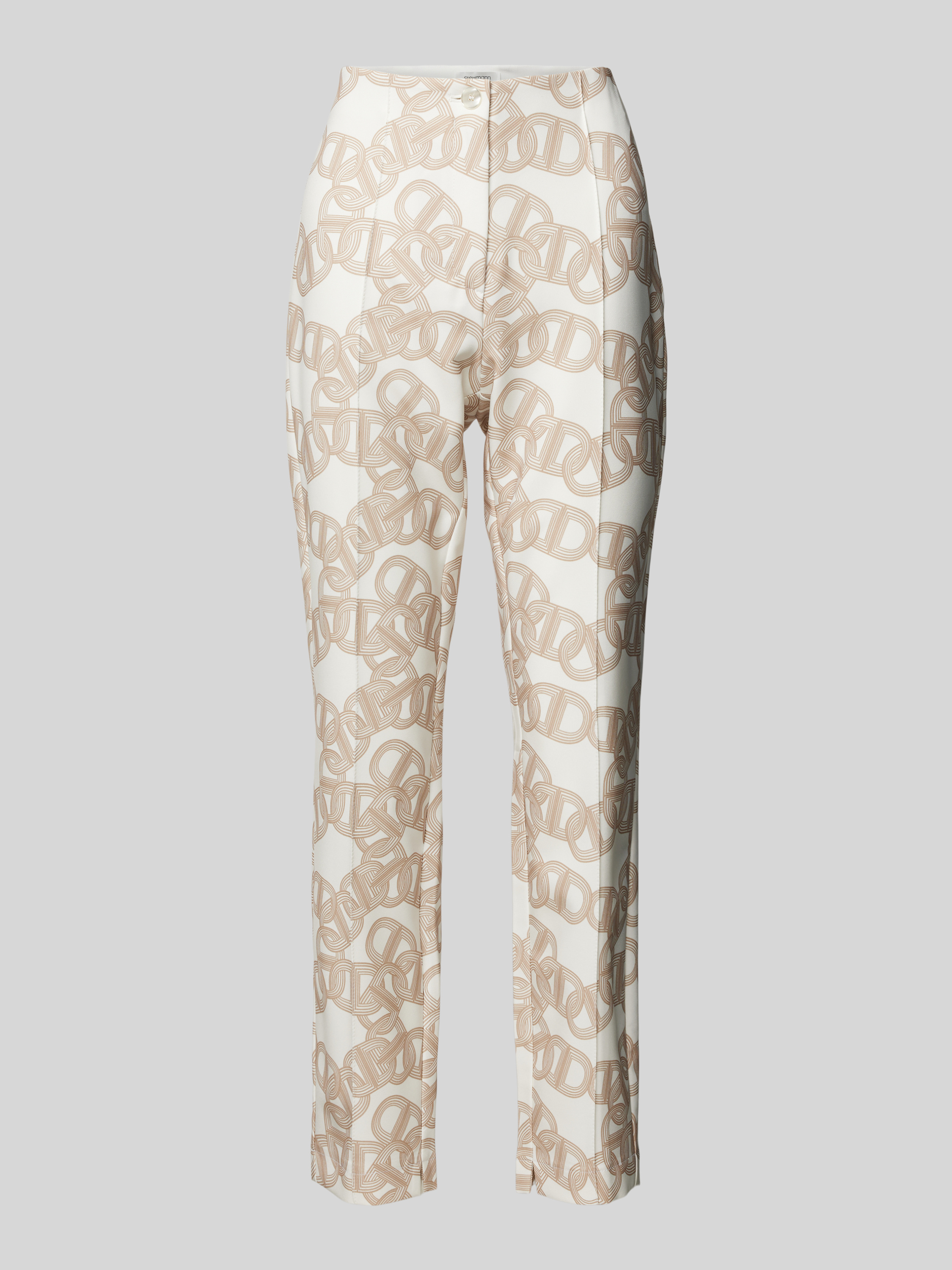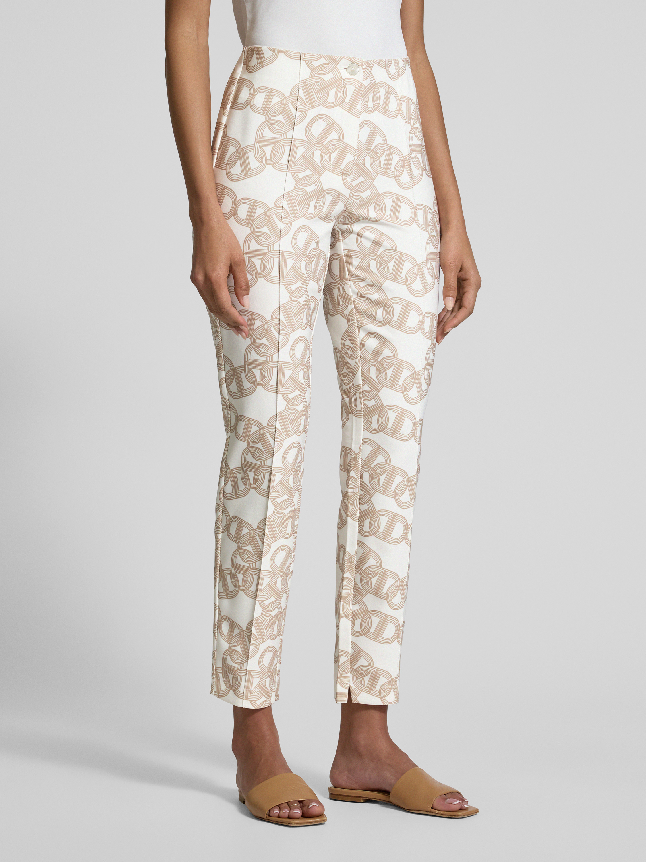 Regular fit stoffen broek met vaste persplooien, model 'Ellsa' in offwhite