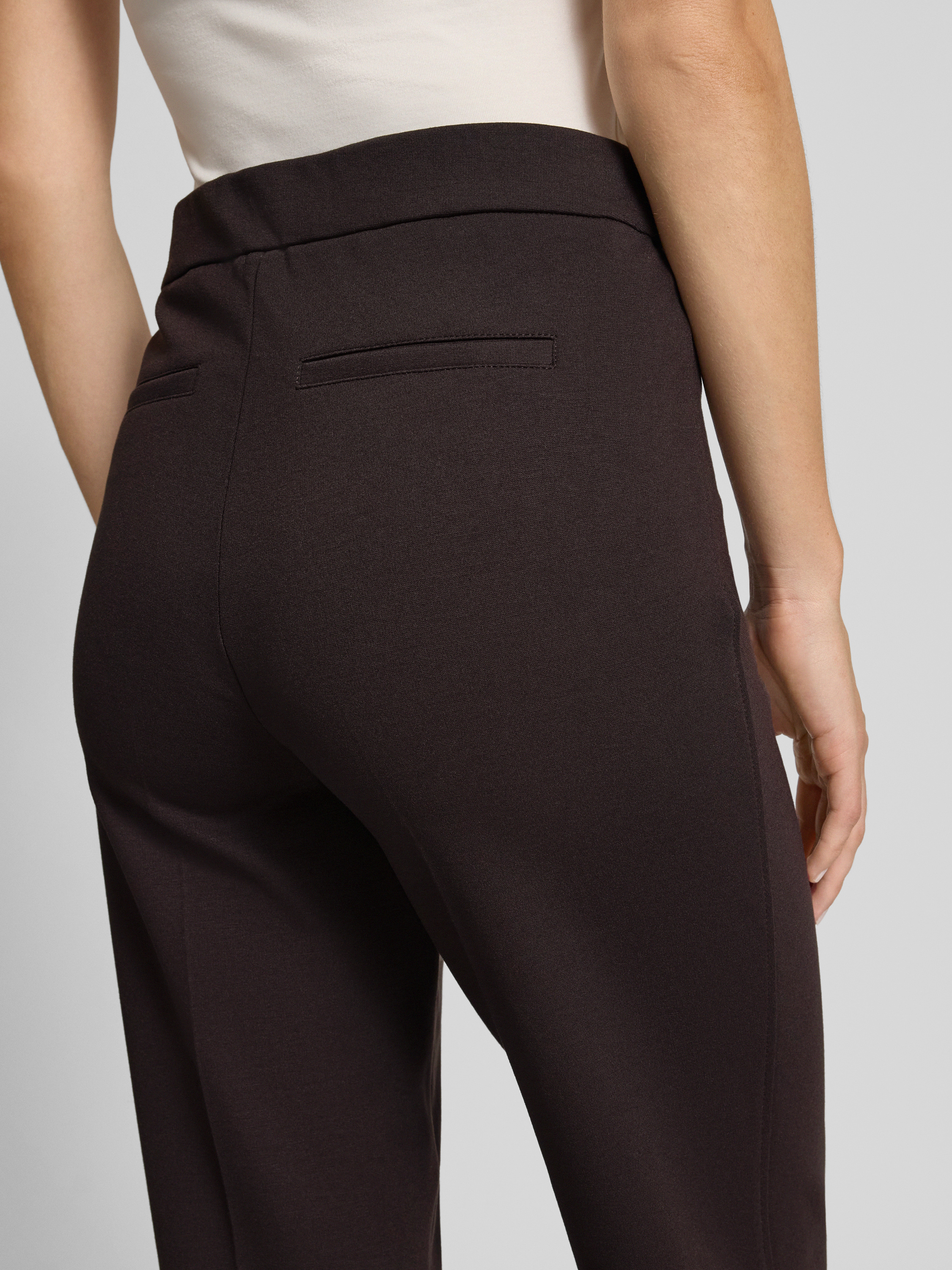 Stoffen broek met achterzakken, model 'Editta' in chocoladebruin