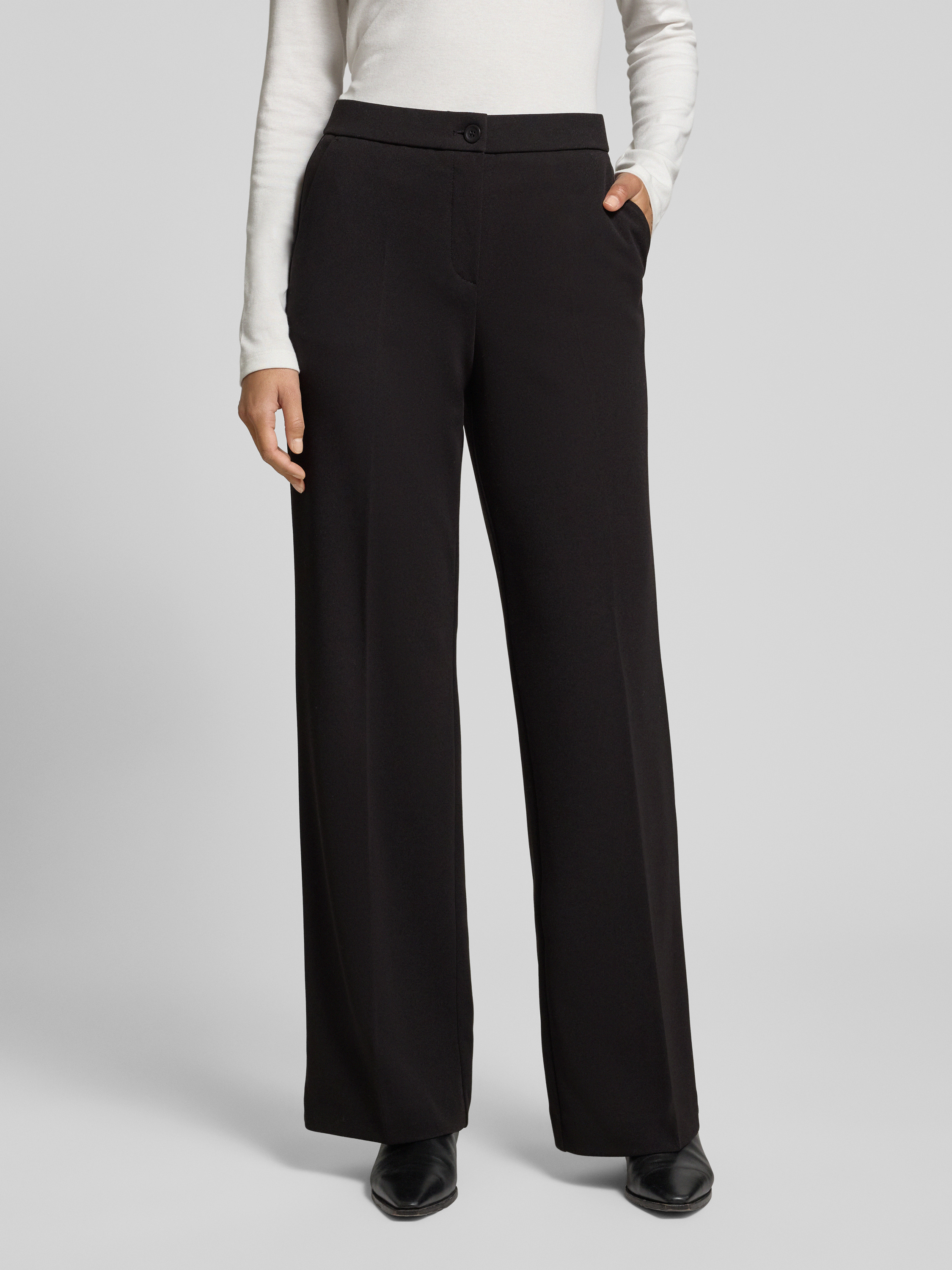 Wide leg bandplooibroek met steekzakken, model 'Hillda' in zwart