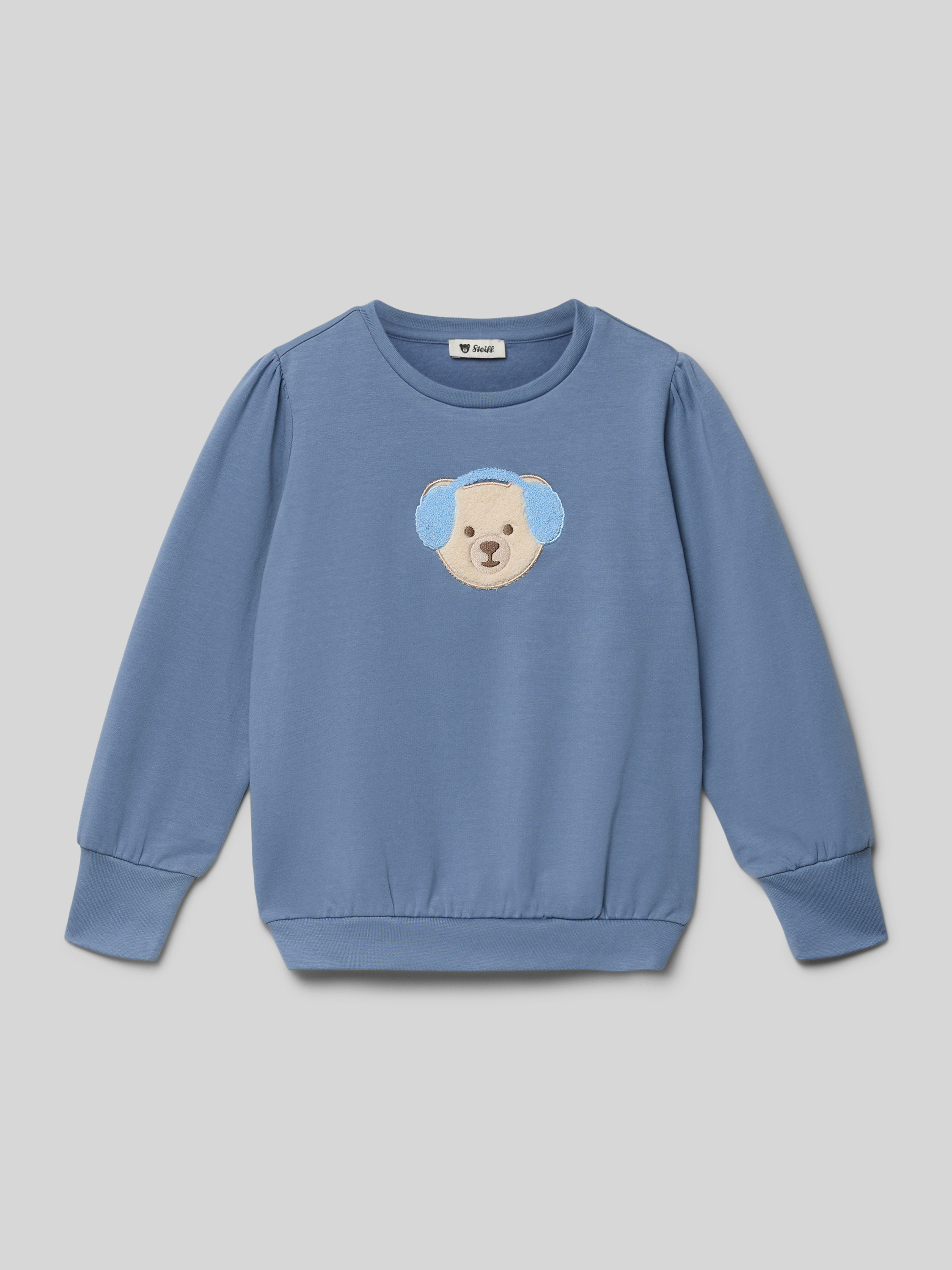 Regular fit sweatshirt met motiefstitching in rookblauw
