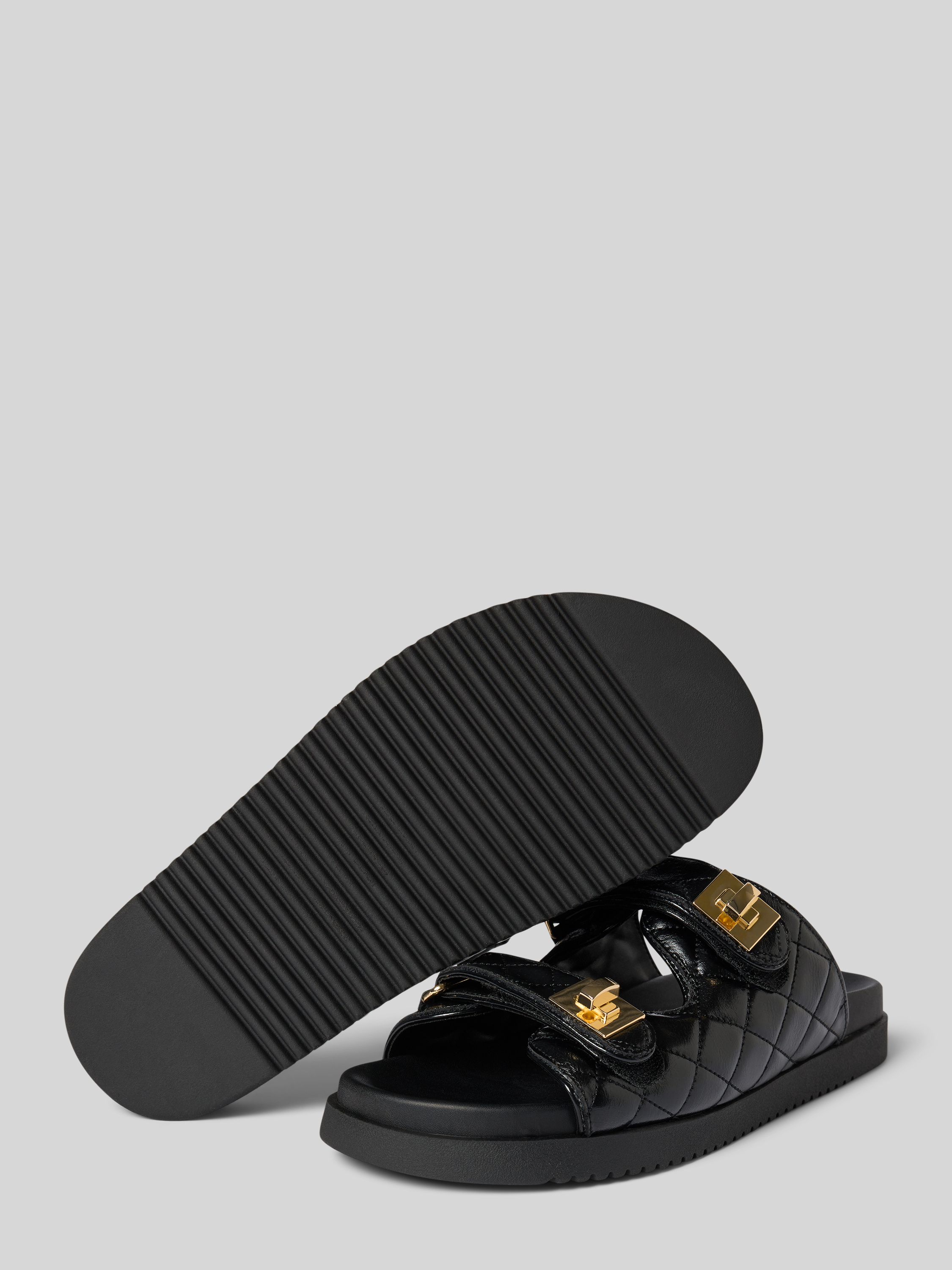 Slippers van leer met klittenband, model 'SCHMONA' in zwart
