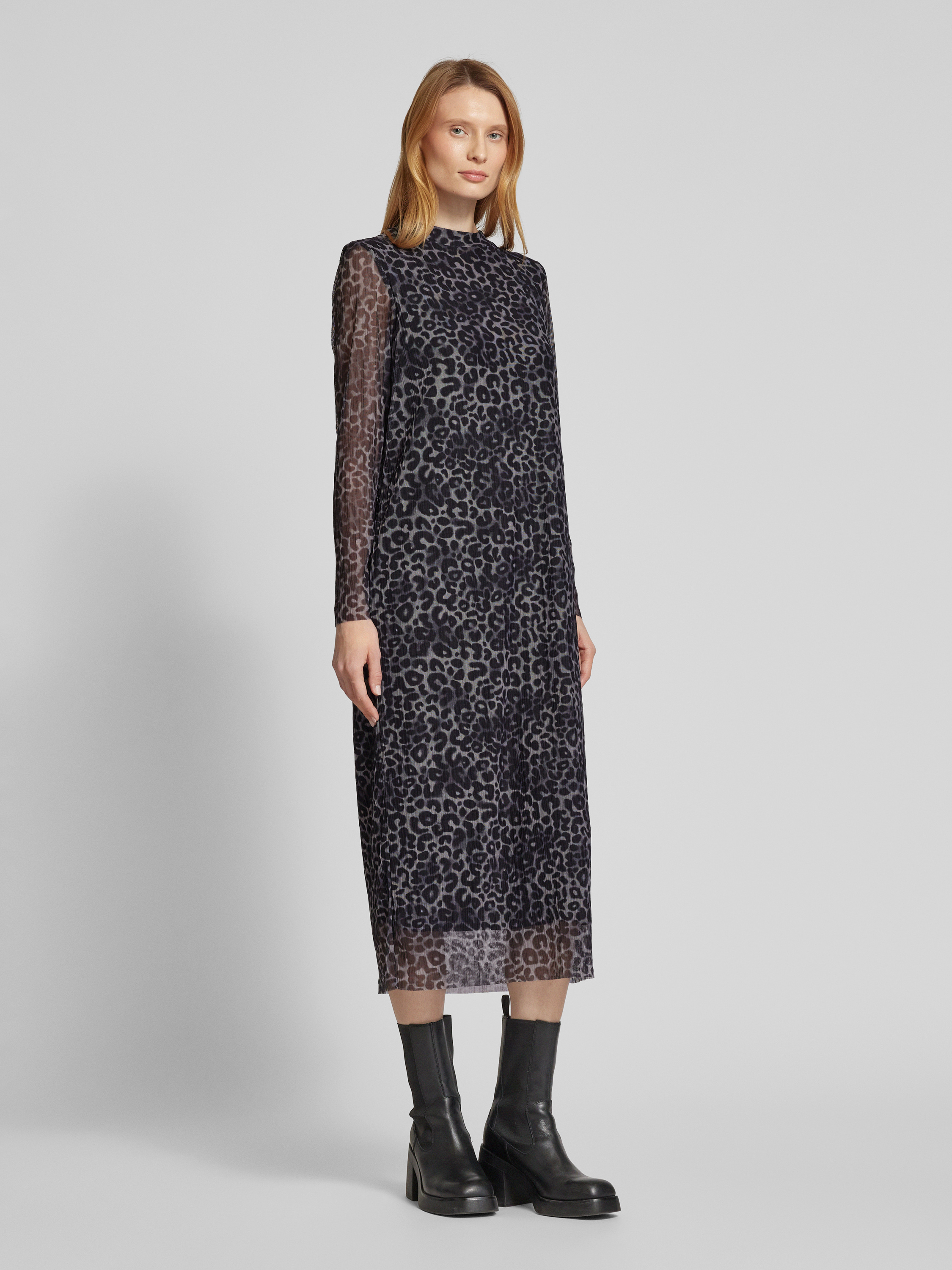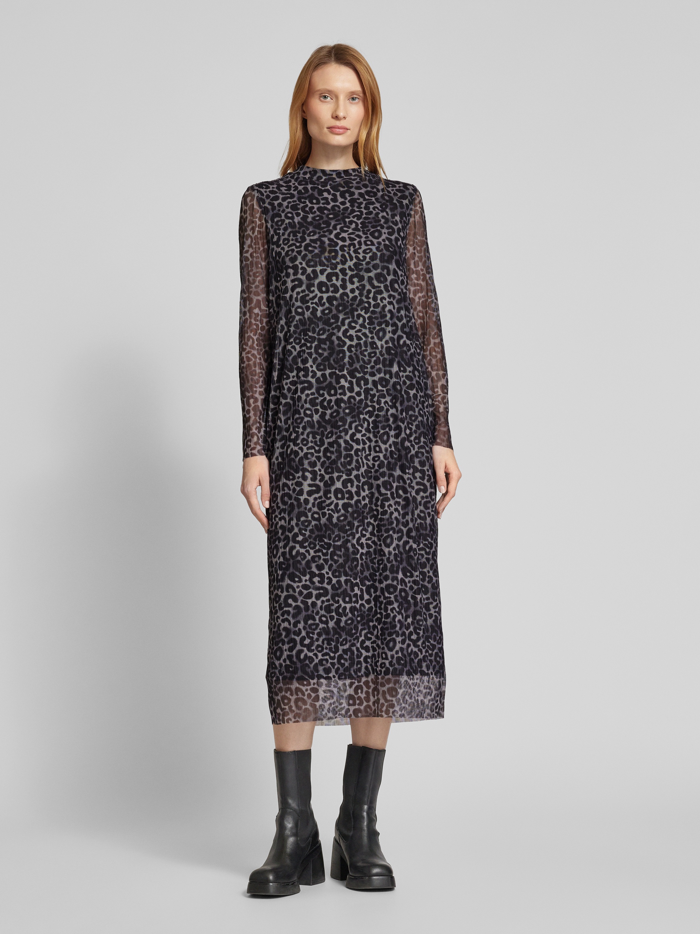 Midi-jurk in semi-transparant design in antraciet