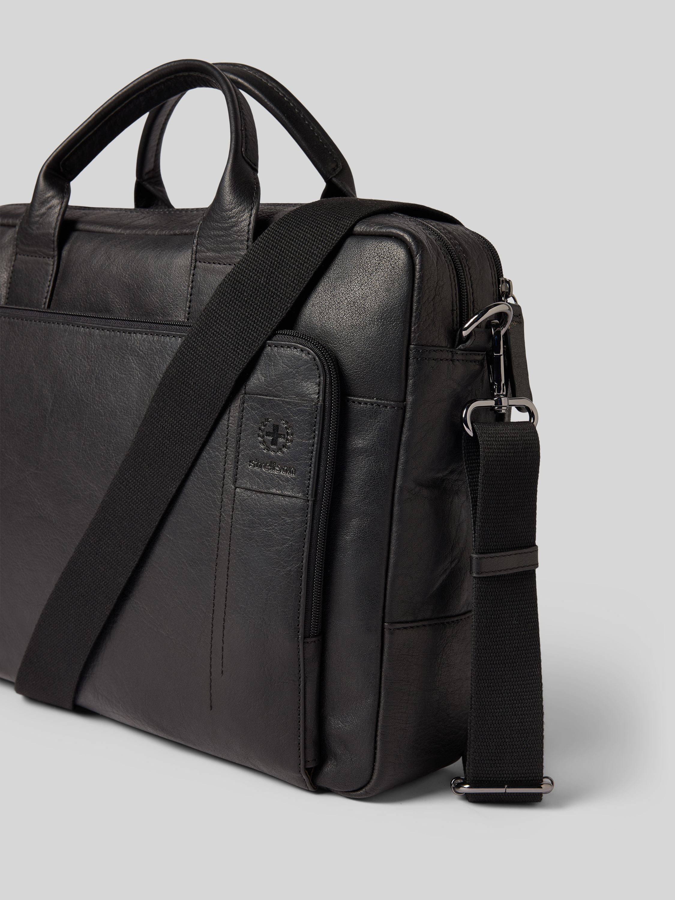 Laptoptas van echt leer, model 'HYDE PARK' in zwart