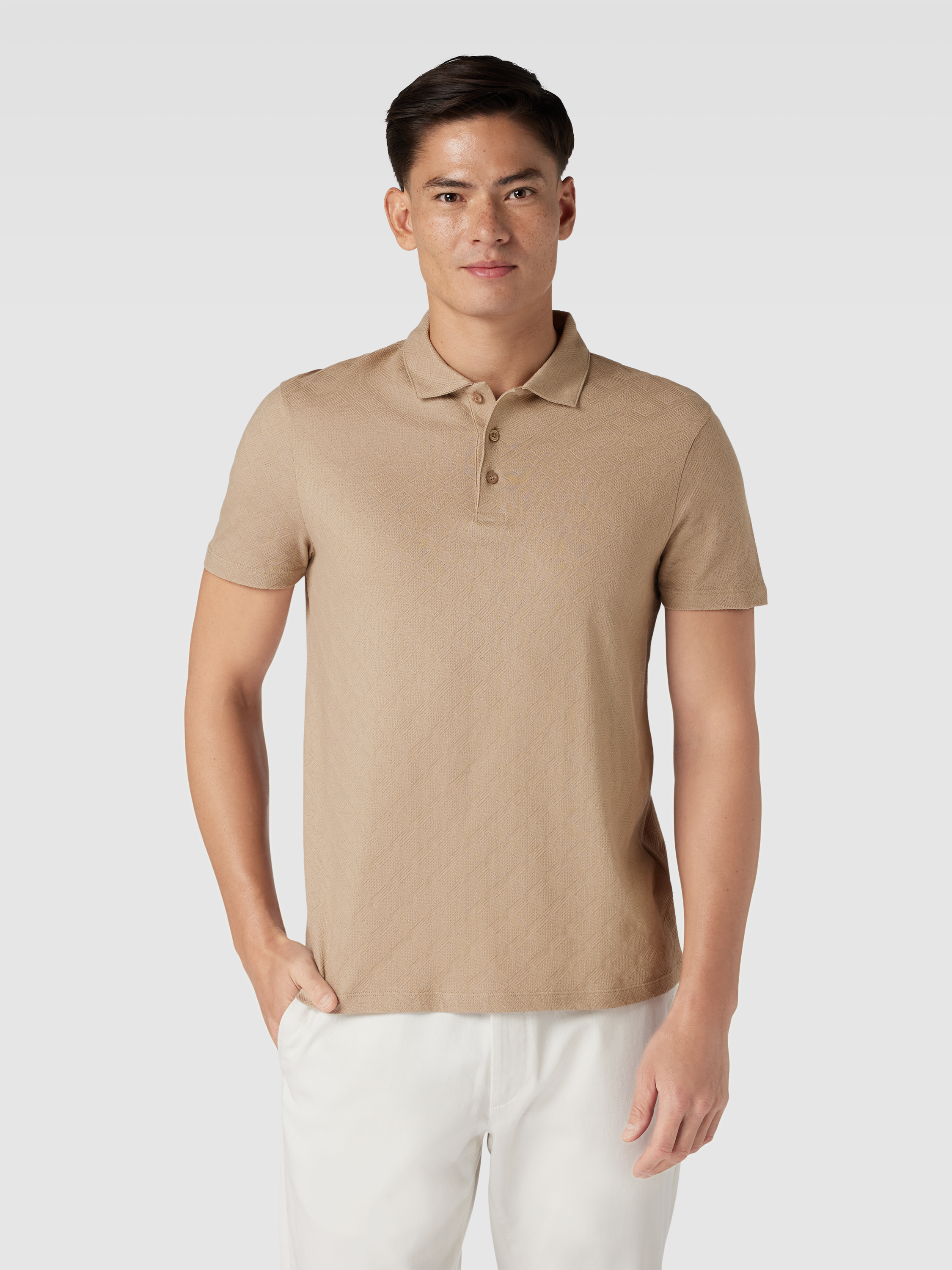 Poloshirt met structuurmotief, model 'Fadu' in beige