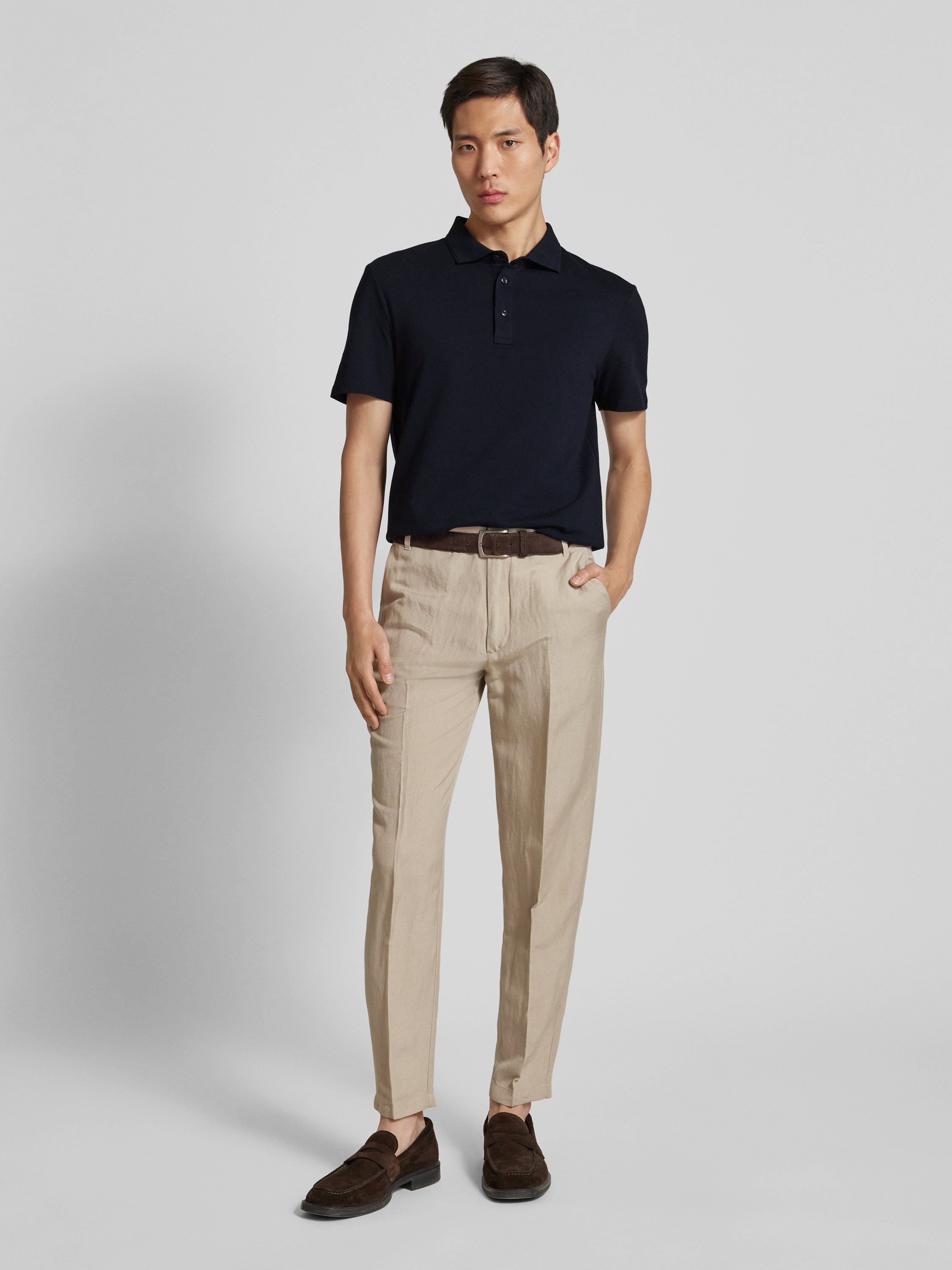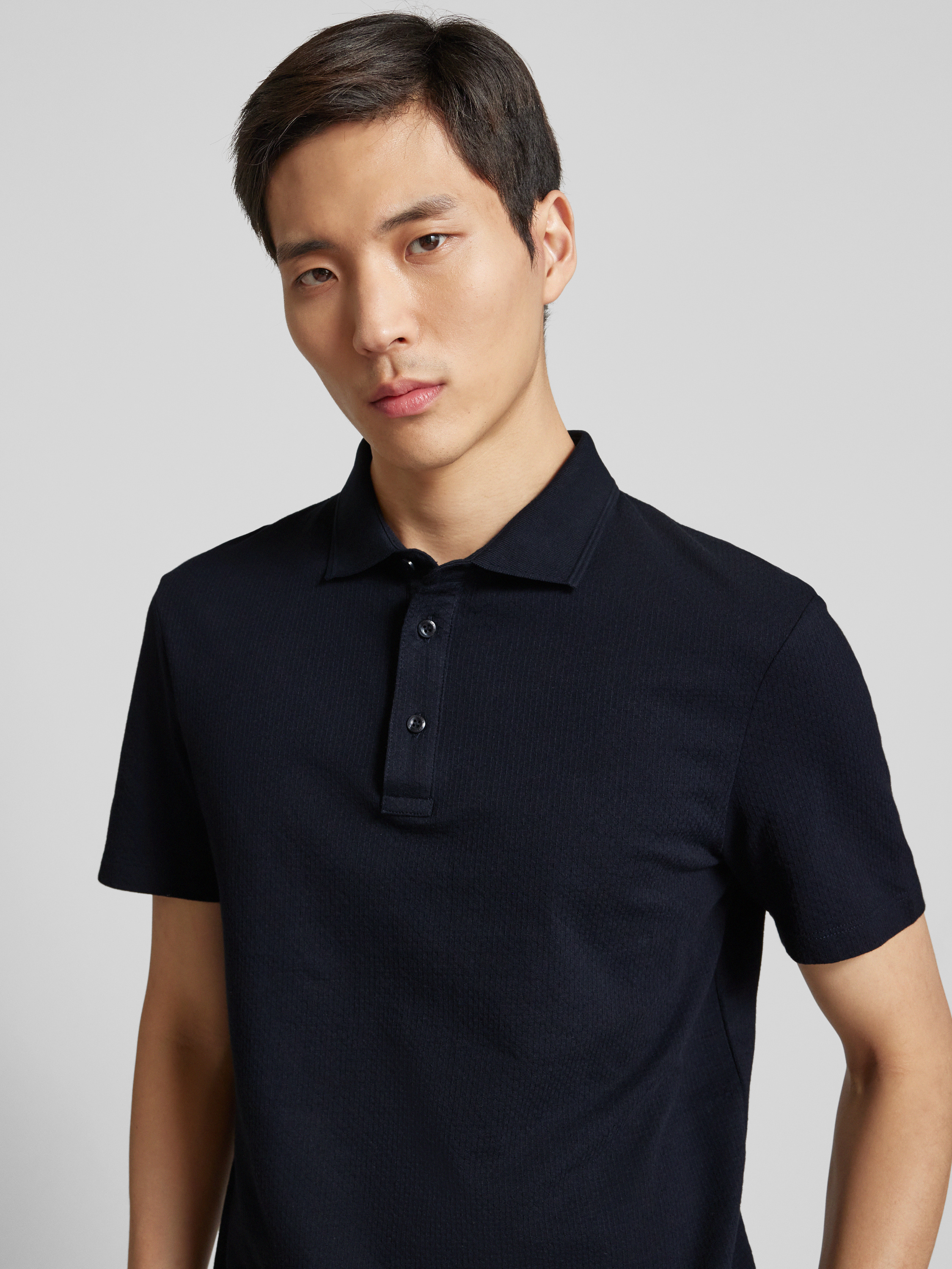 StrellsonPoloshirt met structuurmotief, model 'Fisher' in donkerblauw