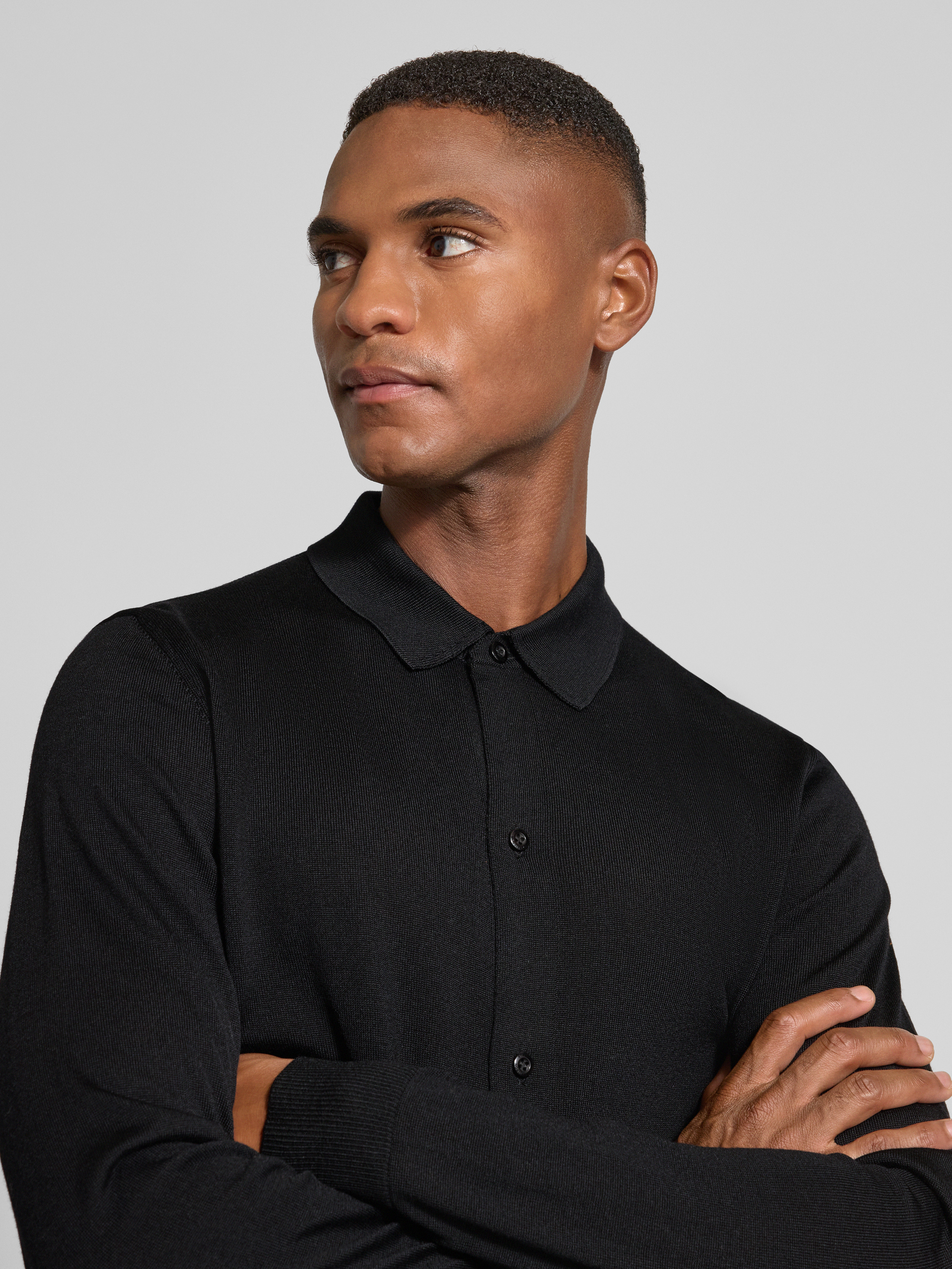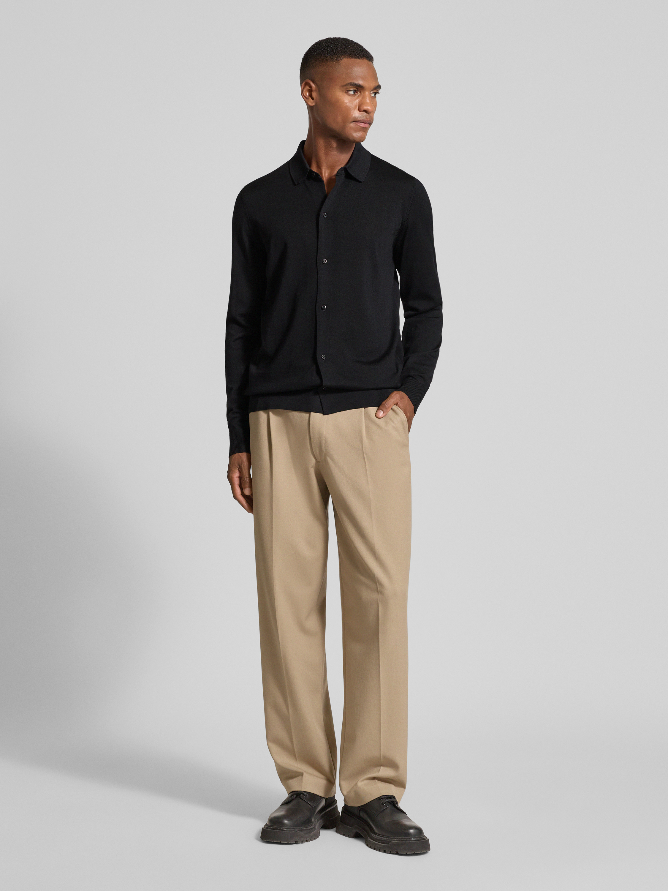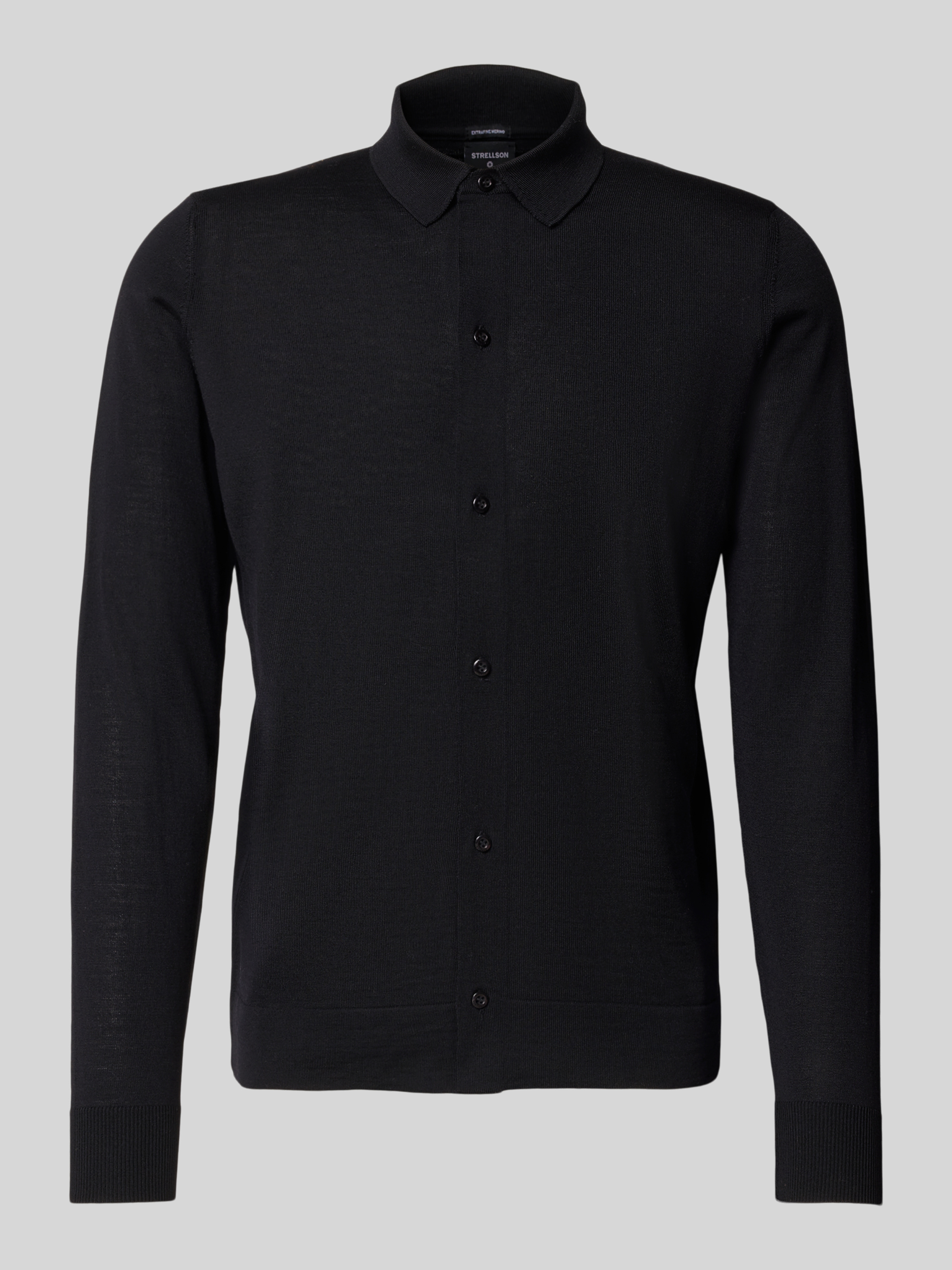 StrellsonRegular fit gebreid jack van zuivere scheerwol, model 'MAREK' in zwart