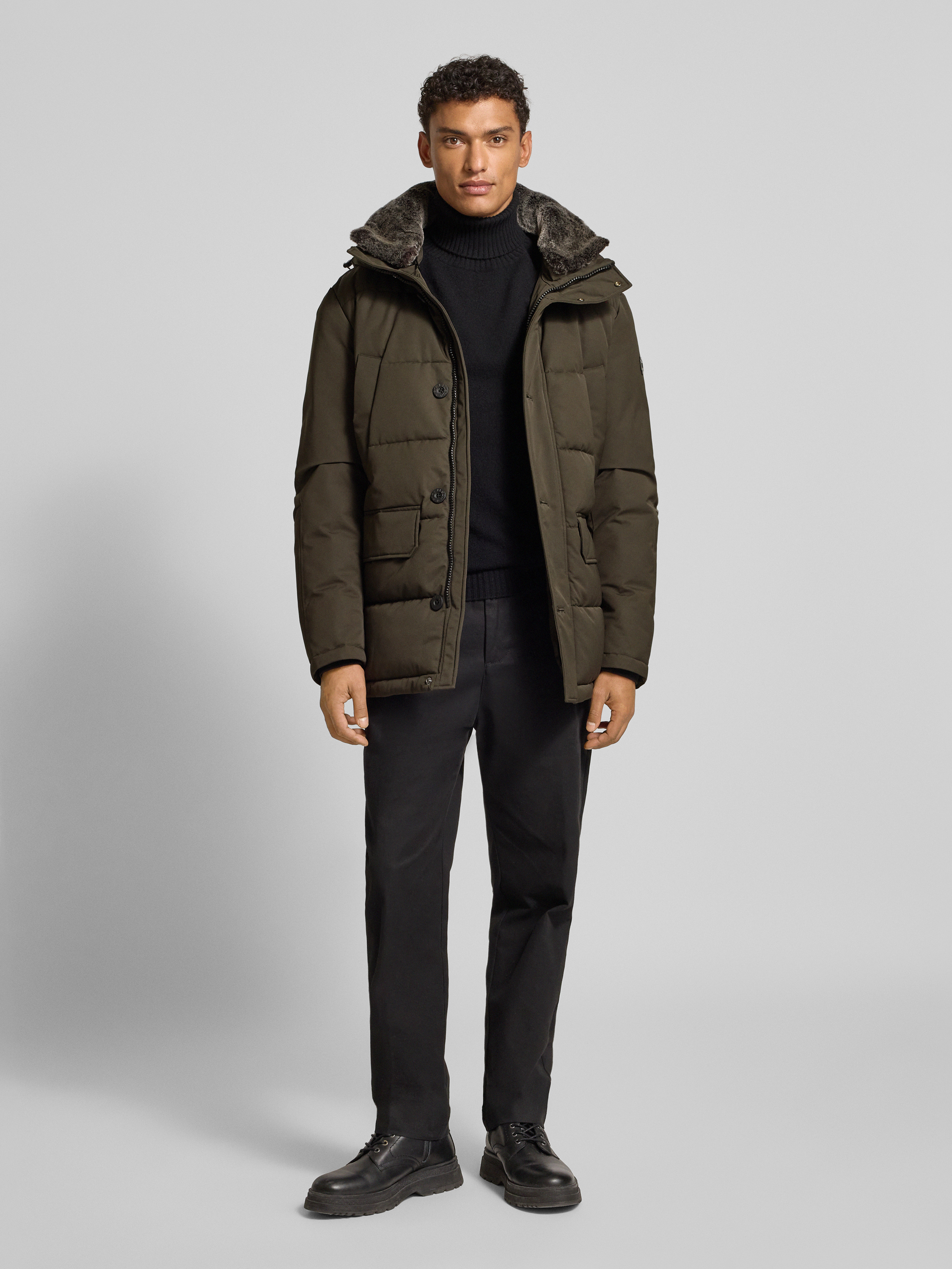 Regular fit gewatteerd jack met capuchon, model 'PIAZZA' in olijfgroen