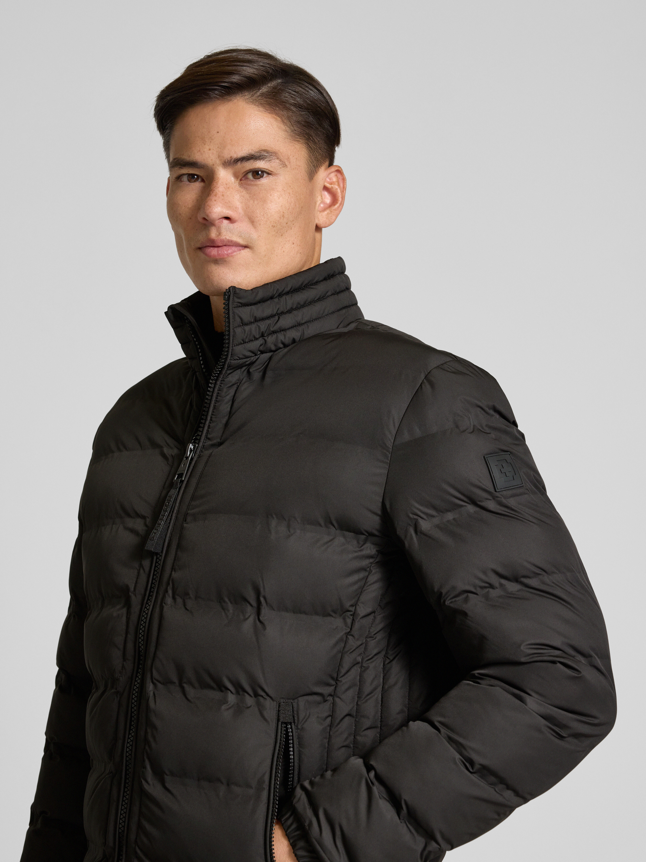 Regular fit gewatteerd jack met opstaande kraag, model 'MODENA FUSED' in zwart