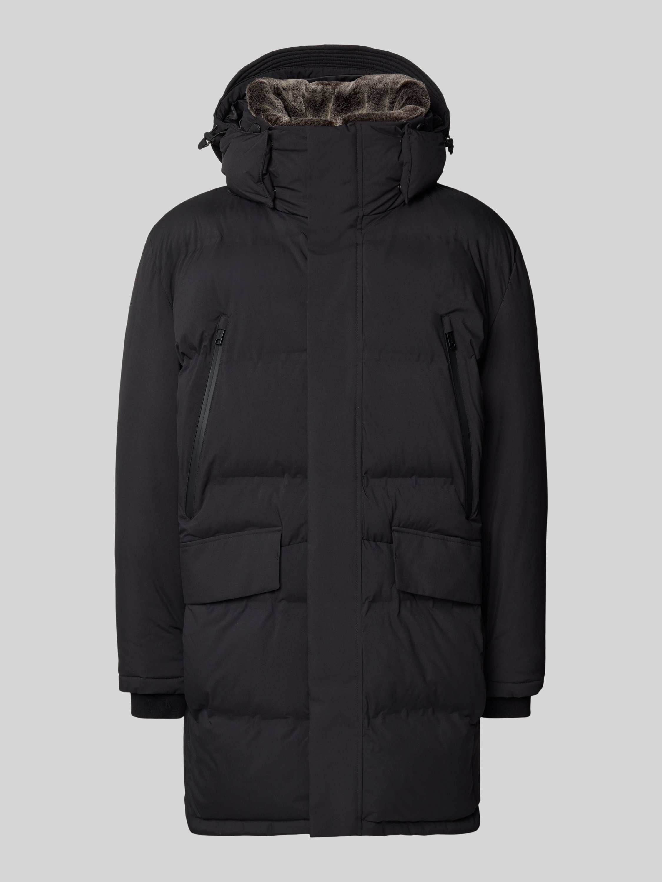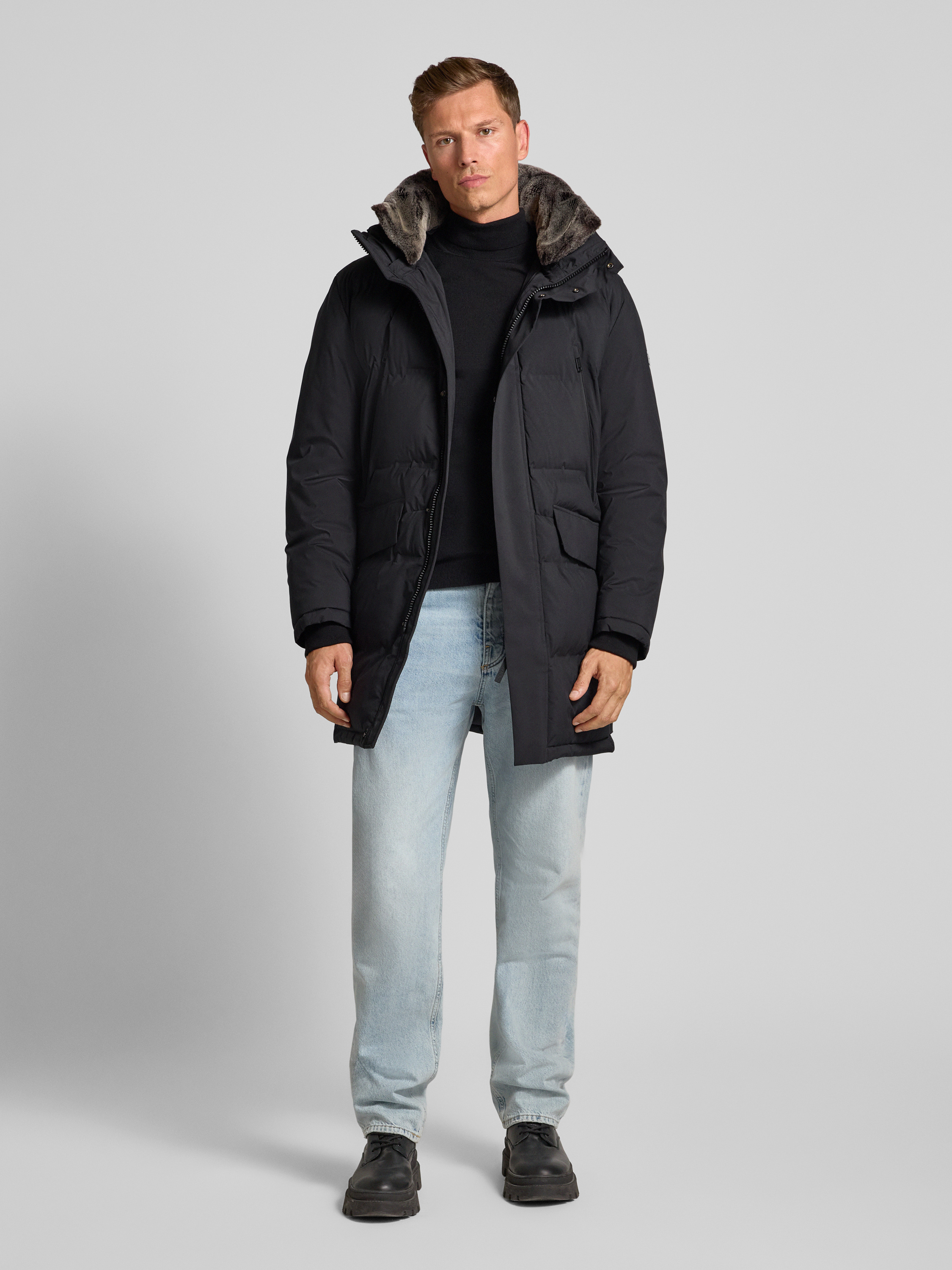 Kraagmodel: Opstaande kraag met afneembare capuchon en afneembaar imitatiebont