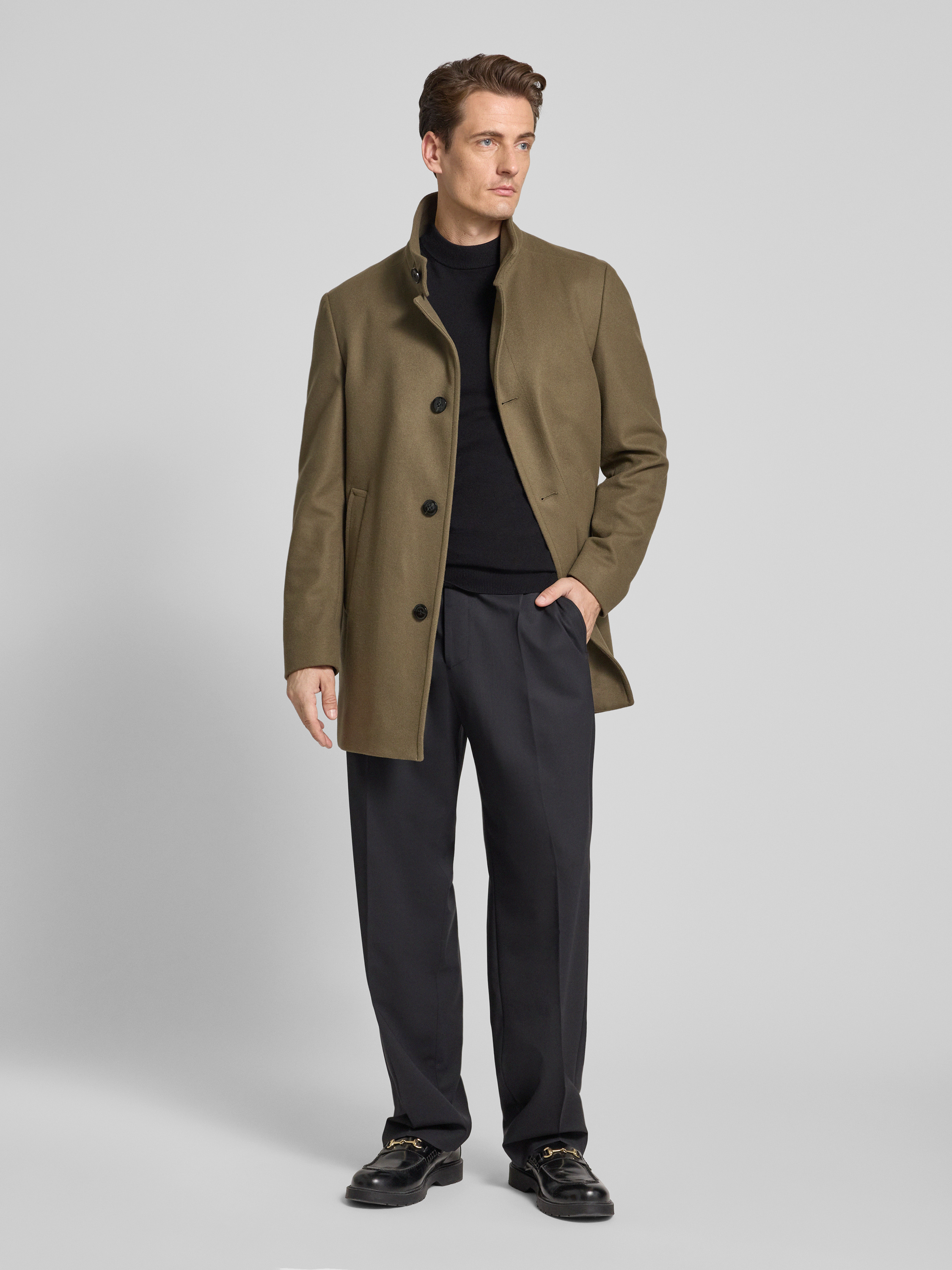StrellsonRegular fit lange jas met opstaande kraag, model 'Finchley' in olijfgroen