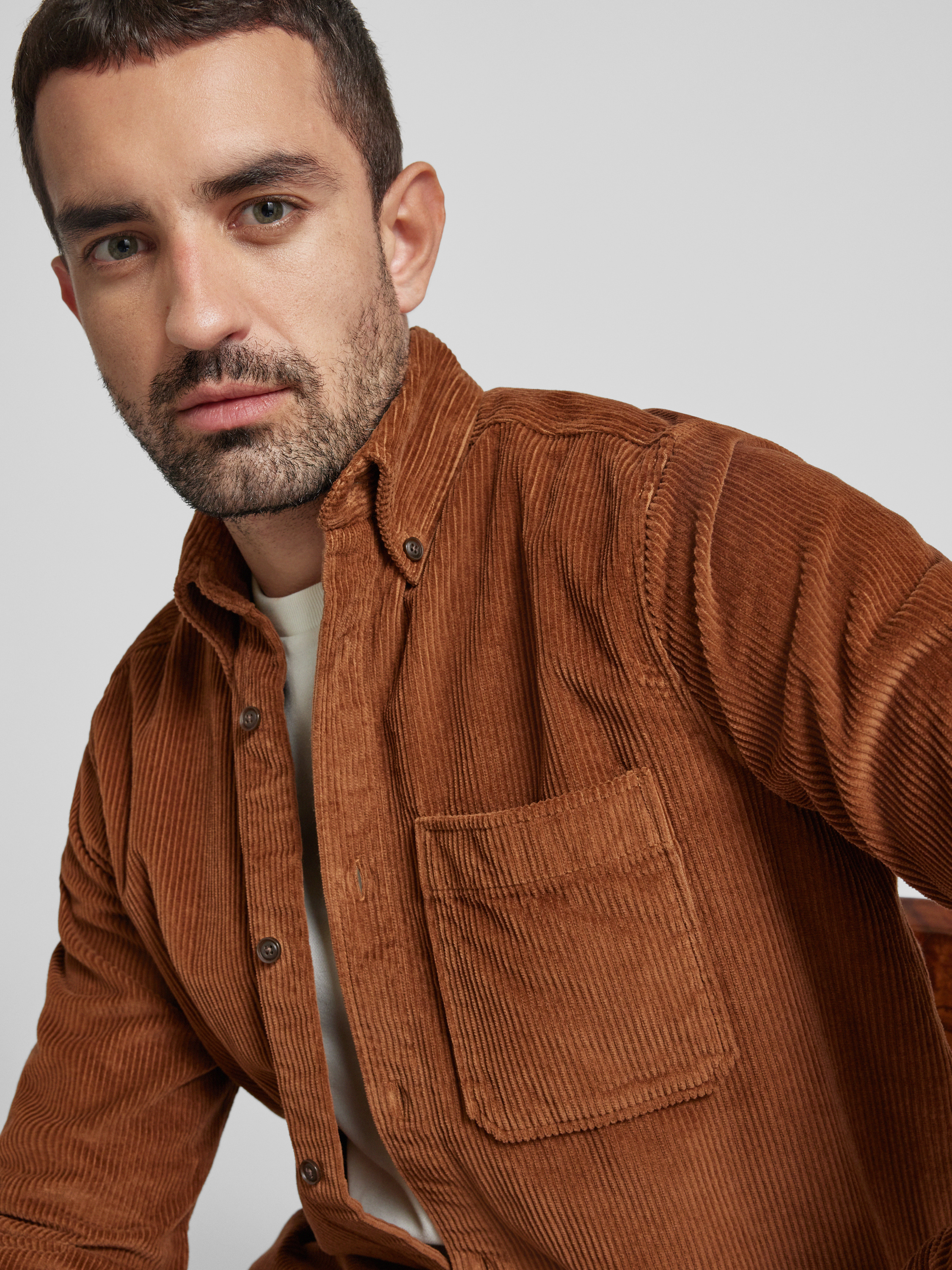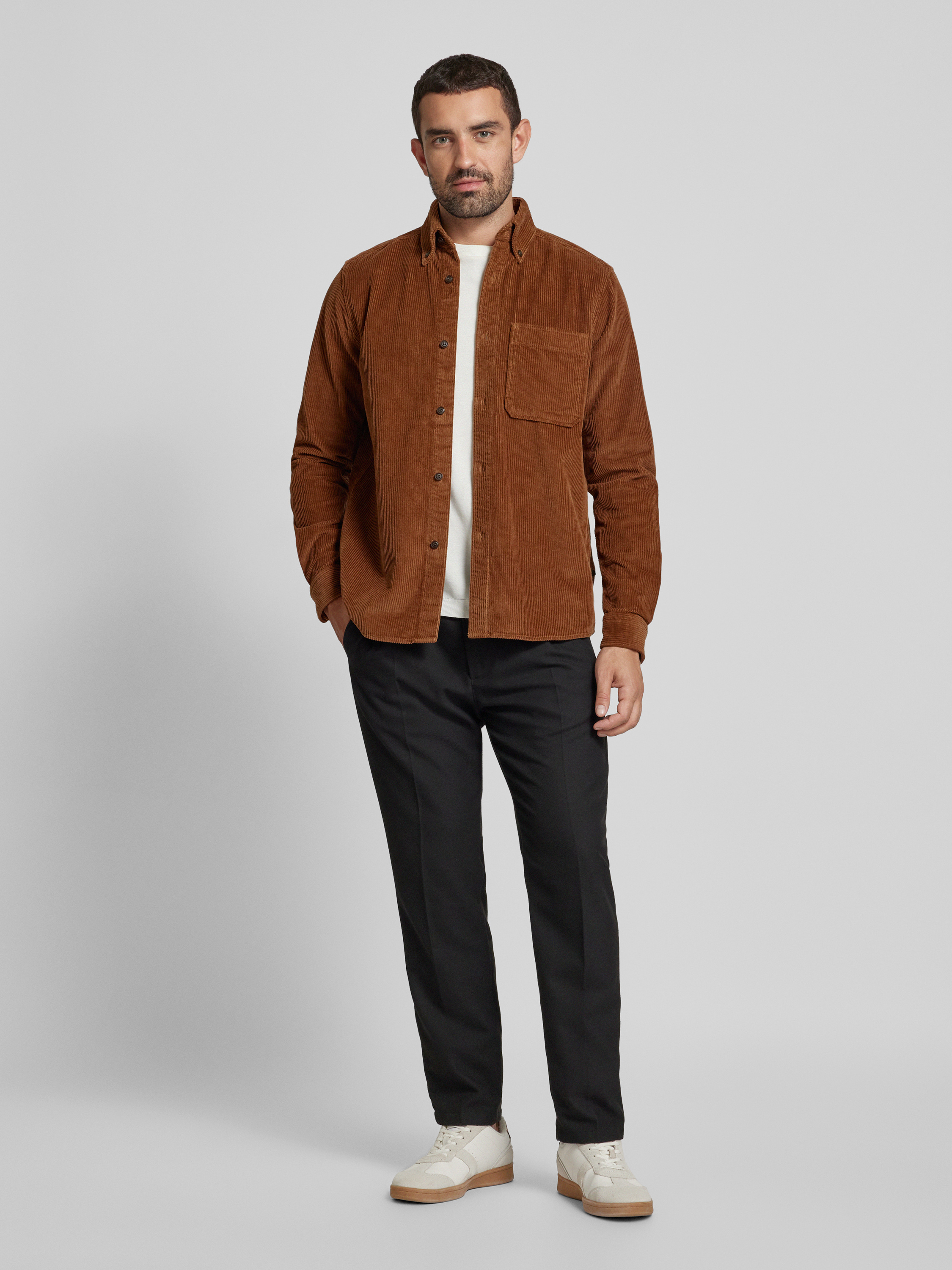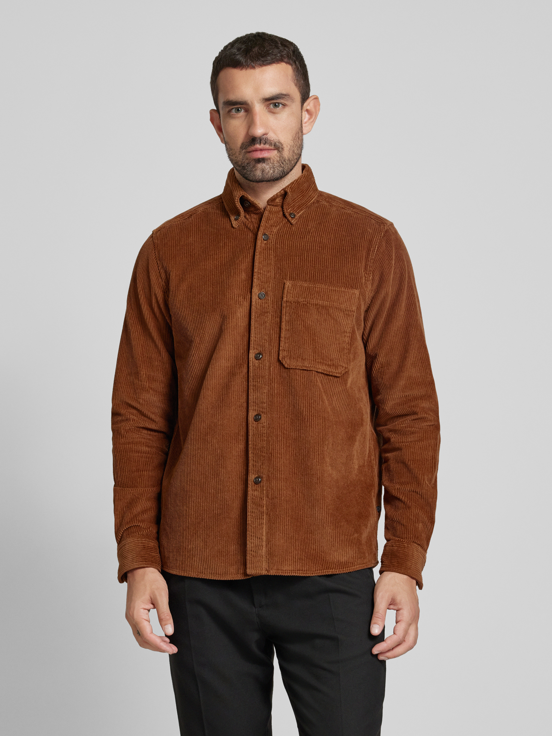 StrellsonRegular fit overhemdjack met button-downkraag, model 'Nero' in hazelnoot