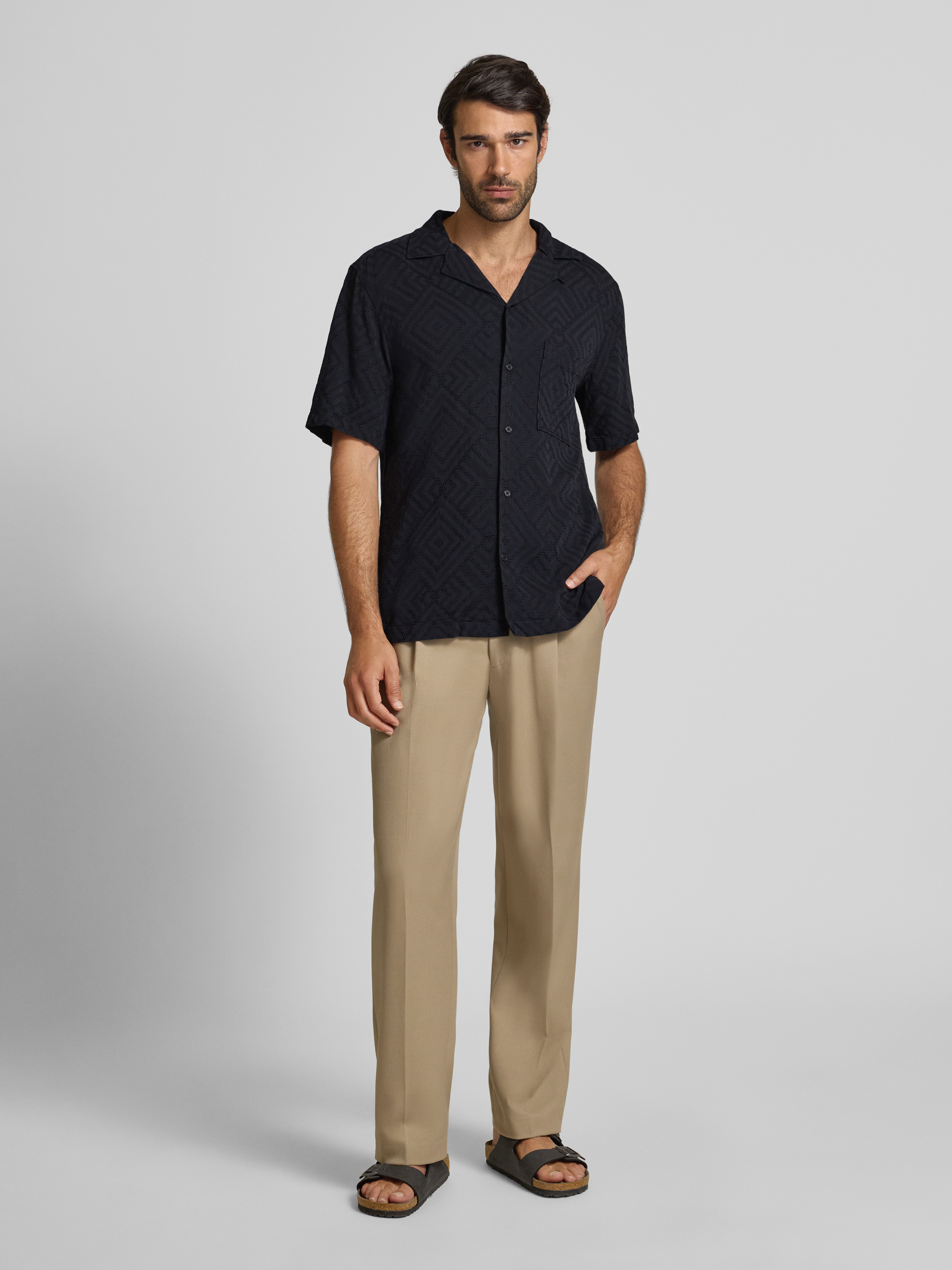 StrellsonRegular fit vrijetijdsoverhemd van een mix van viscose en katoen, model 'CISCO' in zwart