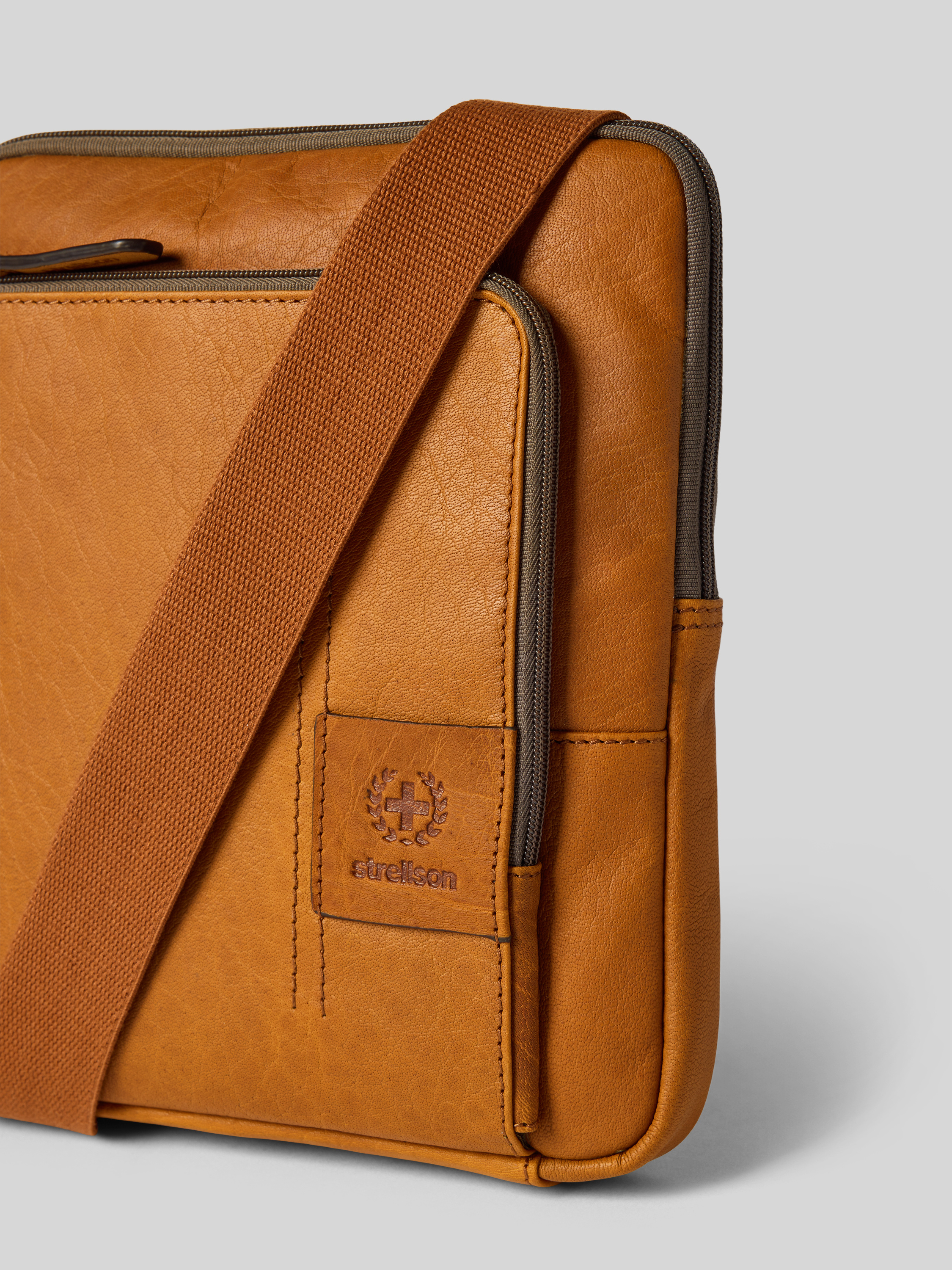 Schoudertas van echt leer, model 'BRIAN' in cognac